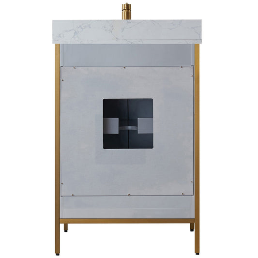 Vinnova Granada 24" Single Vanity In Paris Grey With White Composite Grain Stone Countertop And Mirror
