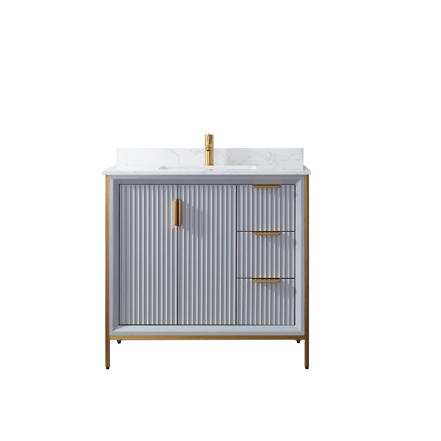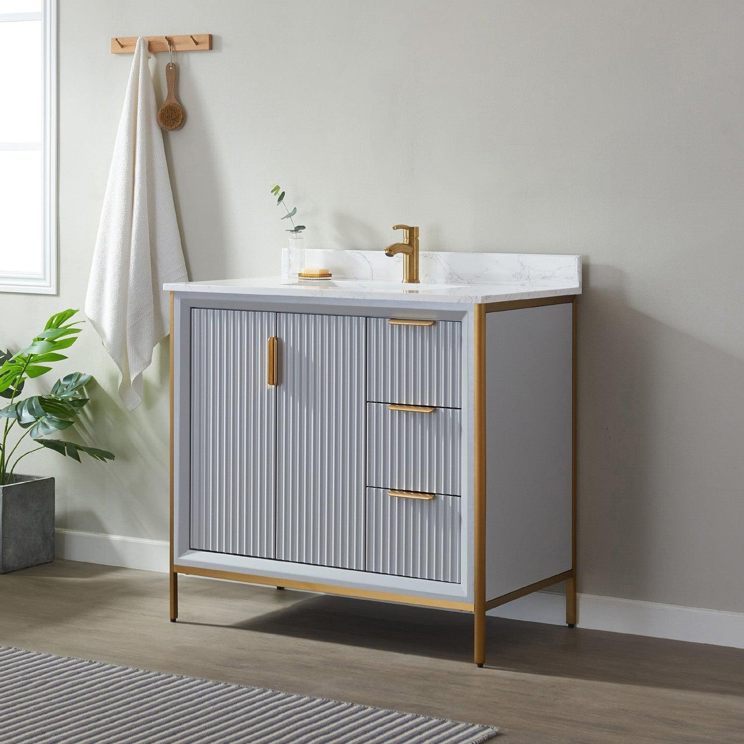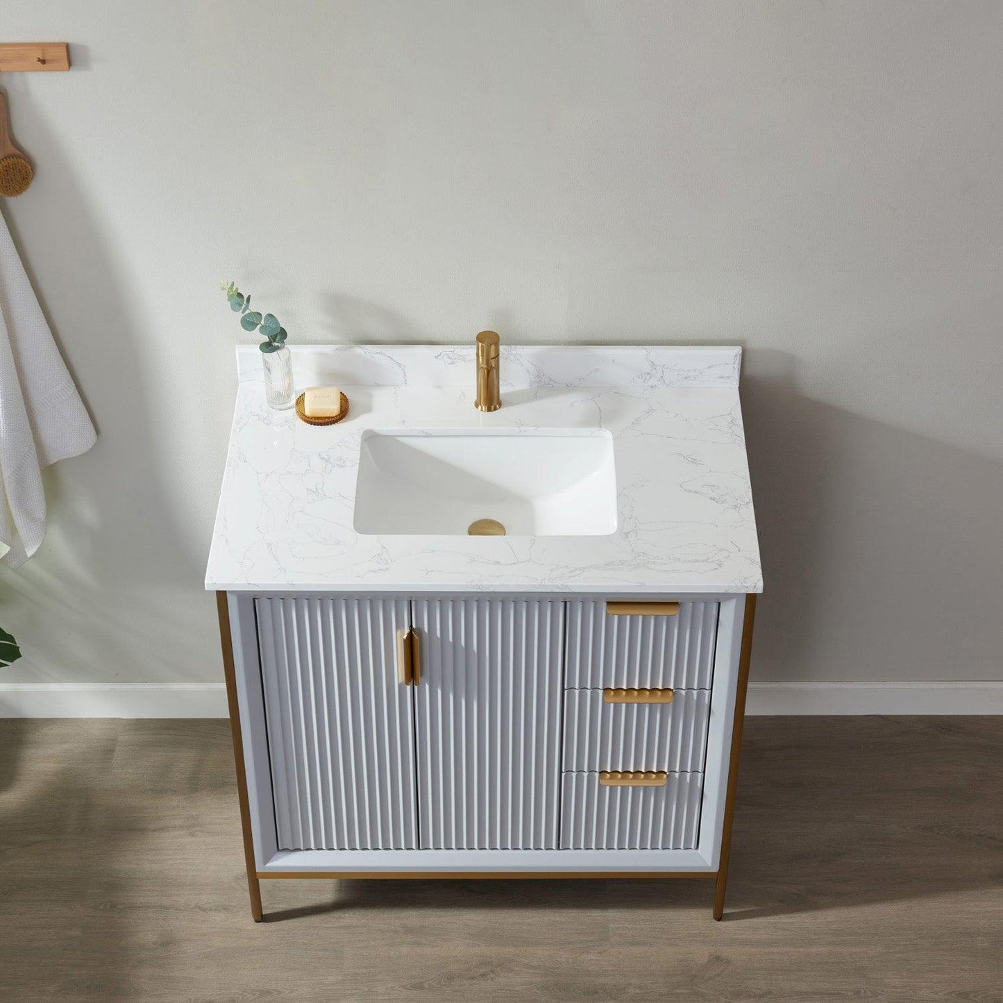 Vinnova Granada 36" Single Vanity In Paris Grey With White Composite Grain Stone Countertop