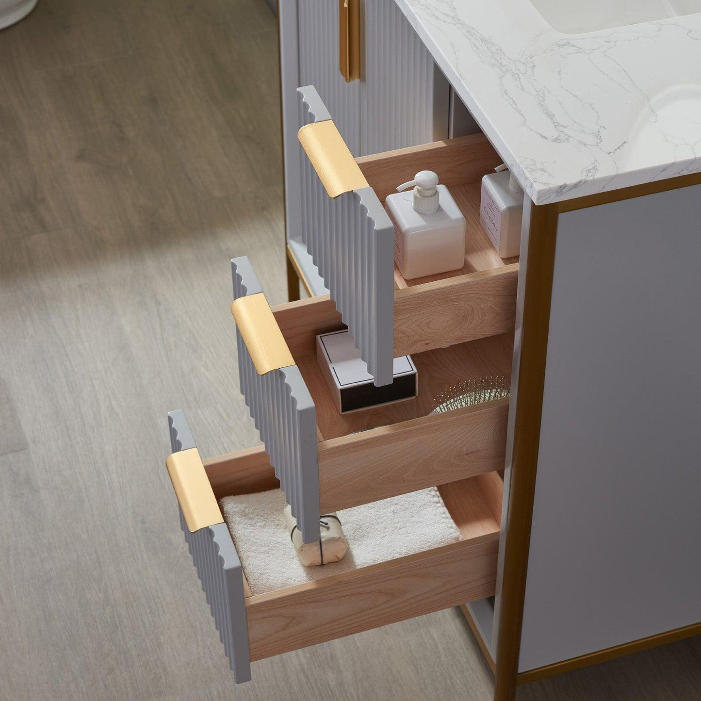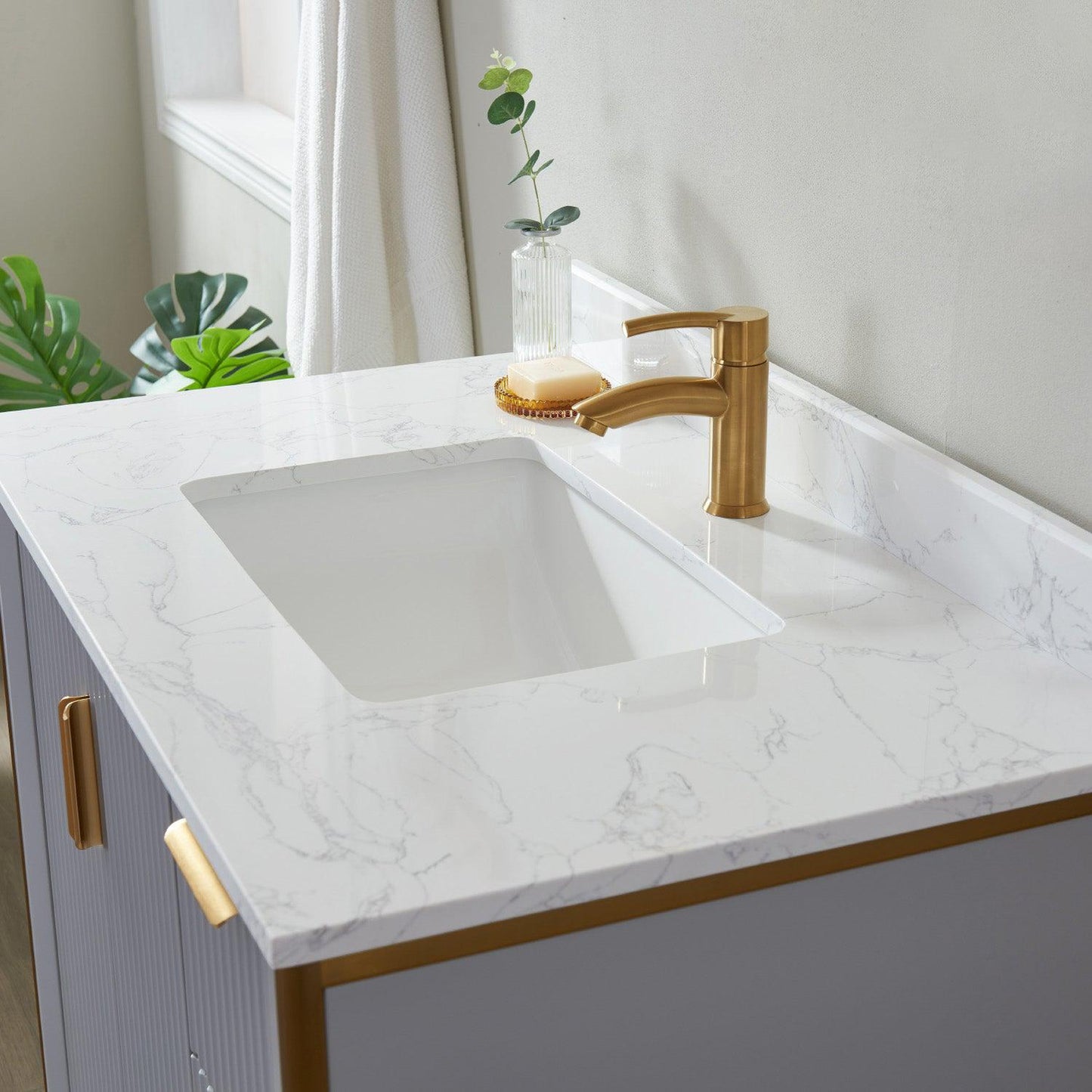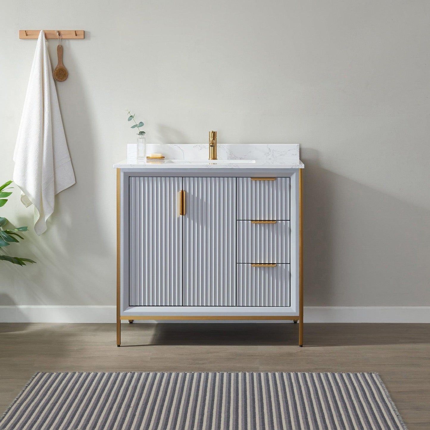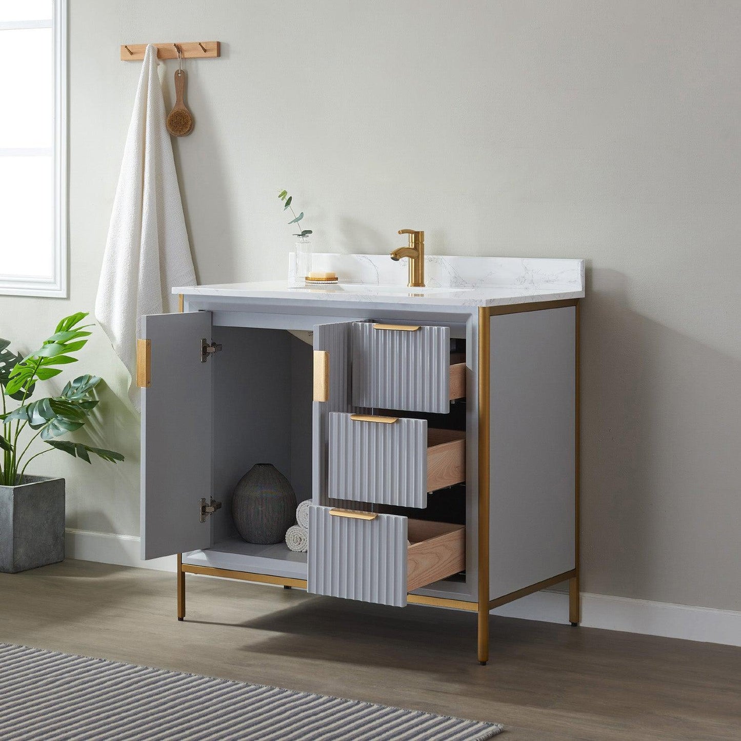 Vinnova Granada 36" Single Vanity In Paris Grey With White Composite Grain Stone Countertop