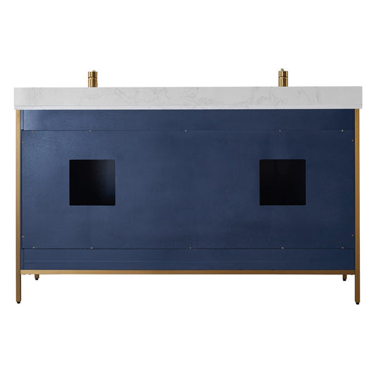 Vinnova Granada 60" Double Vanity In Royal Blue With White Composite Grain Stone Countertop And Mirror