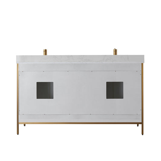 Vinnova Granada 60" Double Vanity In White With White Composite Grain Stone Countertop