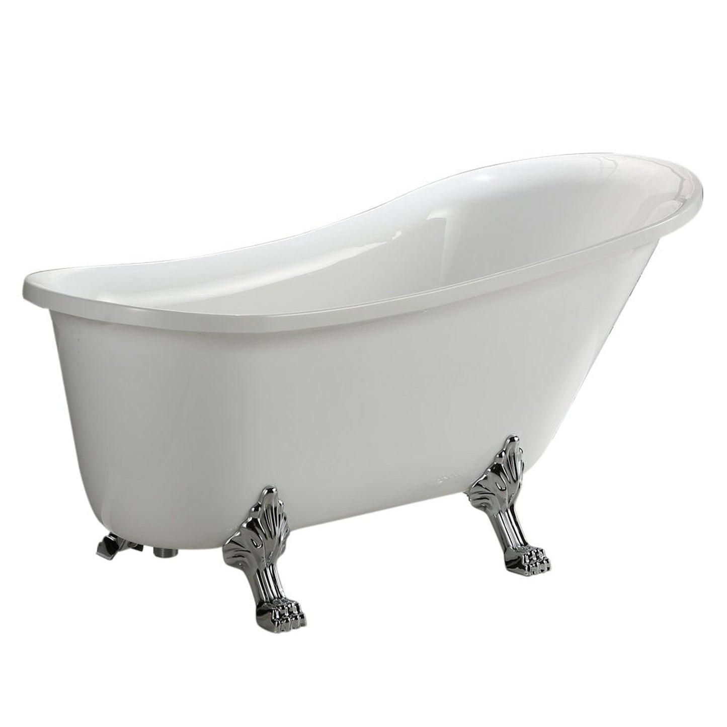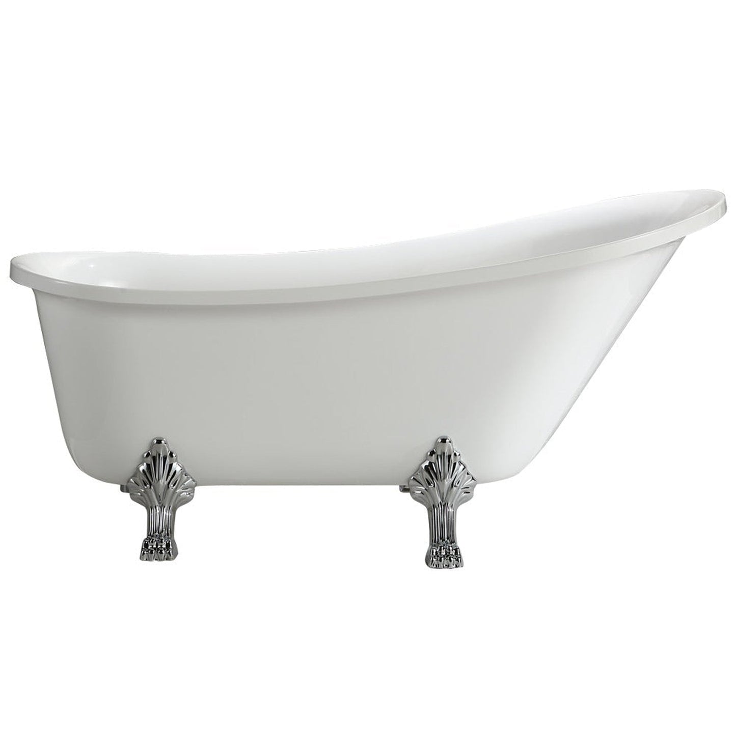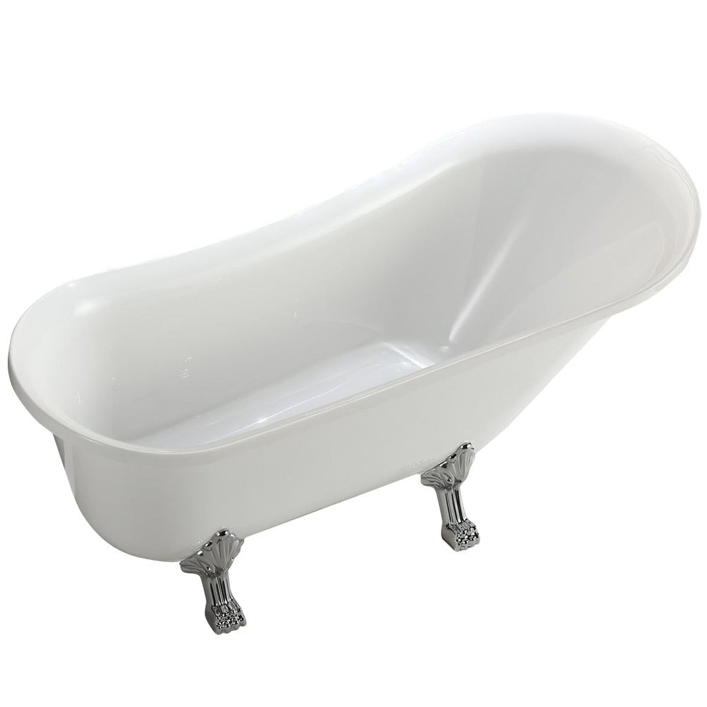 Vinnova Jacqueline 69" x 30" White Oval Freestanding Single Slipper Soaking Clawfoot Acrylic Bathtub