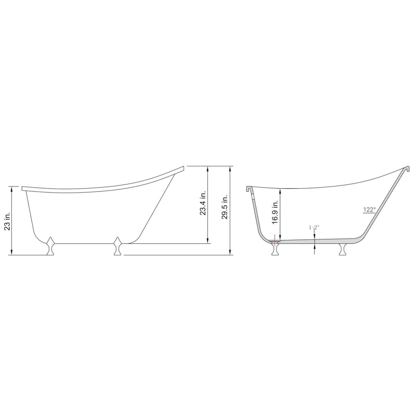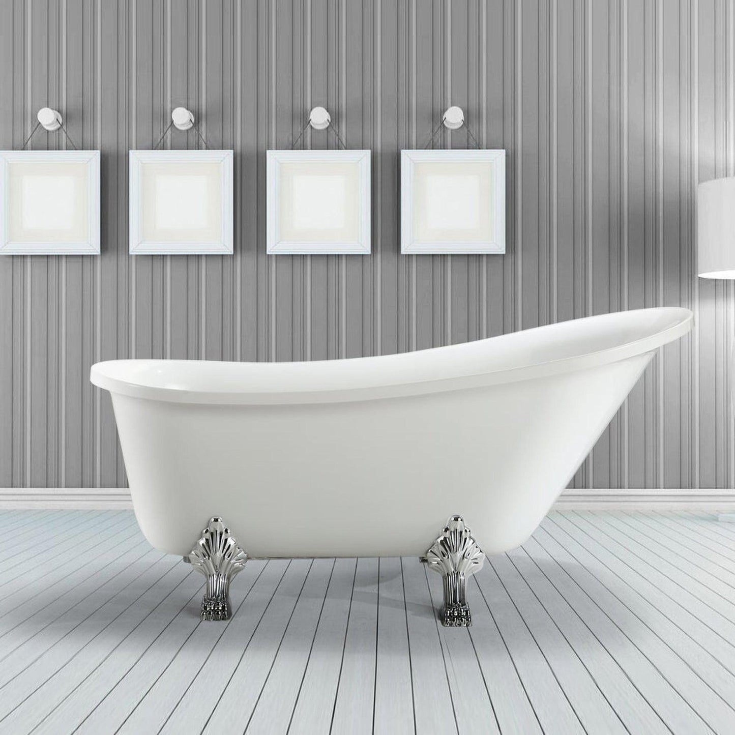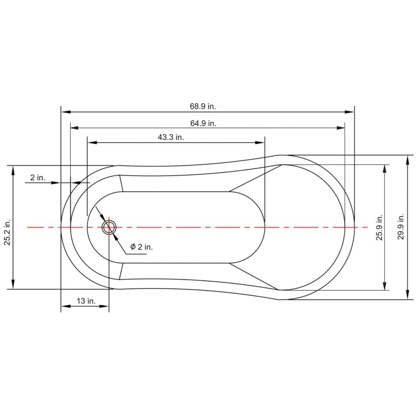 Vinnova Jacqueline 69" x 30" White Oval Freestanding Single Slipper Soaking Clawfoot Acrylic Bathtub