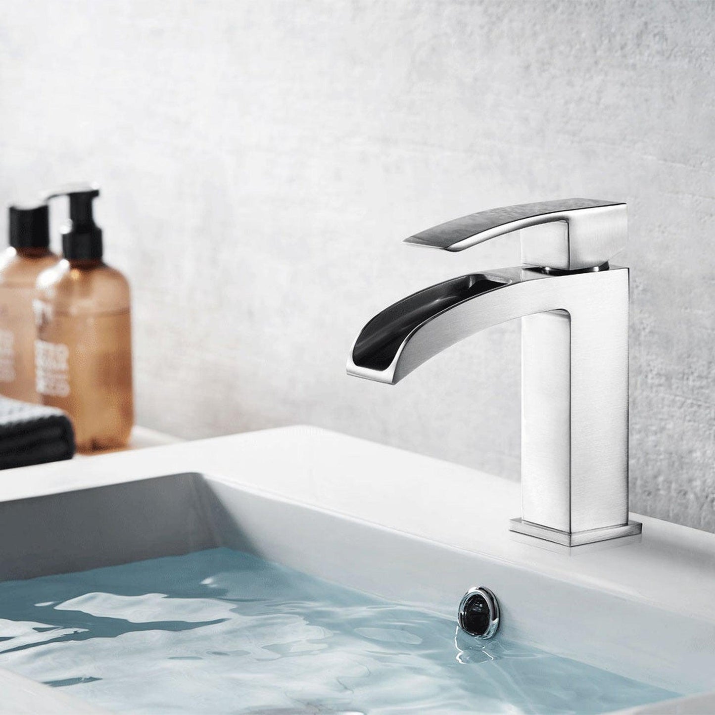 Vinnova Liberty 6" Single Hole Satin Nickel Low Arc Waterfall Bathroom Sink Faucet