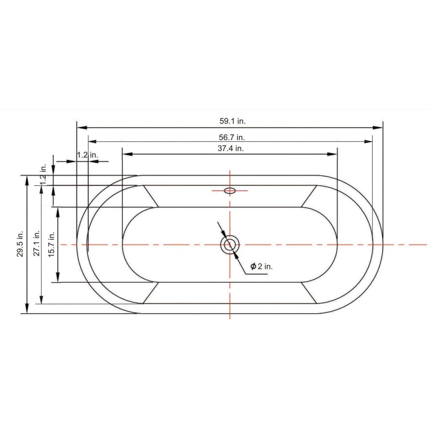Vinnova Lumina 59" x 30" White Rectangular Freestanding Soaking Acrylic Bathtub