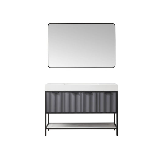 Vinnova Marcilla 48" Single Sink Bath Vanity In Grey With One-Piece Composite Stone Sink Top And Mirror