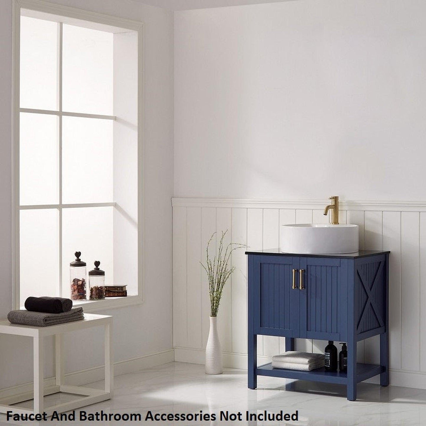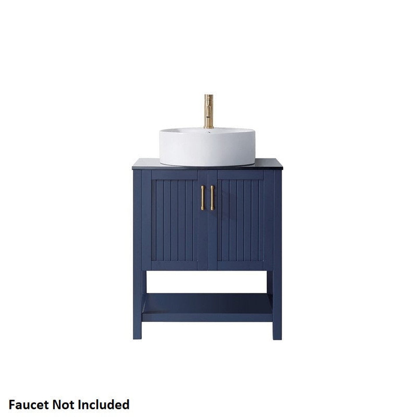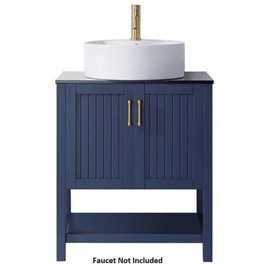 Vinnova Modena 28" Royal Blue Freestanding Single Vanity Set In Dark Black Glass Top With Vessel Ceramic Sink
