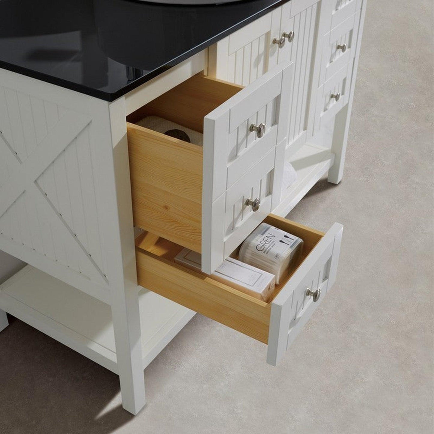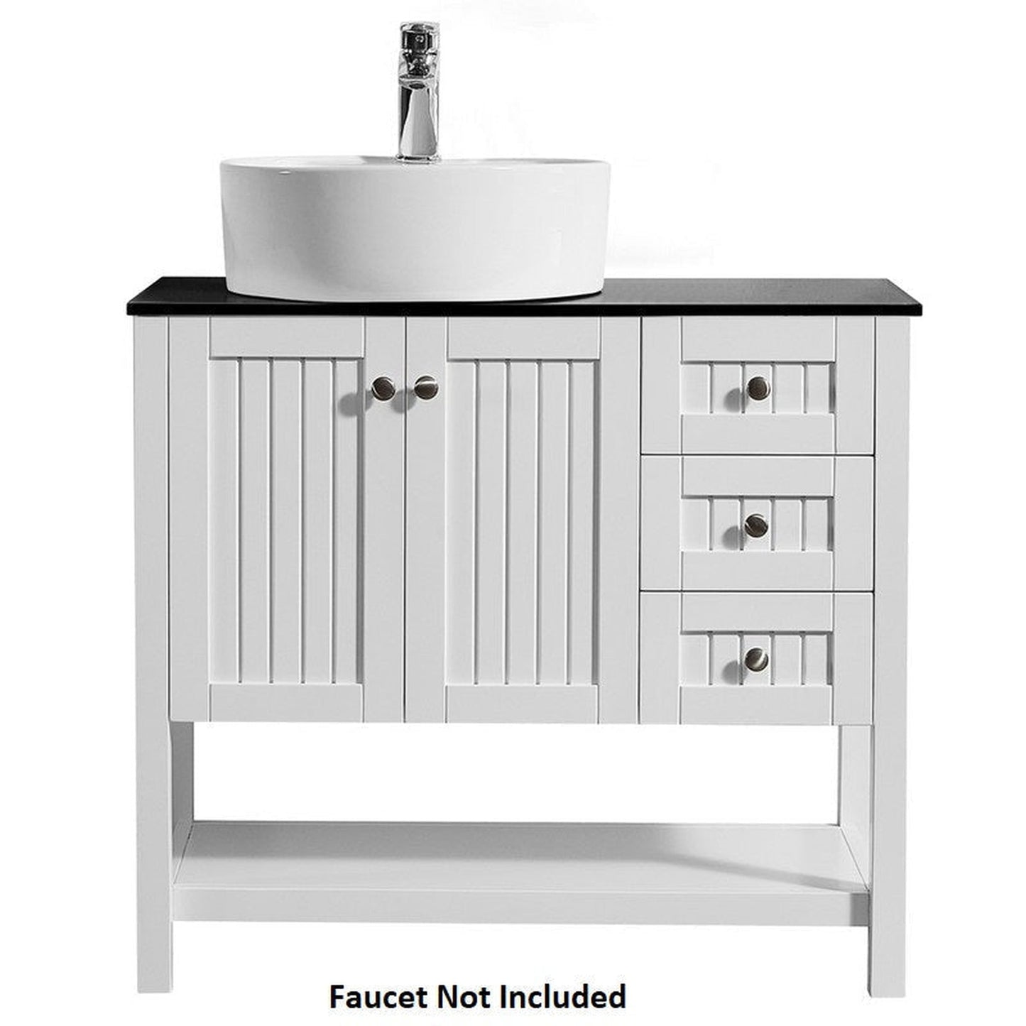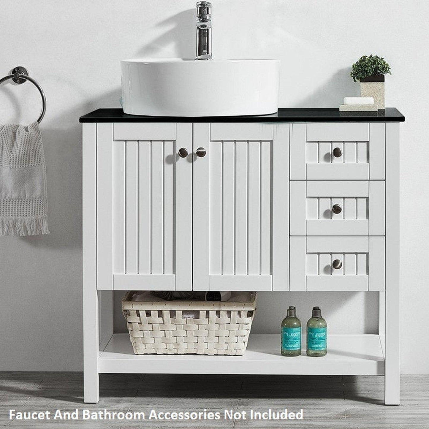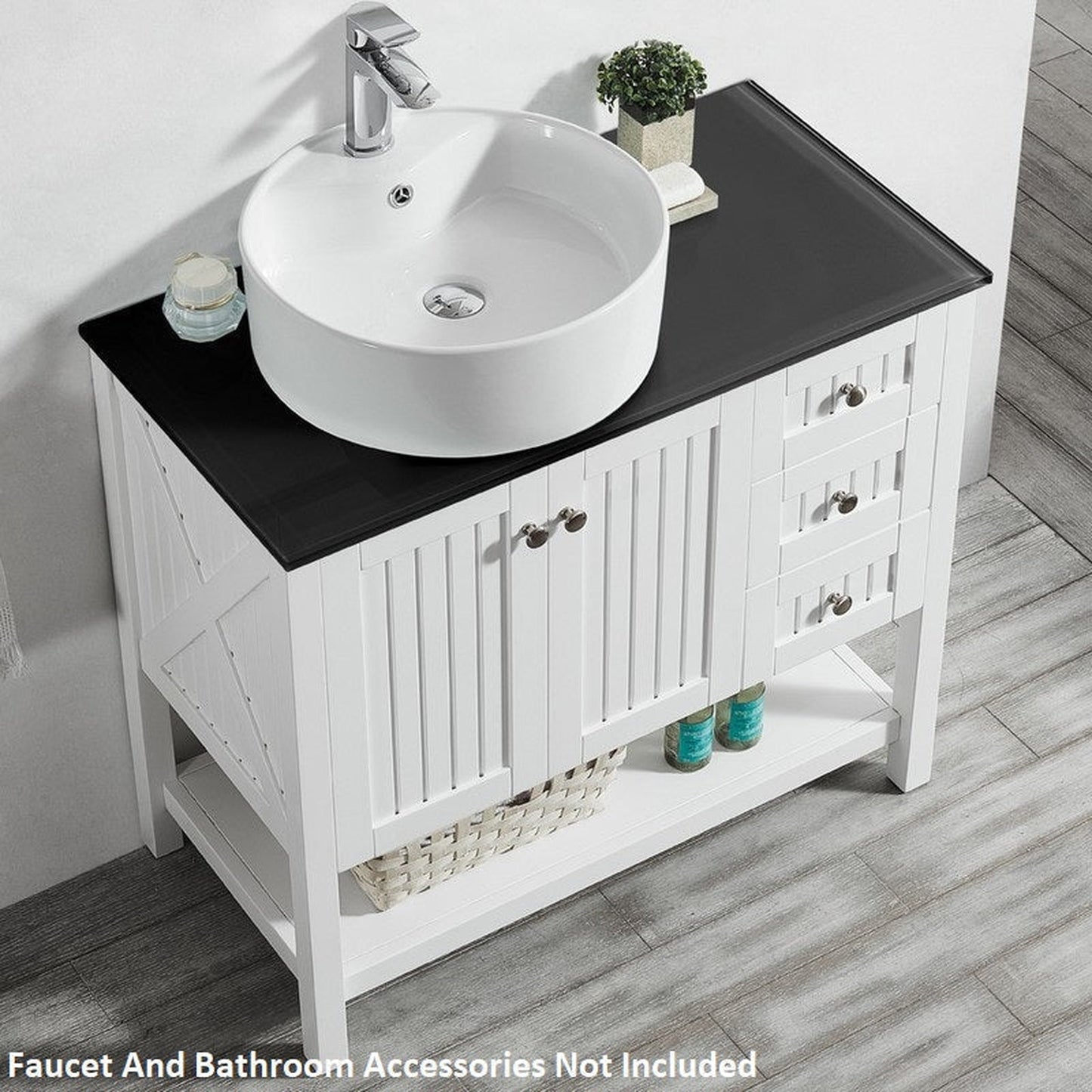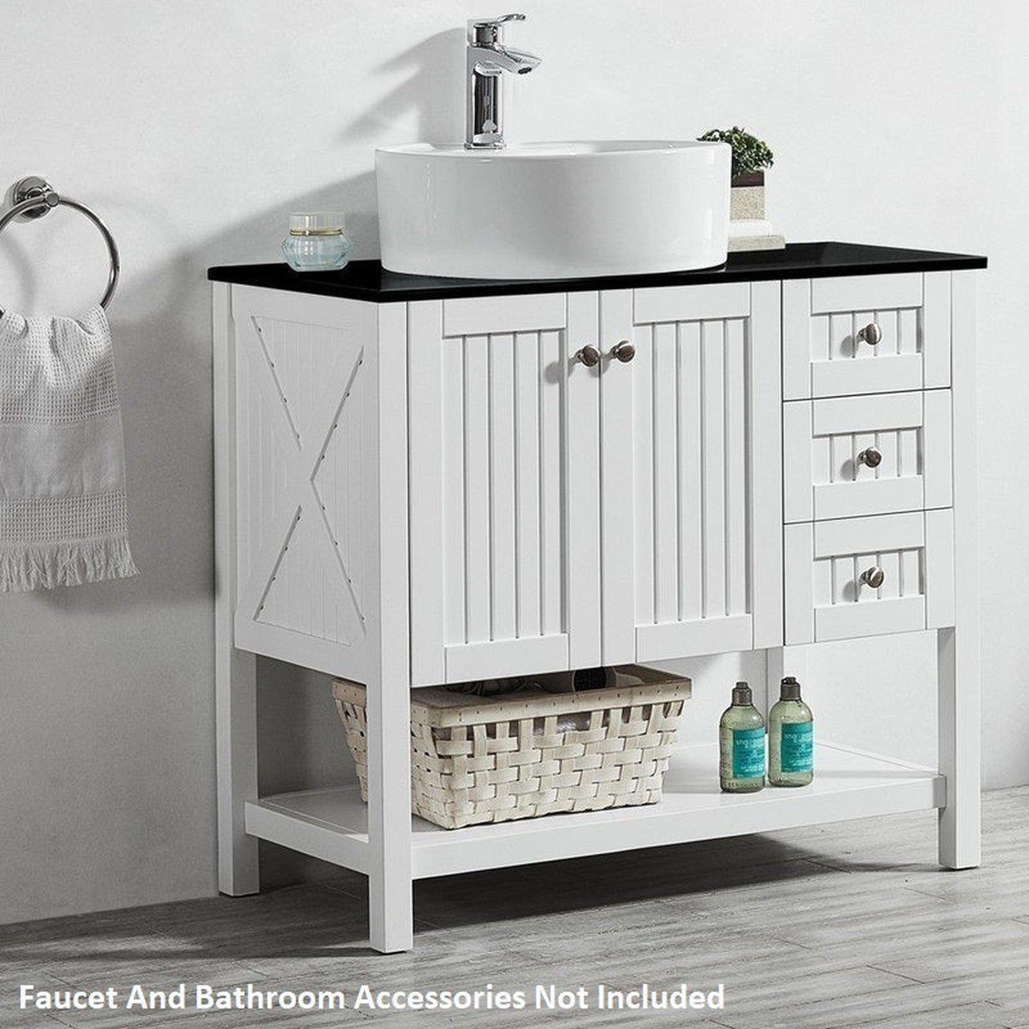 Vinnova Modena 36" White Freestanding Single Vanity Set In Dark Black Glass Top With Vessel Ceramic Sink