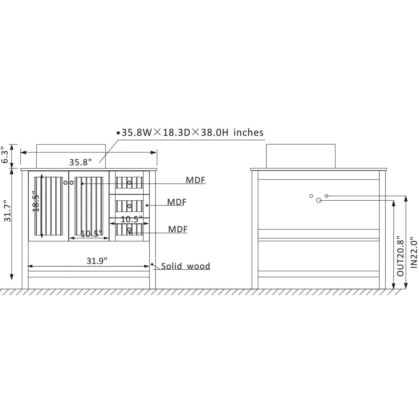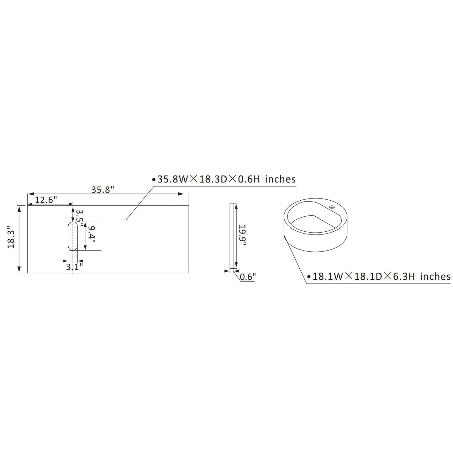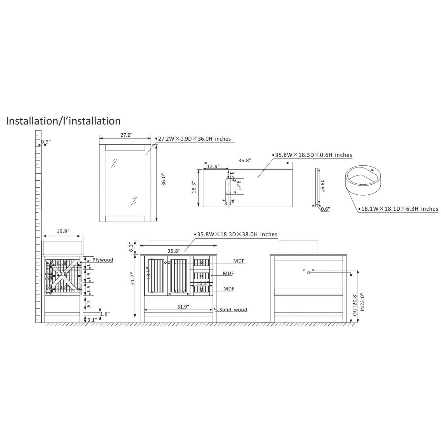 | Vanity Assembled Dimension | 35.8" W x 18.3" D x 38" H |