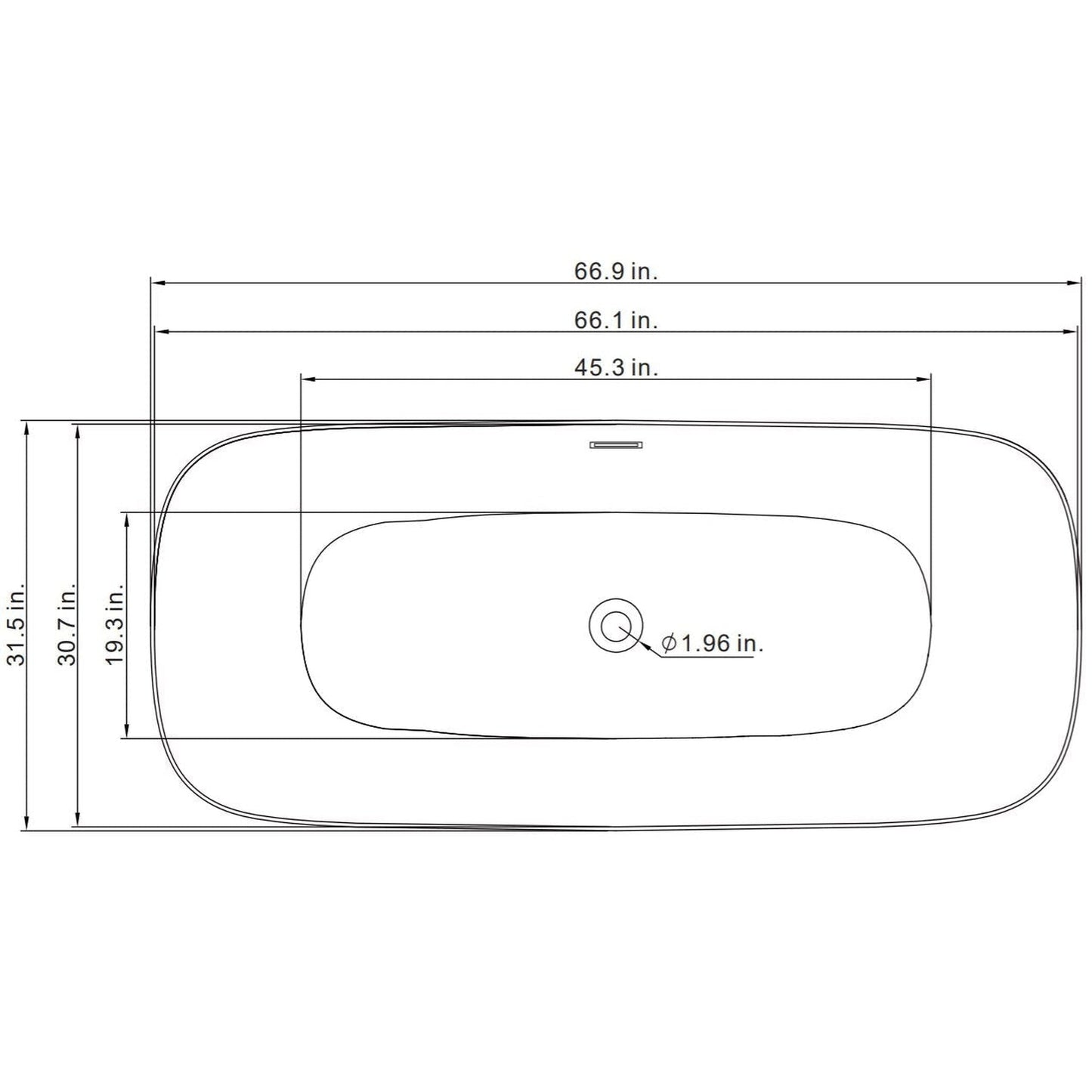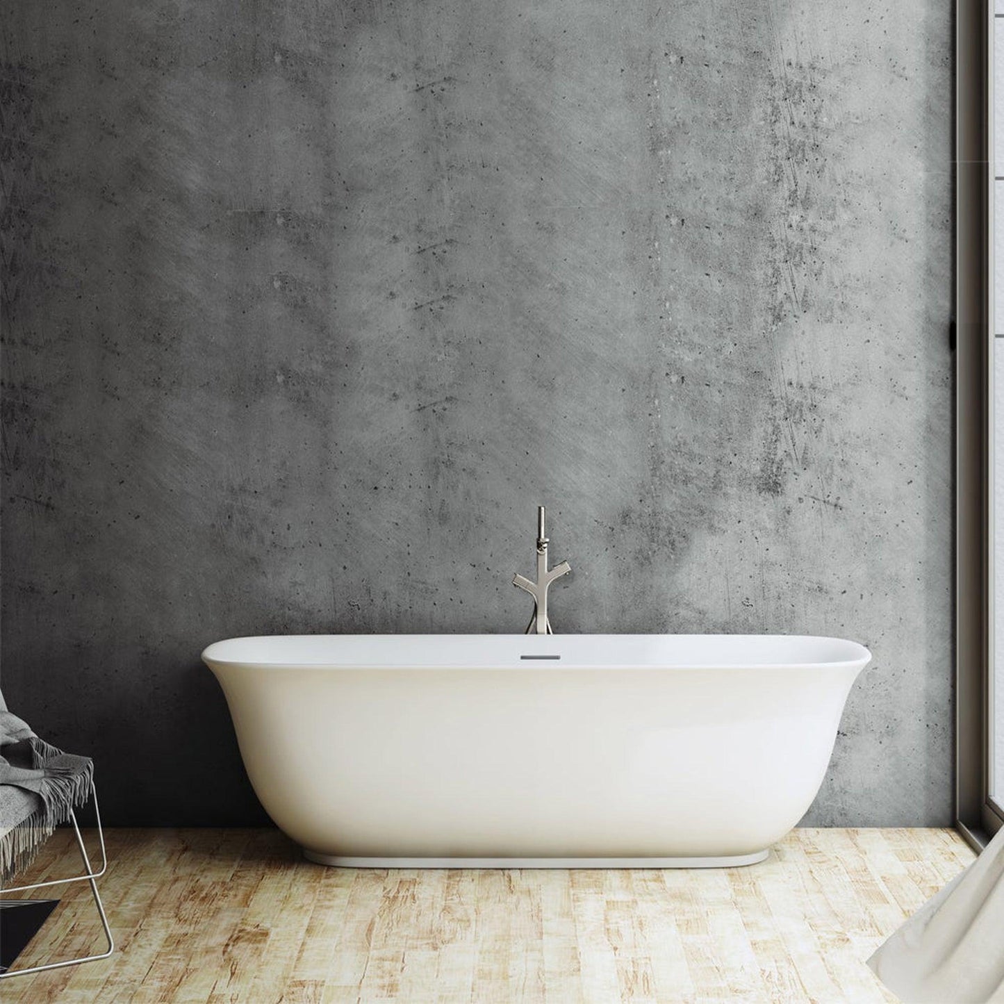 Vinnova Orion 67" x 32" White Oval Freestanding Soaking Acrylic Bathtub