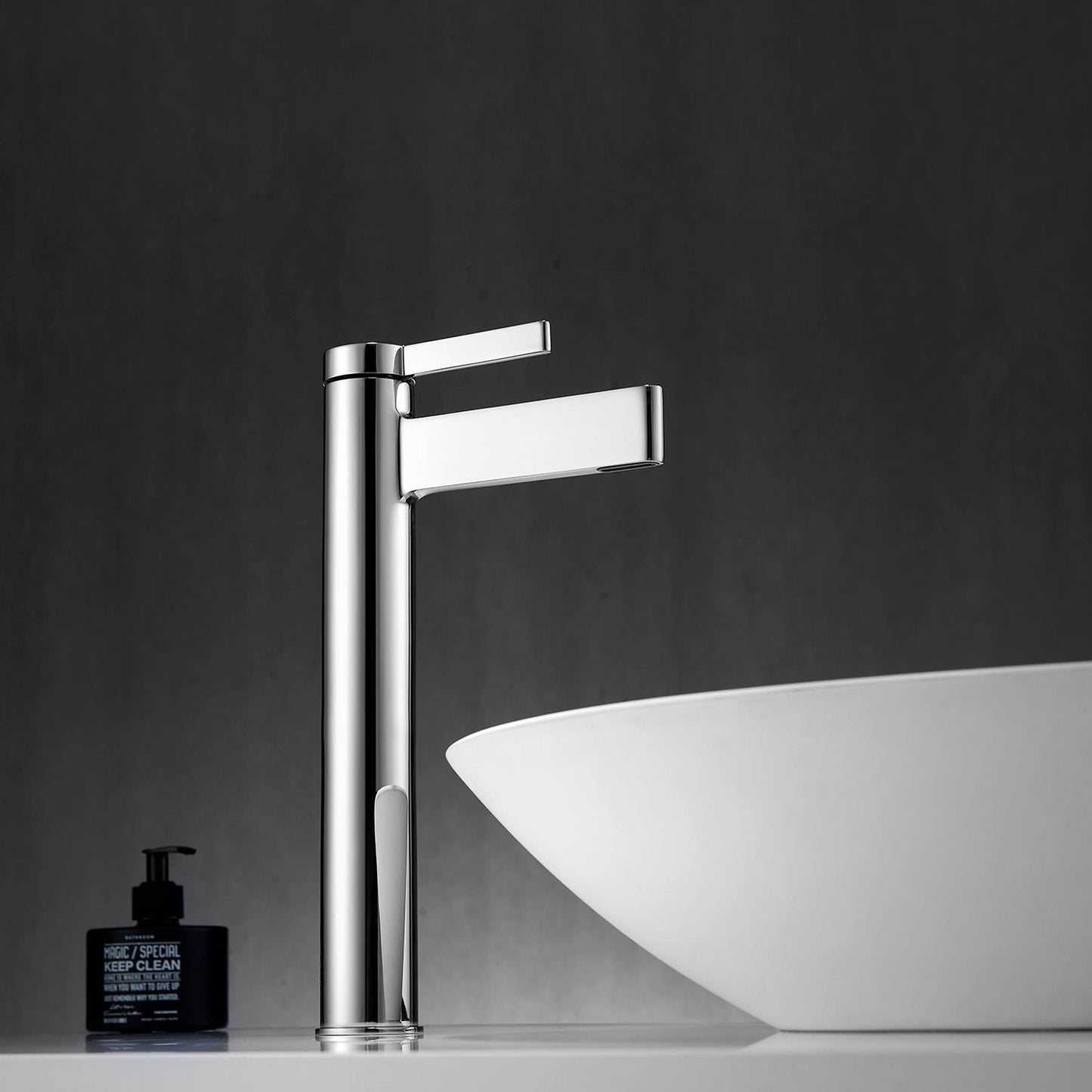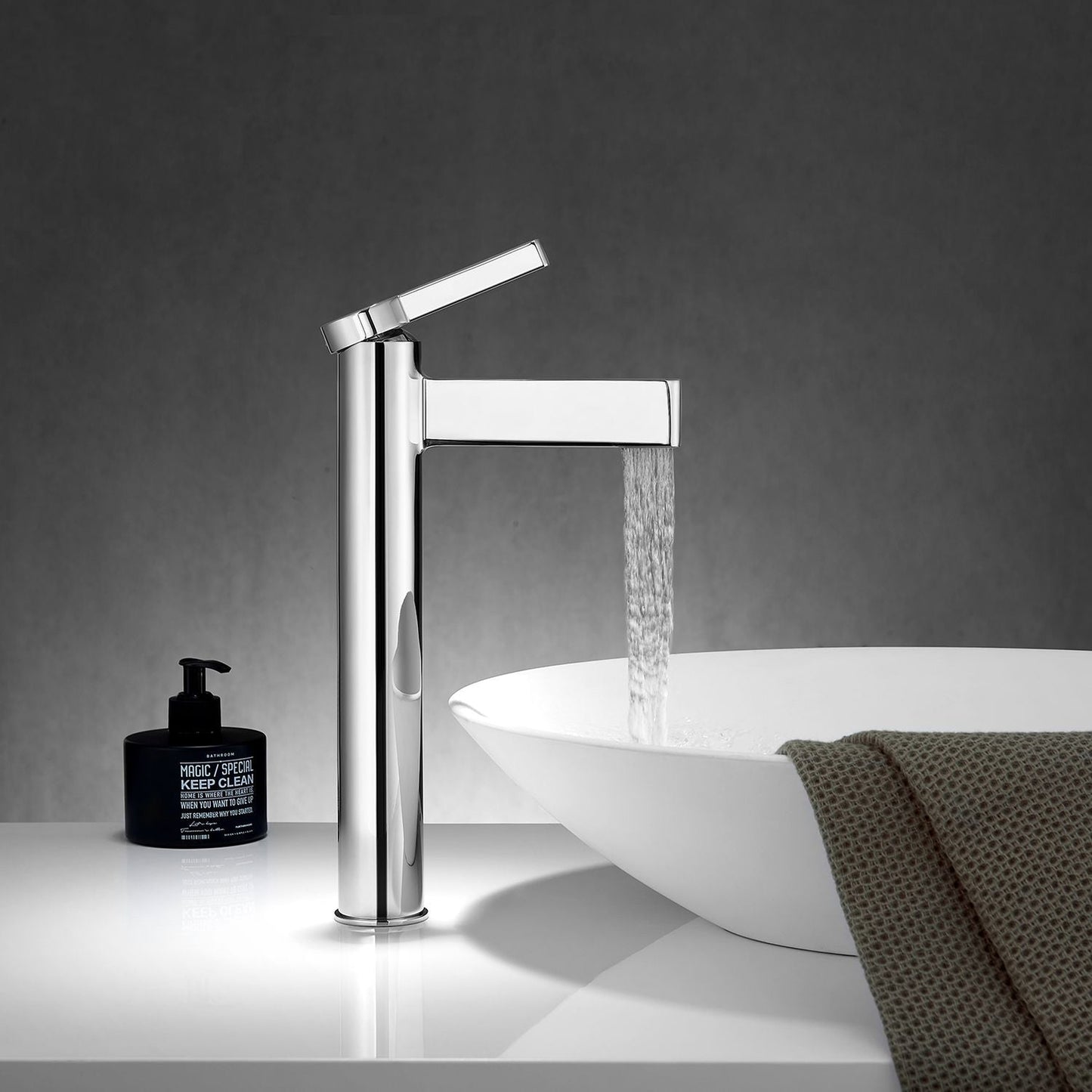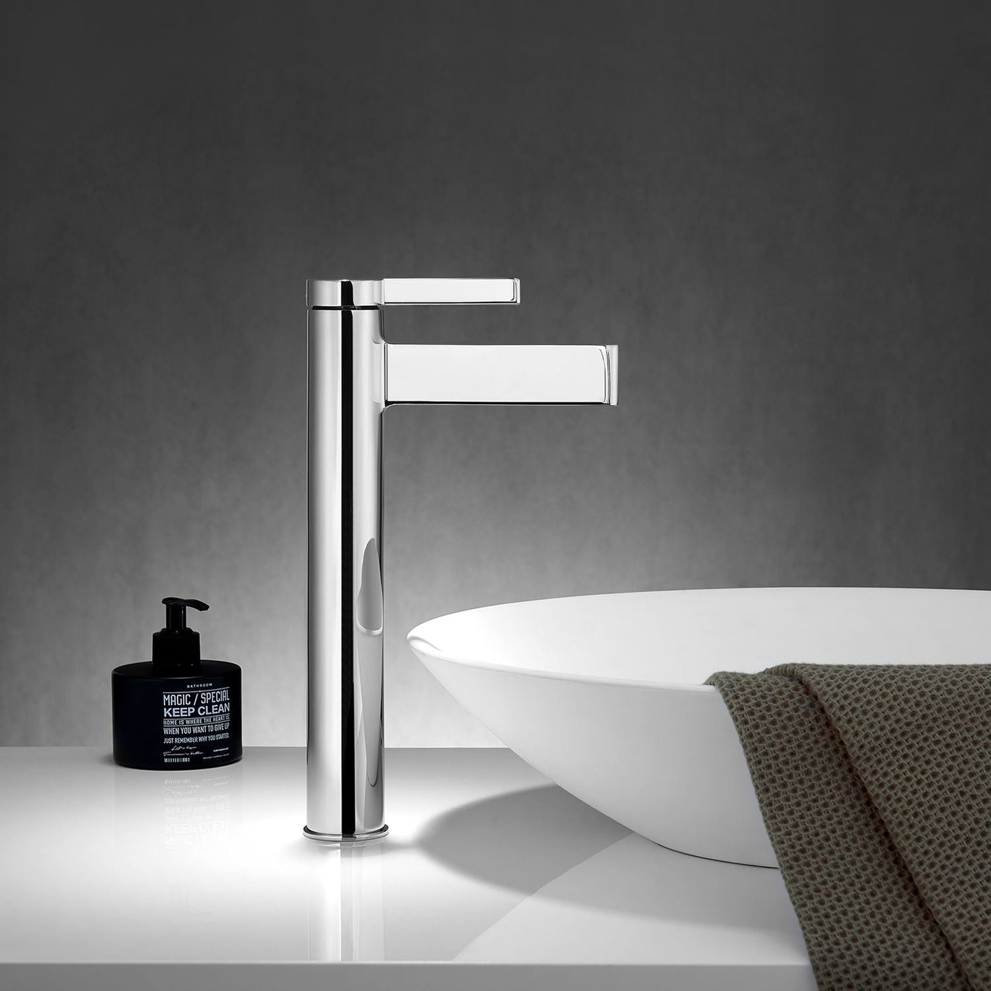 Vinnova Oviedo 12" Single High-Handle Hole Lever Vessel Polished Chrome Bathroom Faucet