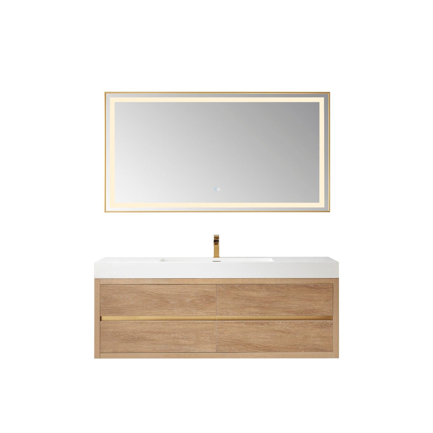Vinnova Palencia 60" Single Sink Wall-Mount Bath Vanity In North American Oak With White Composite Integral Square Sink Top And Mirror