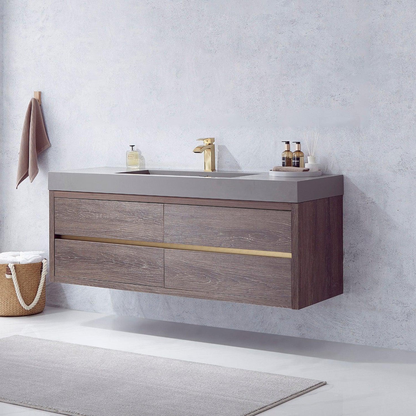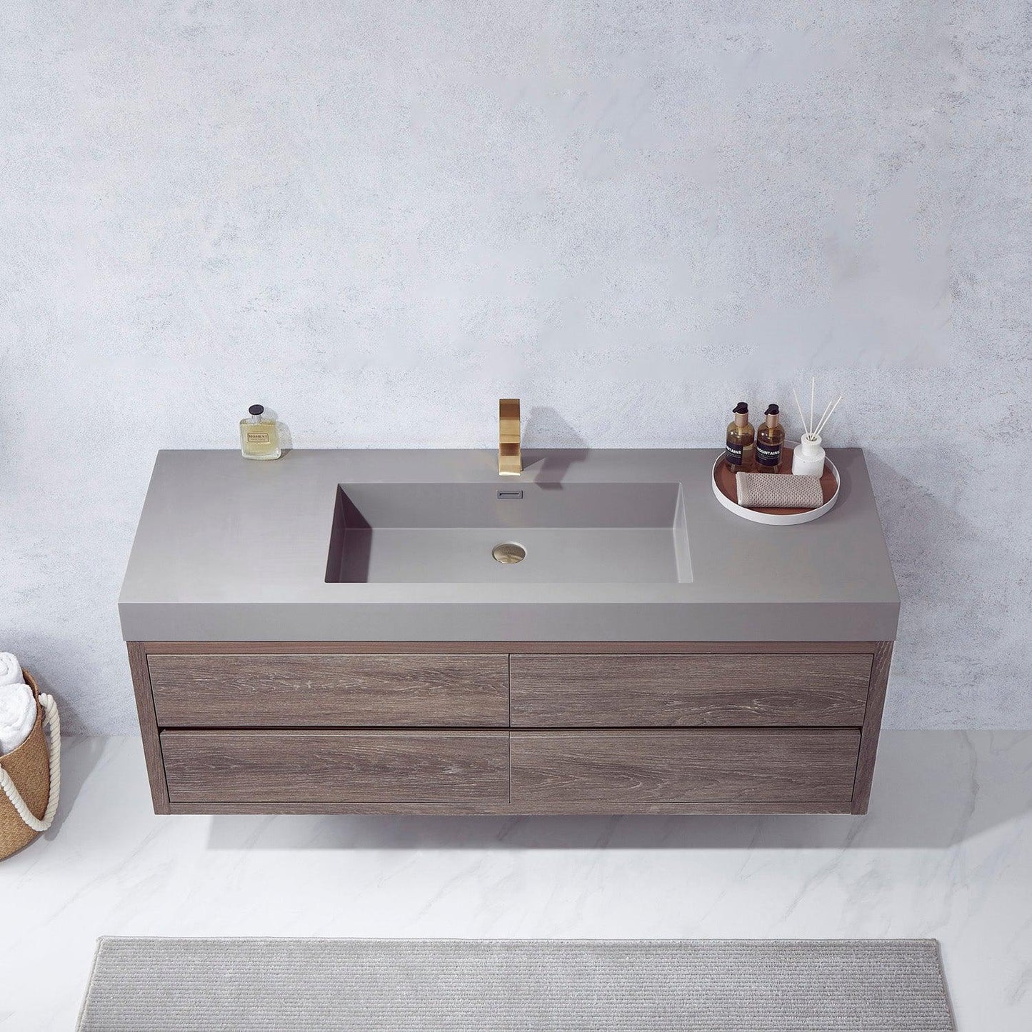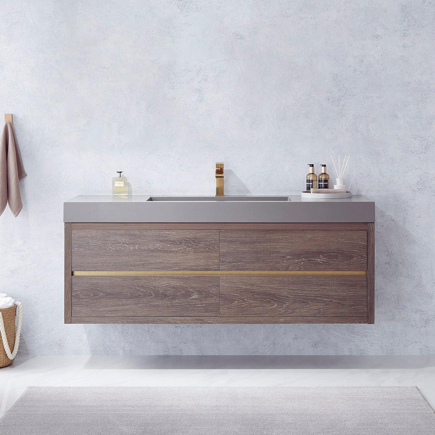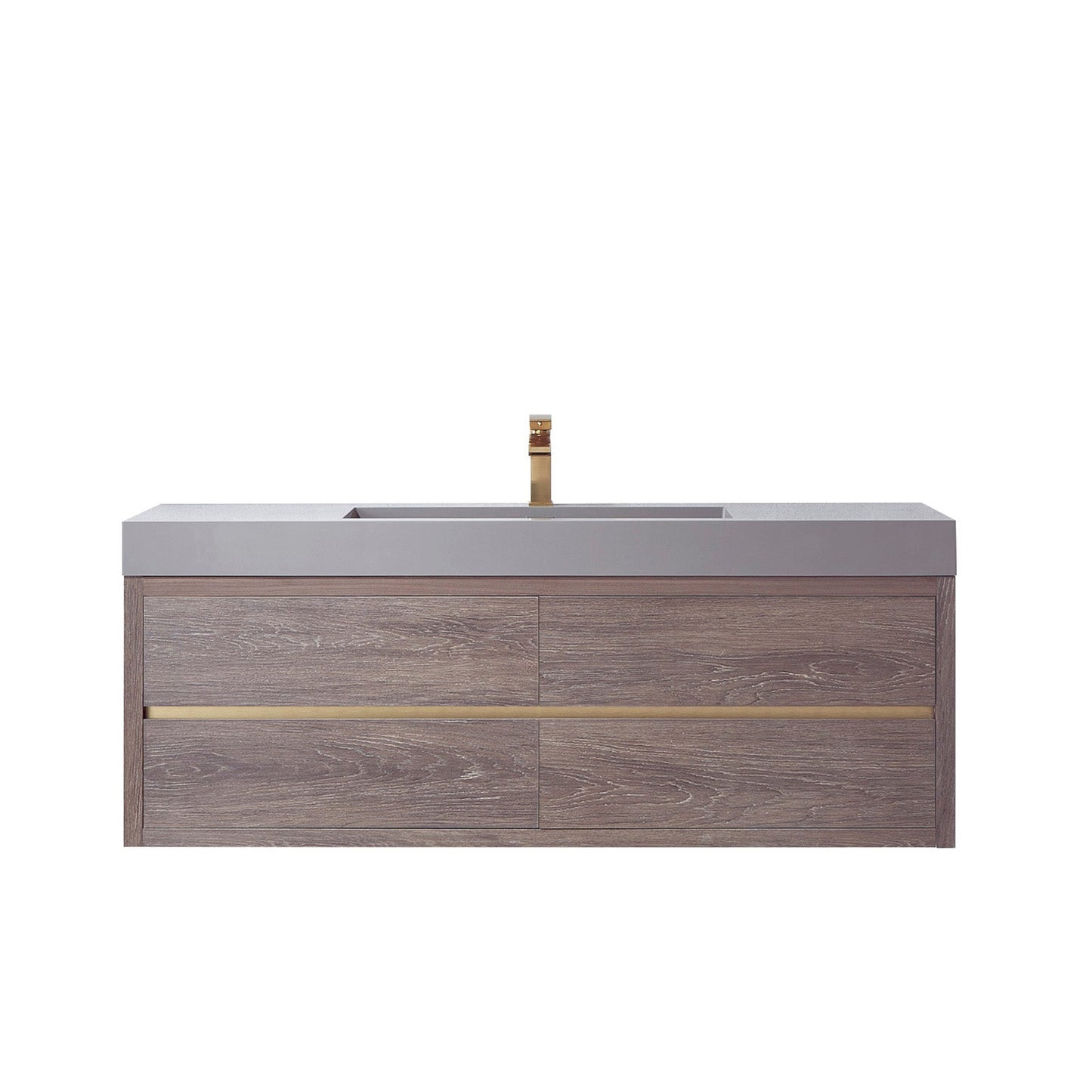 Vinnova Palencia 60" Single Sink Wall-Mount Bath Vanity In North Carolina Oak With Grey Composite Integral Square Sink Top