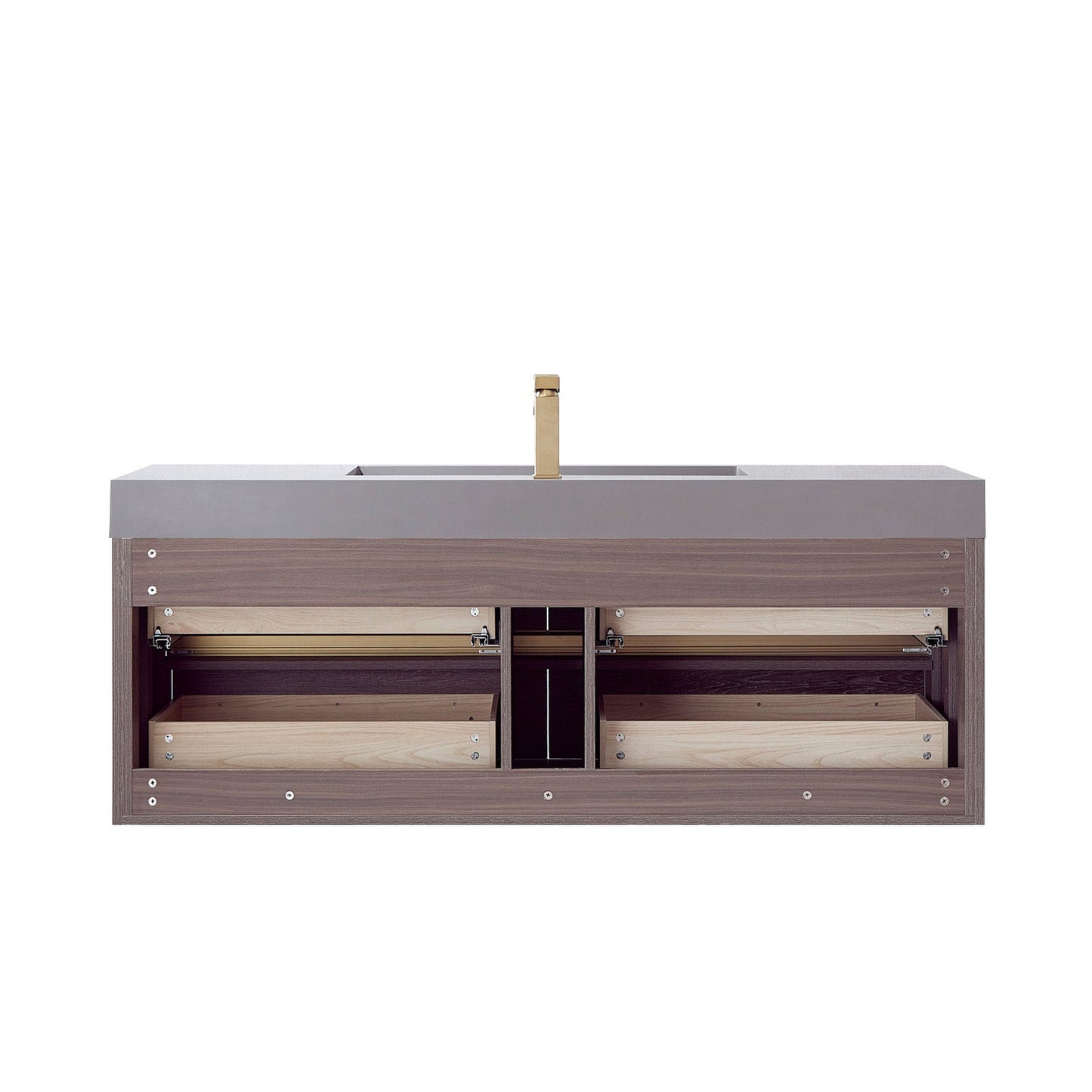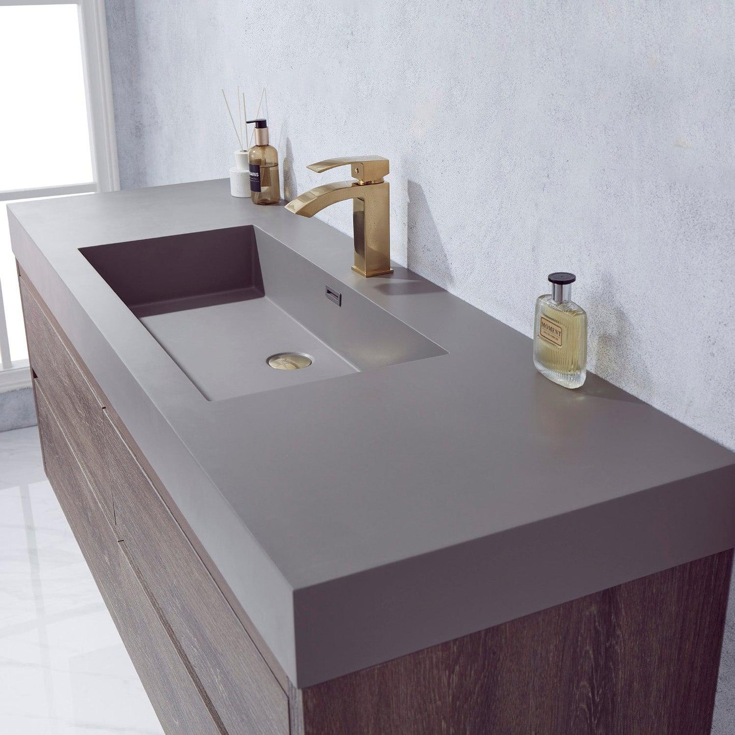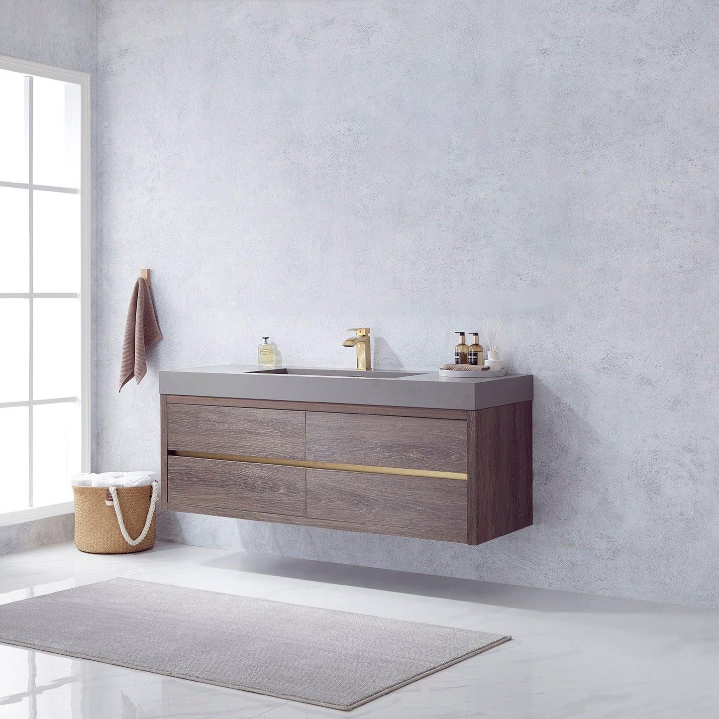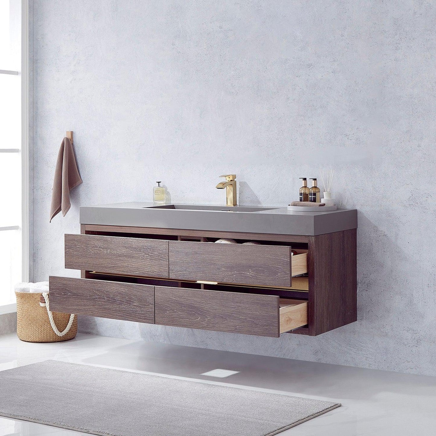 Vinnova Palencia 60" Single Sink Wall-Mount Bath Vanity In North Carolina Oak With Grey Composite Integral Square Sink Top