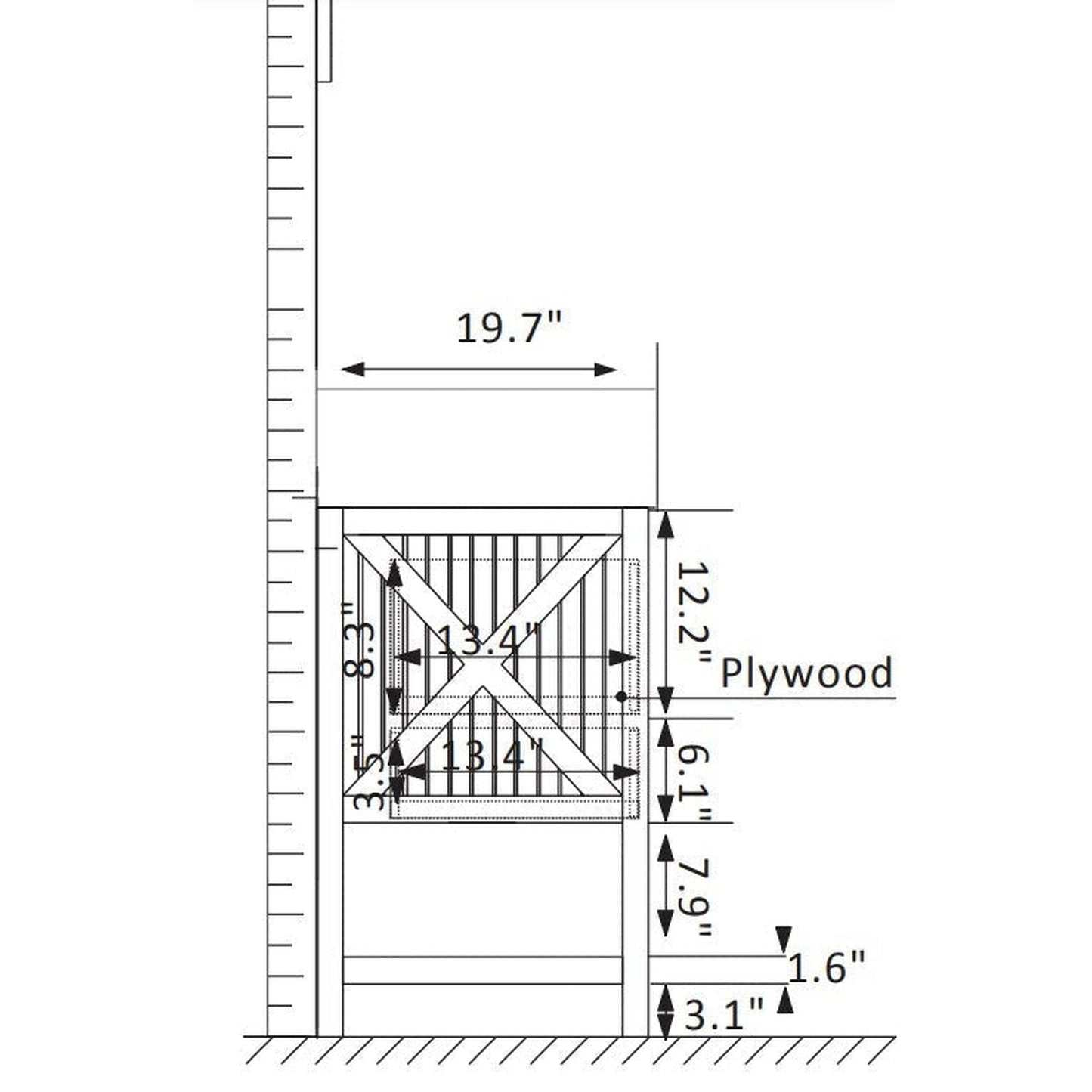 33.5" W x 0.9" D x 36" H |