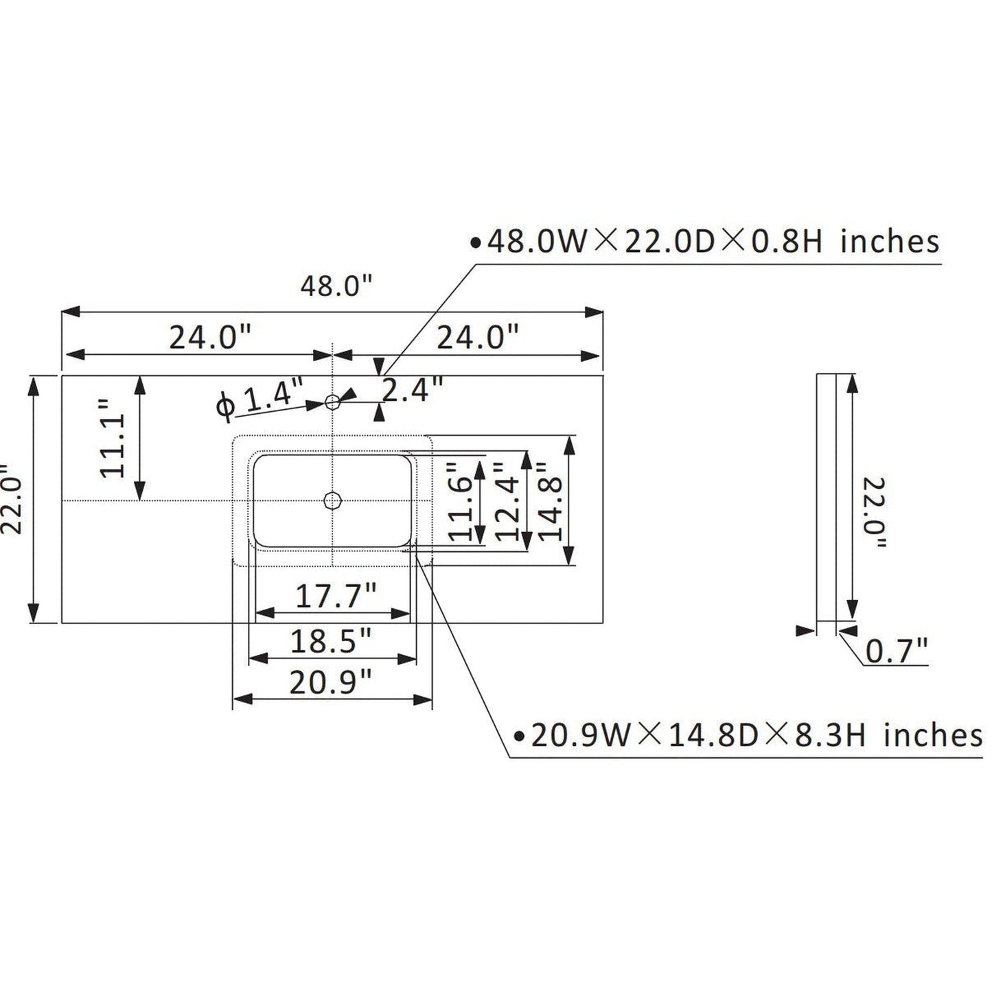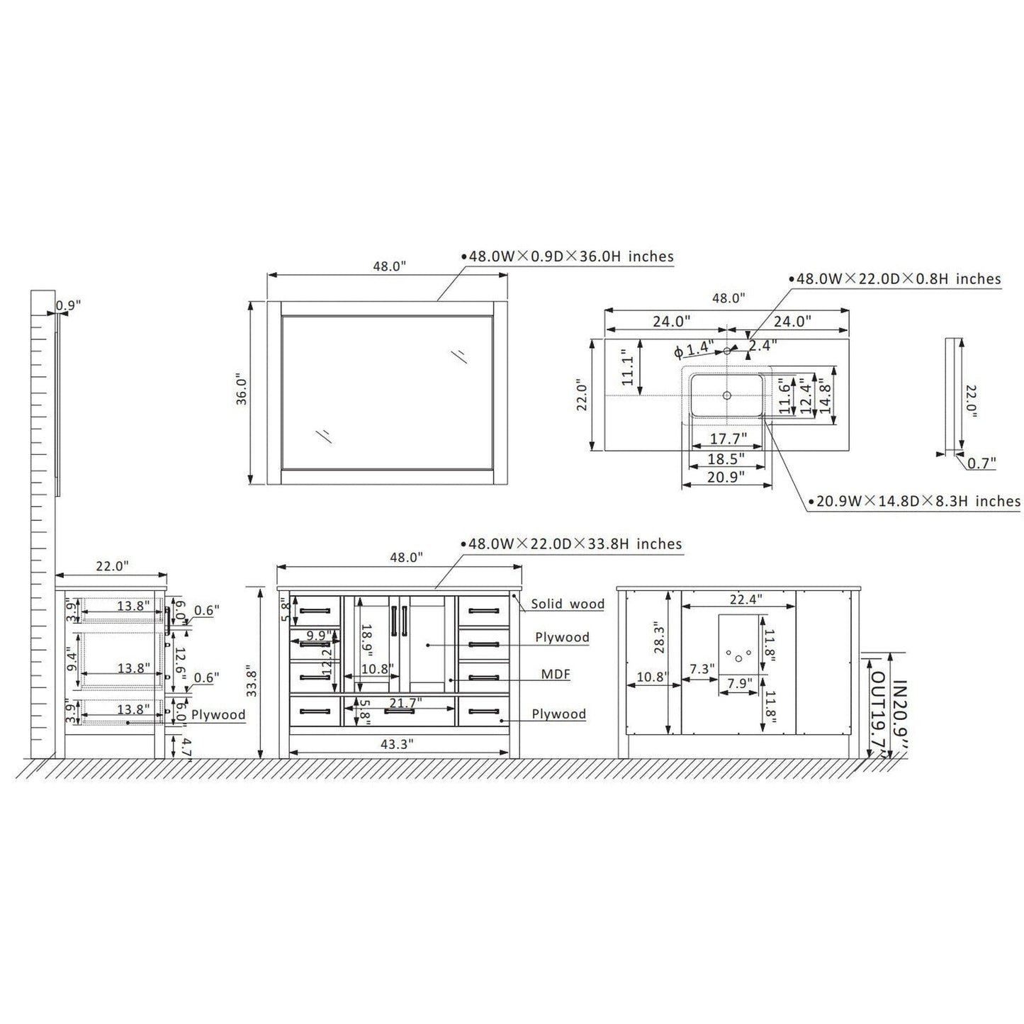 | Vanity Assembled Dimension | 48" W x 22" D x 33.9" H |