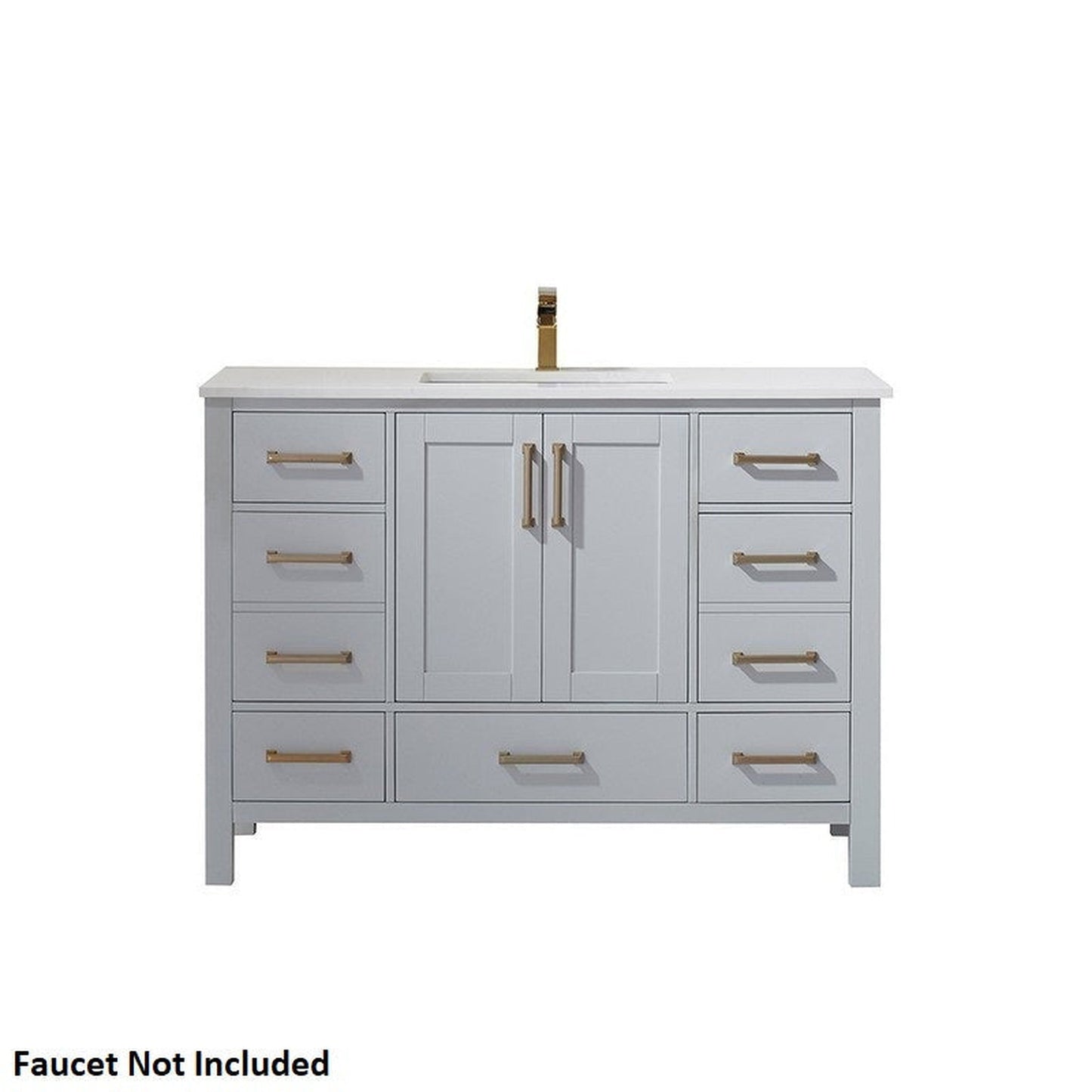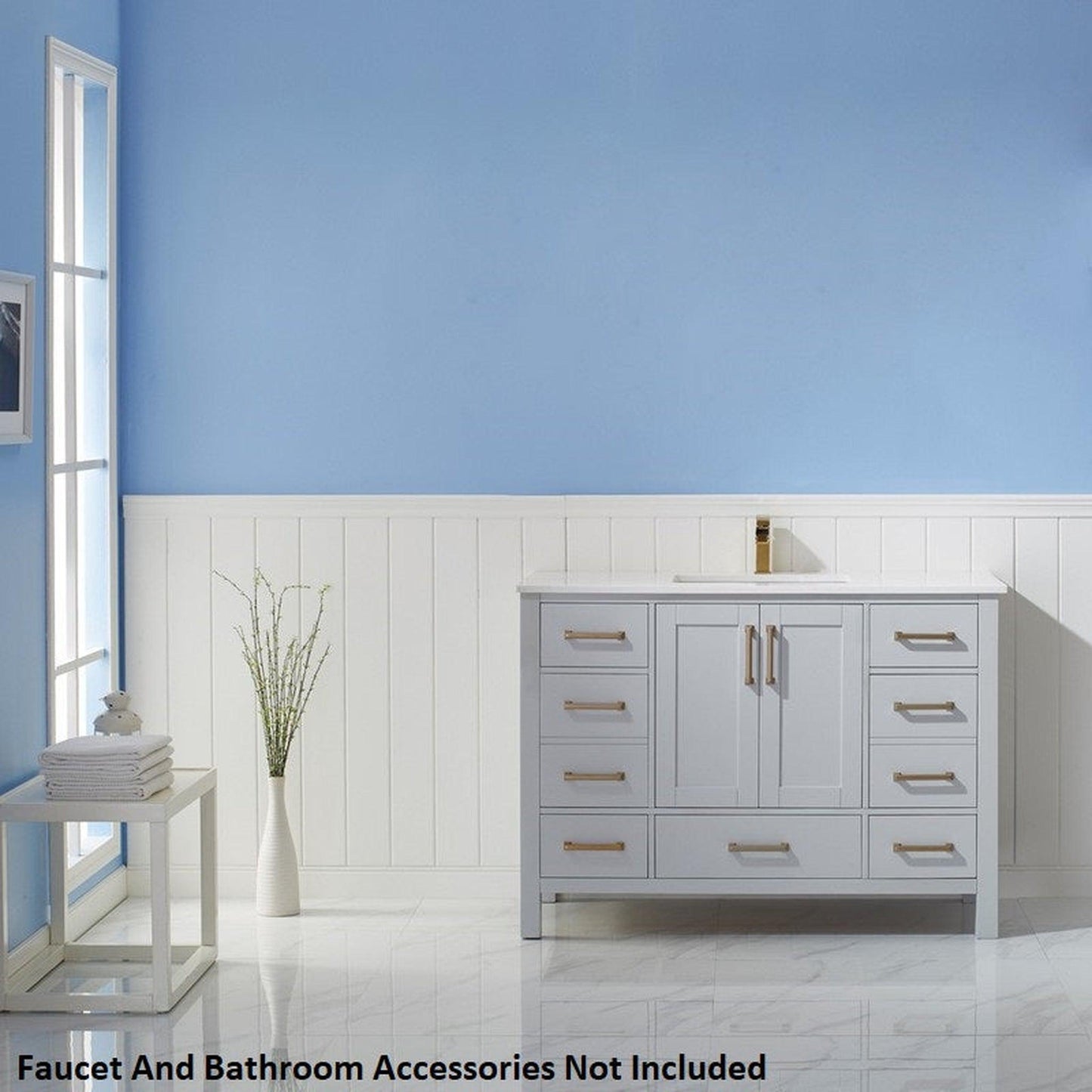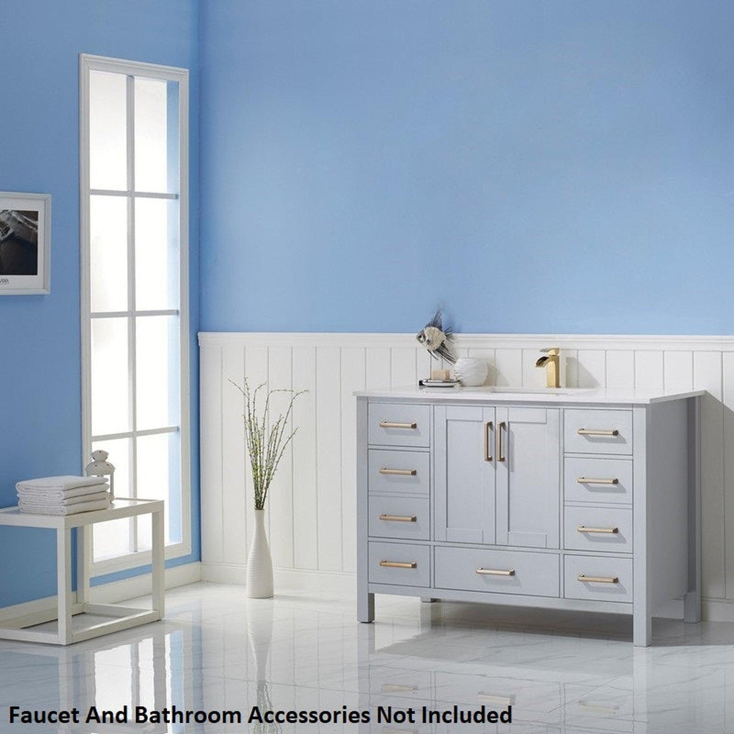 Vinnova Shannon 48" Paris Gray Freestanding Single Vanity Set In White Carrara Composite Stone Top With Undermount Ceramic