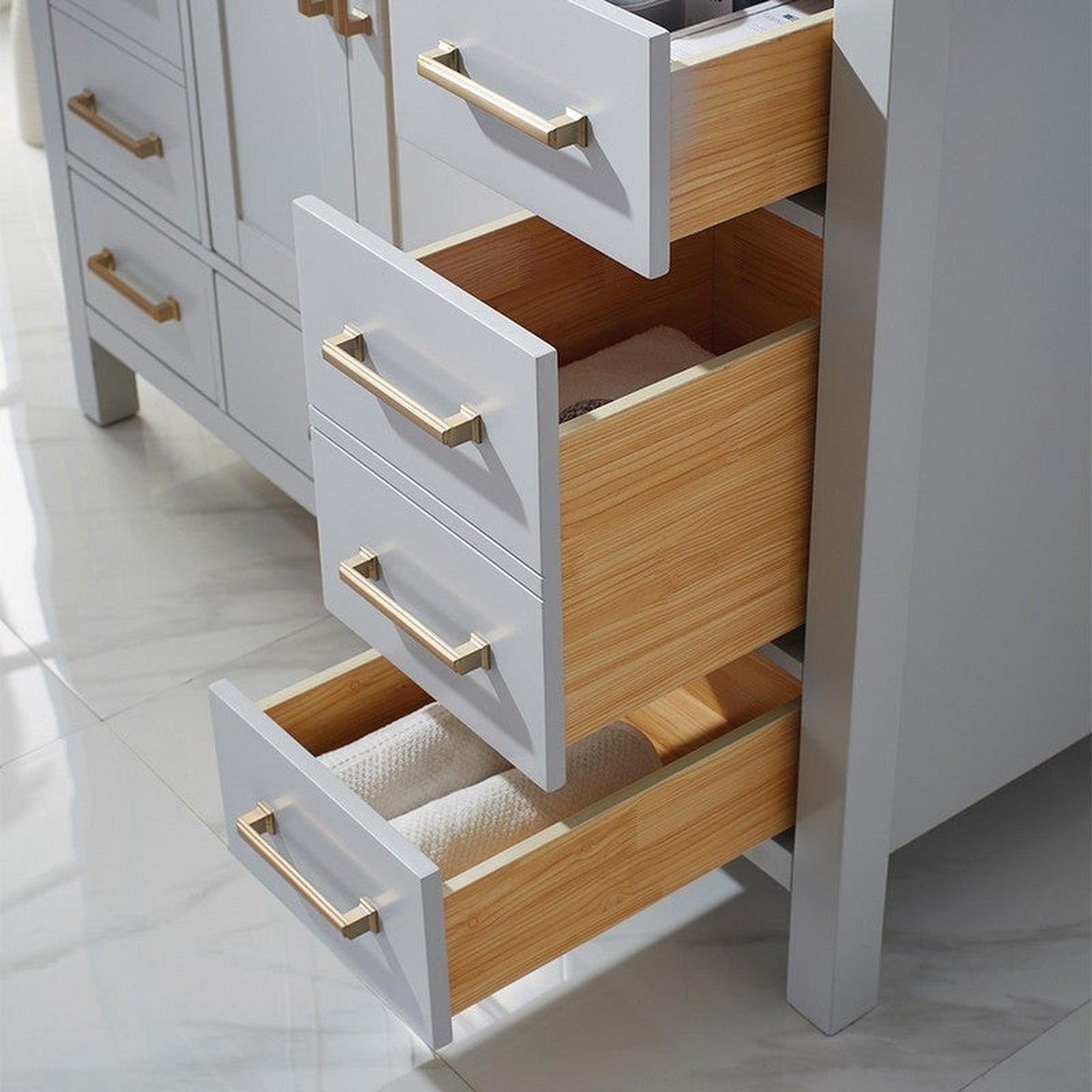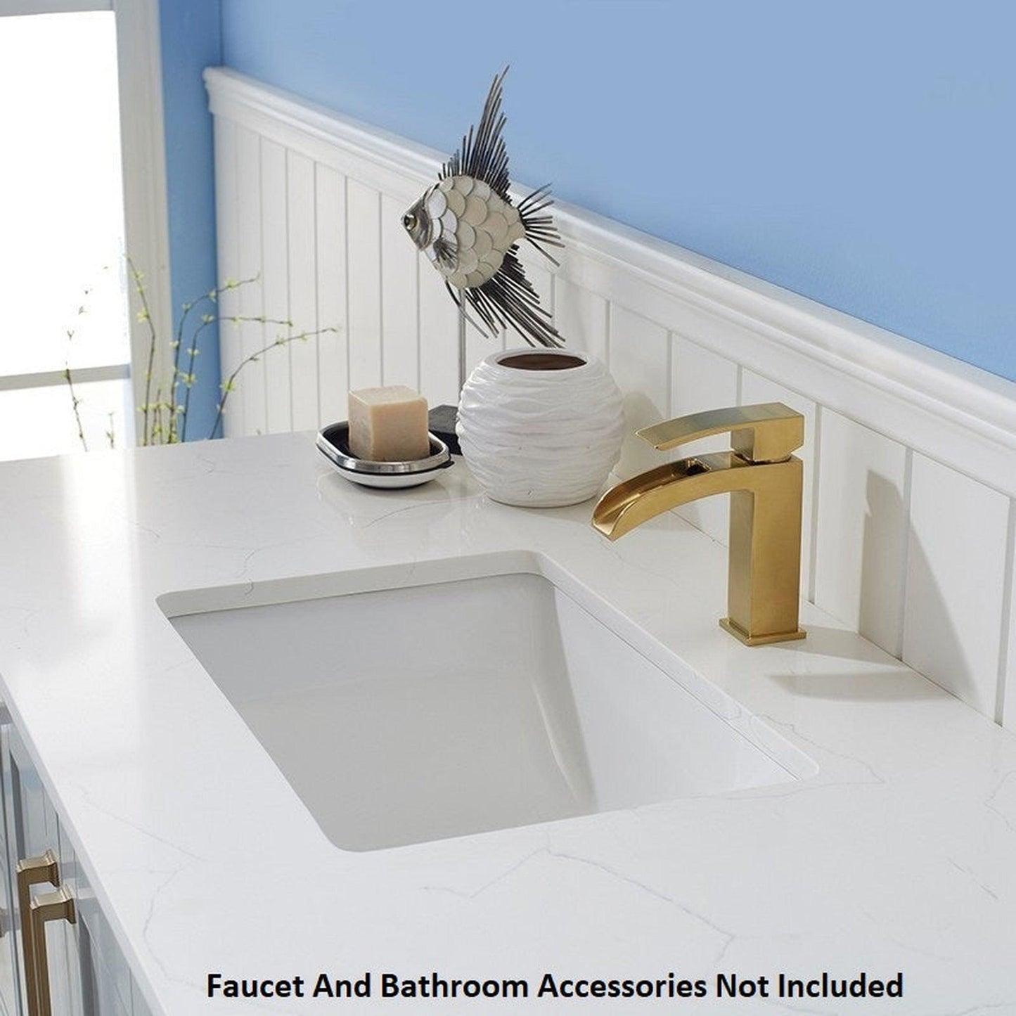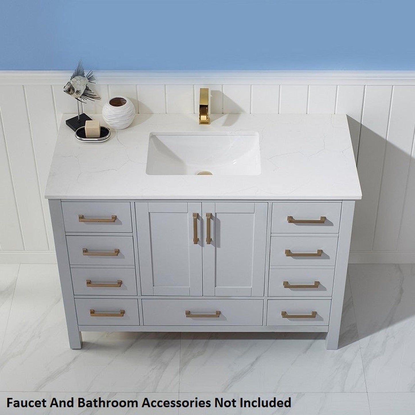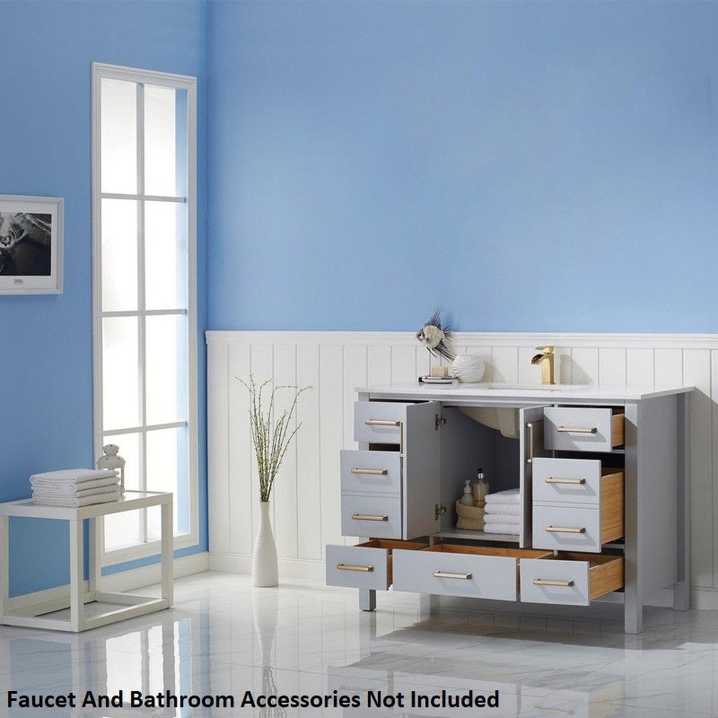 Vinnova Shannon 48" Paris Gray Freestanding Single Vanity Set In White Carrara Composite Stone Top With Undermount Ceramic
