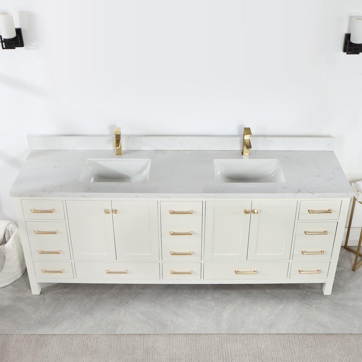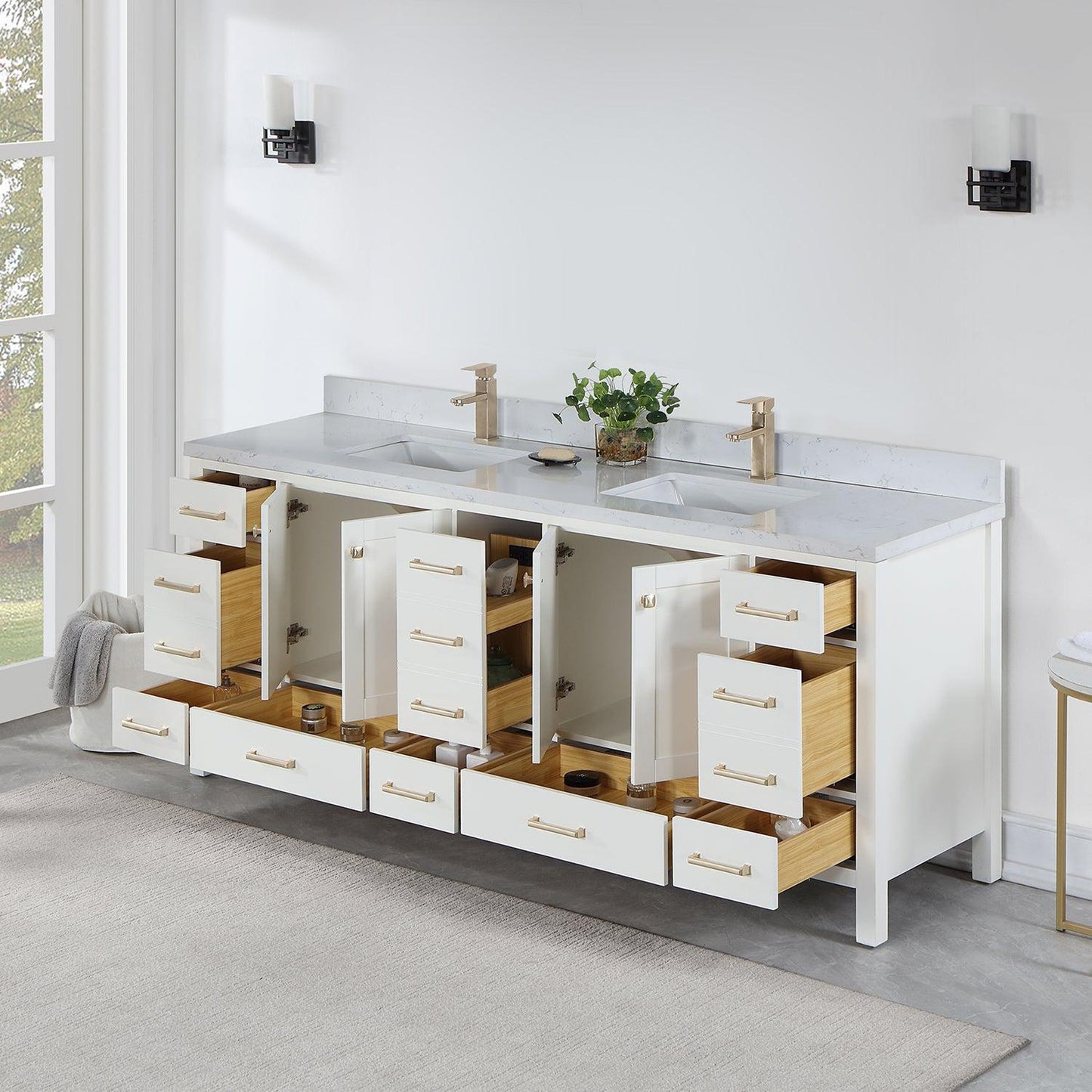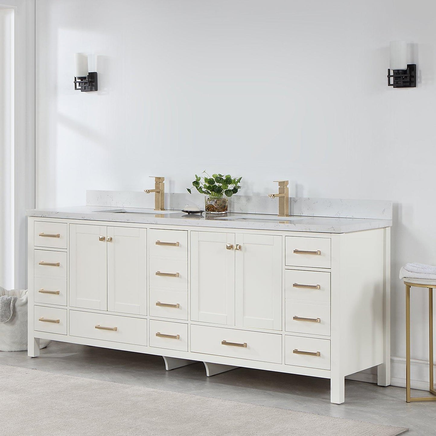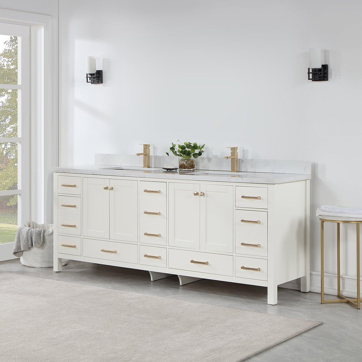 Vinnova Shannon 84" Double Vanity In White And Composite Carrara White Stone Countertop