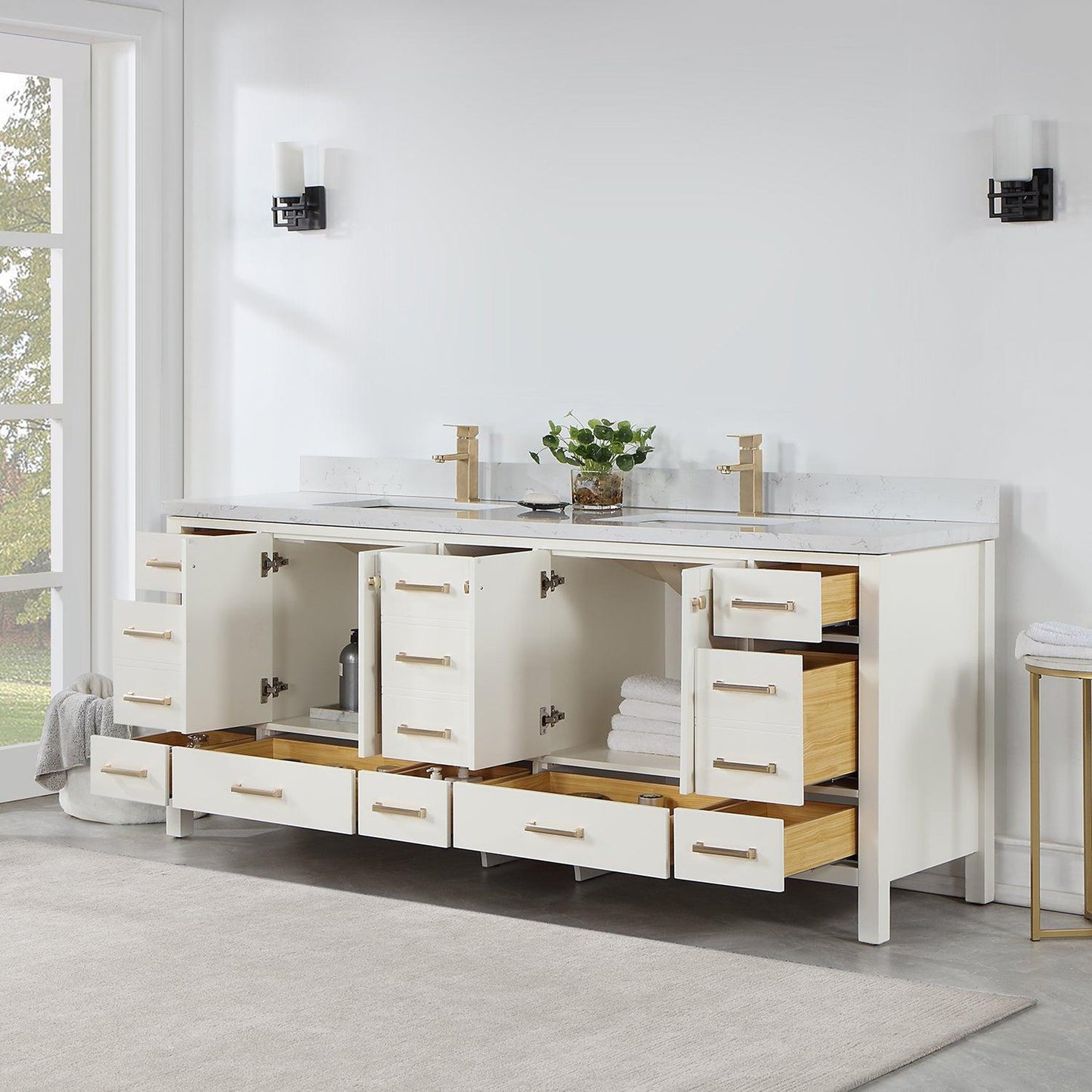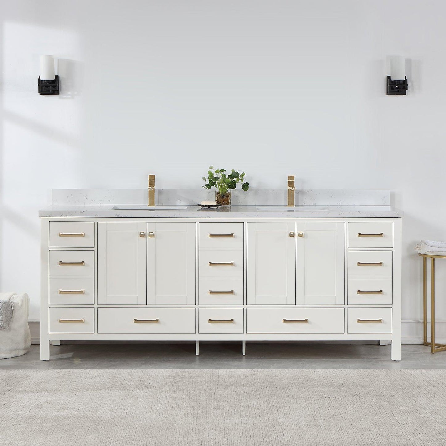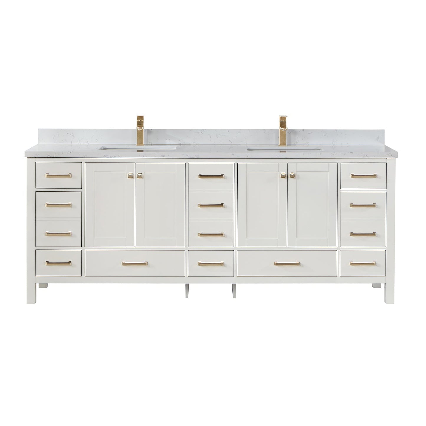 Vinnova Shannon 84" Double Vanity In White And Composite Carrara White Stone Countertop
