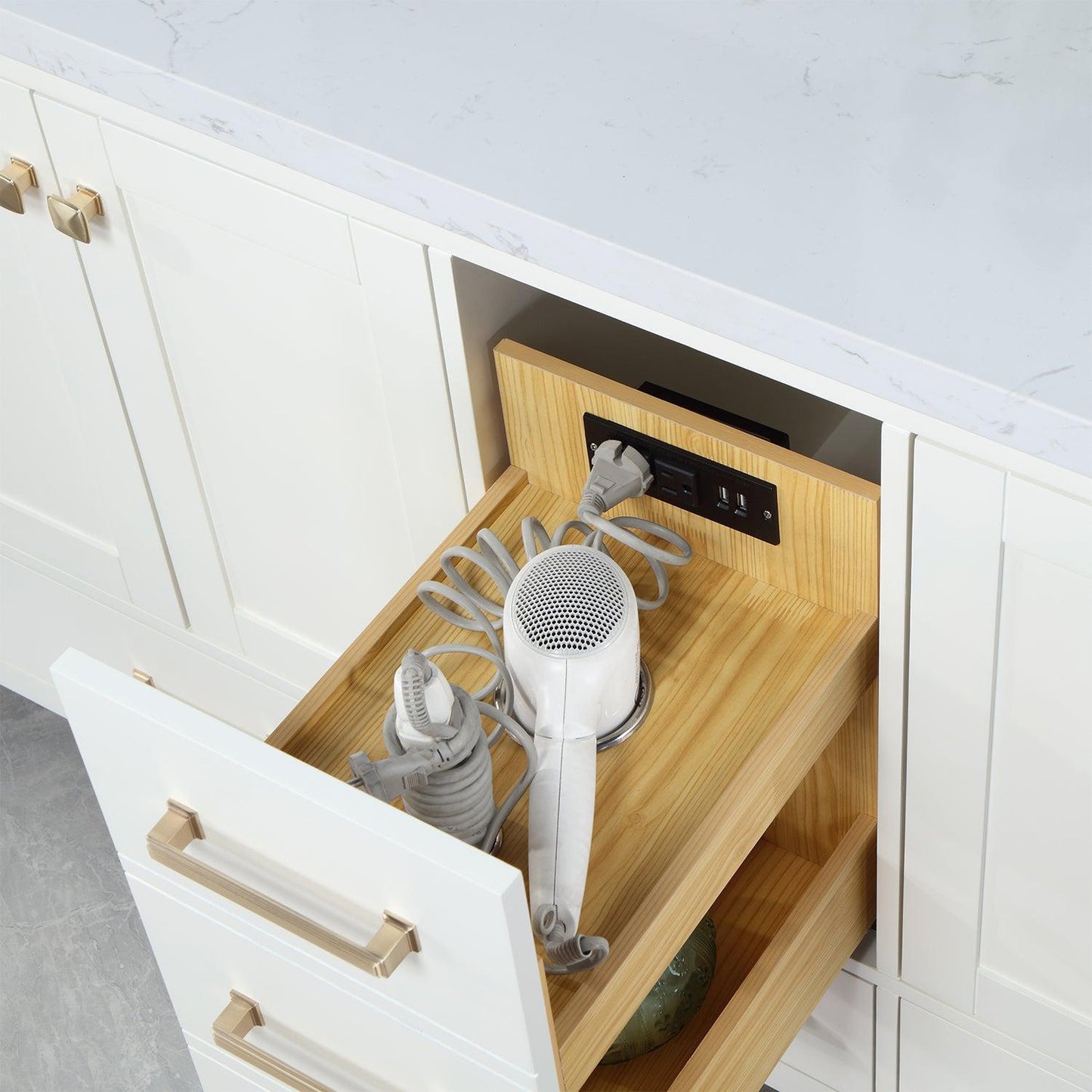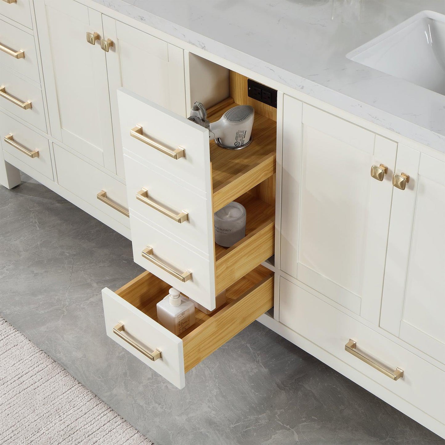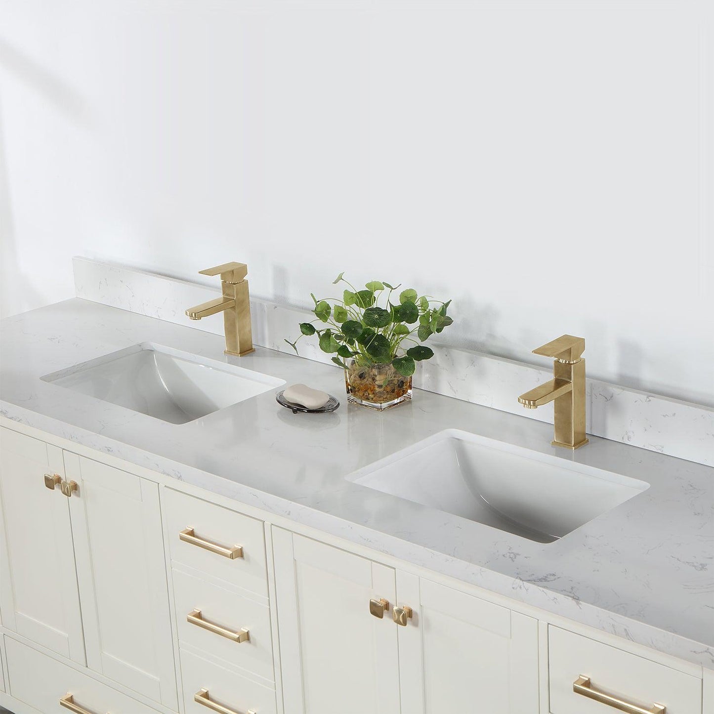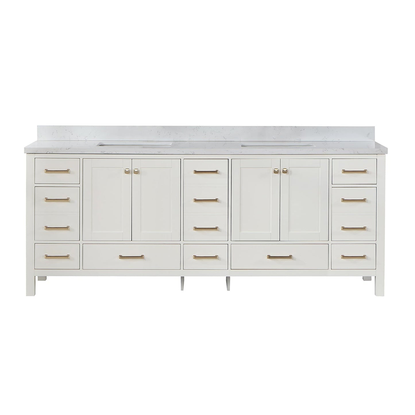 Vinnova Shannon 84" Double Vanity In White And Composite Carrara White Stone Countertop