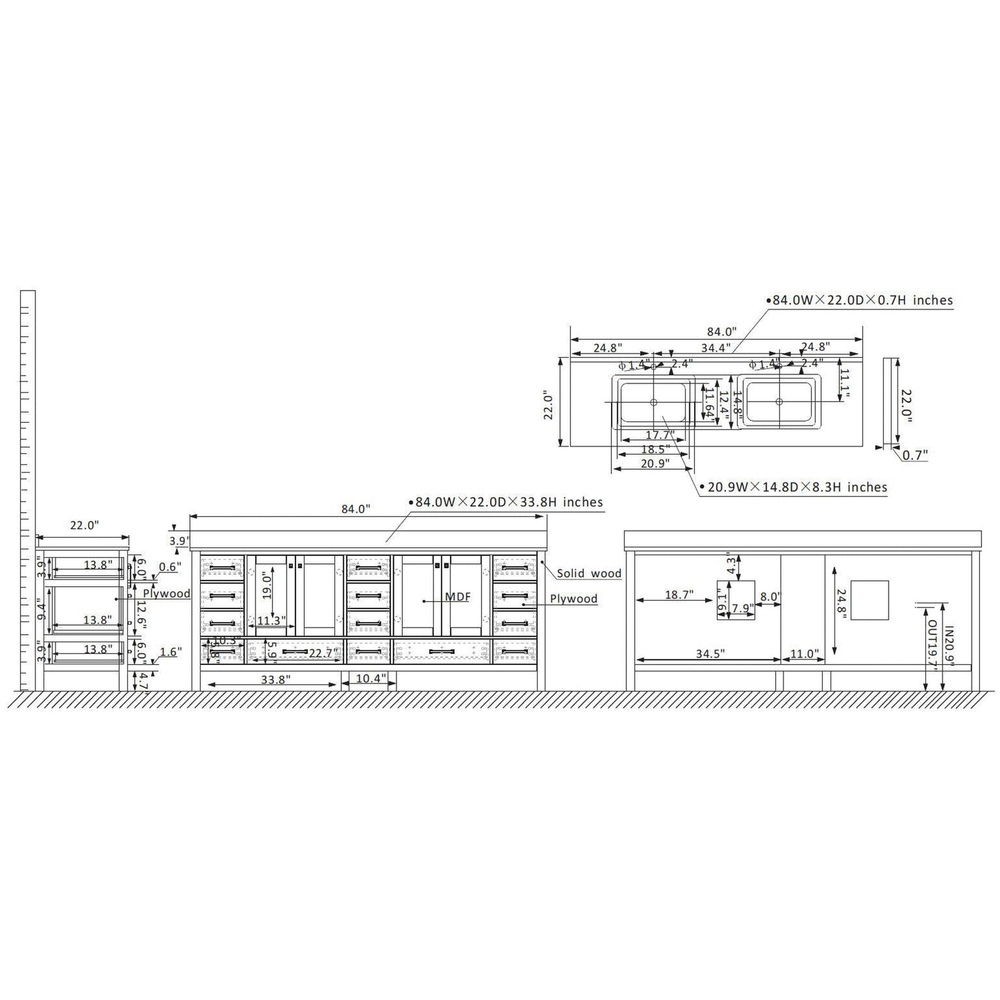 | Cabinet Only Dimensions | H 33.1" x W 83.2" x D 21.6" |