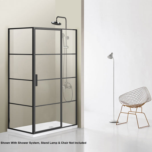 Vinnova Sondrio 60" x 76" Matte Black Rectangle In-line Pivot Door Framed Shower Enclosure With Side panel