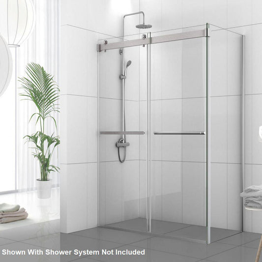 Vinnova Spezia 48" x 76" Brushed Nickel Rectangle Double Sliding Bypass Frameless Shower Enclosure