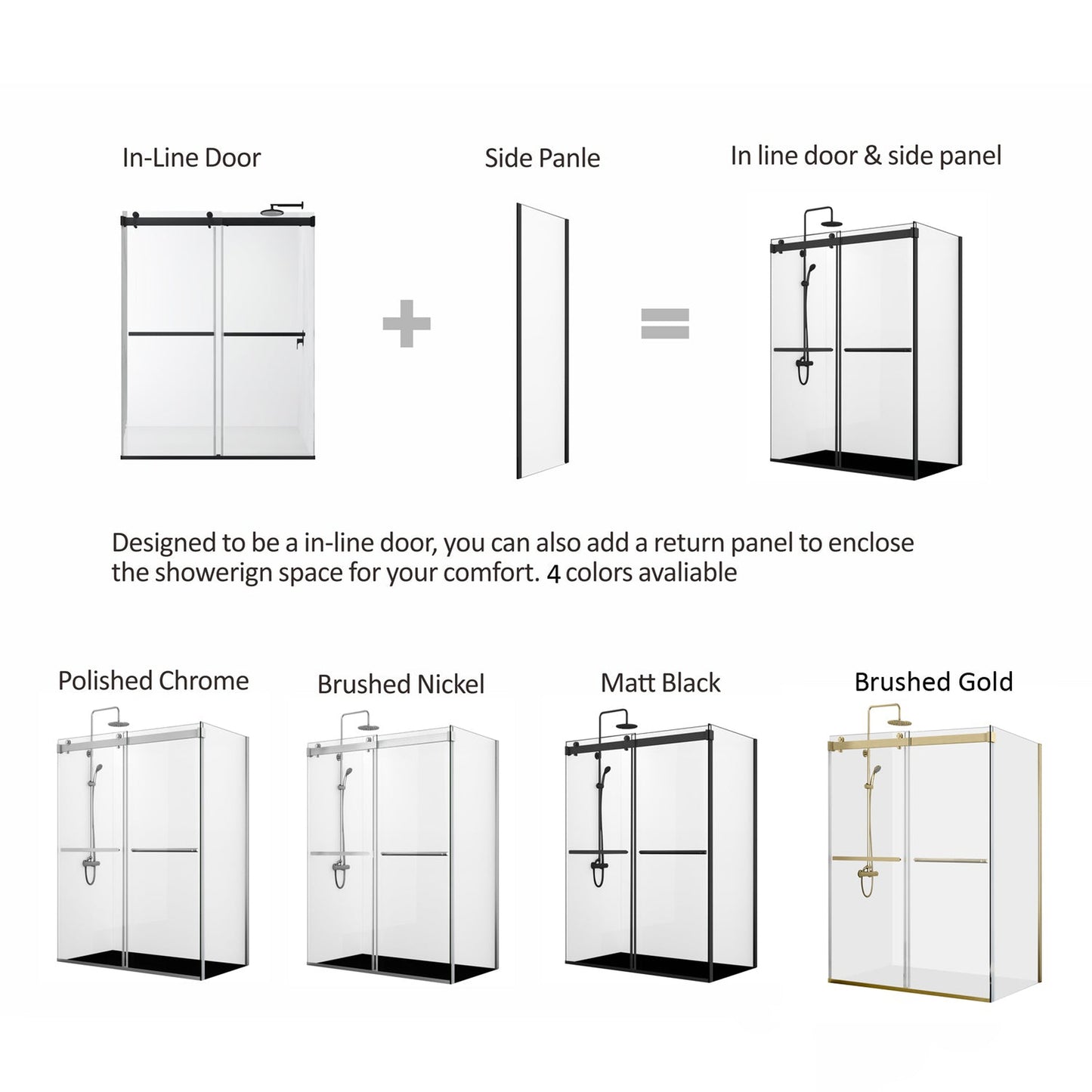 Designed to be an in-line door, you can also add a return panel to enclose the shower space for your comfort. |