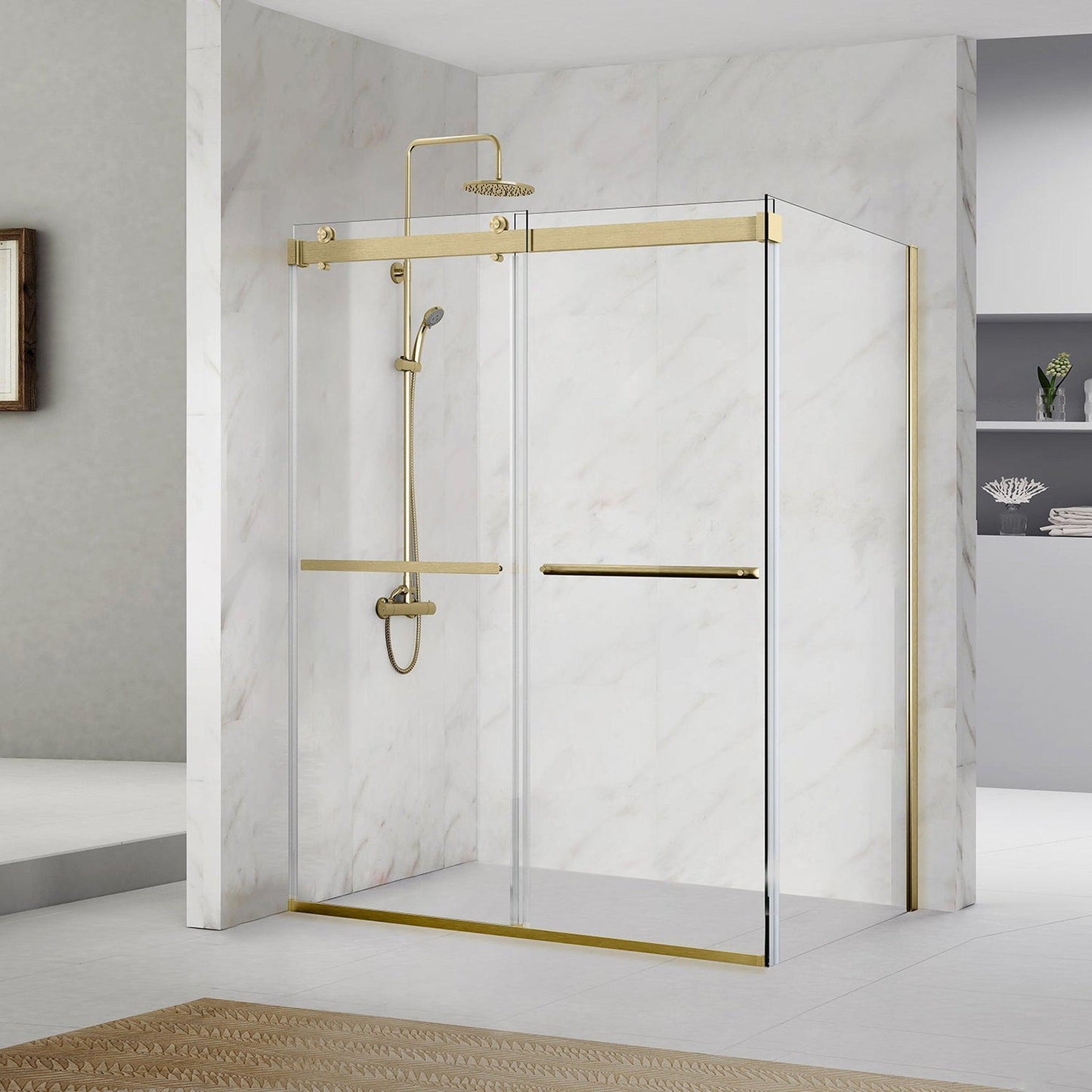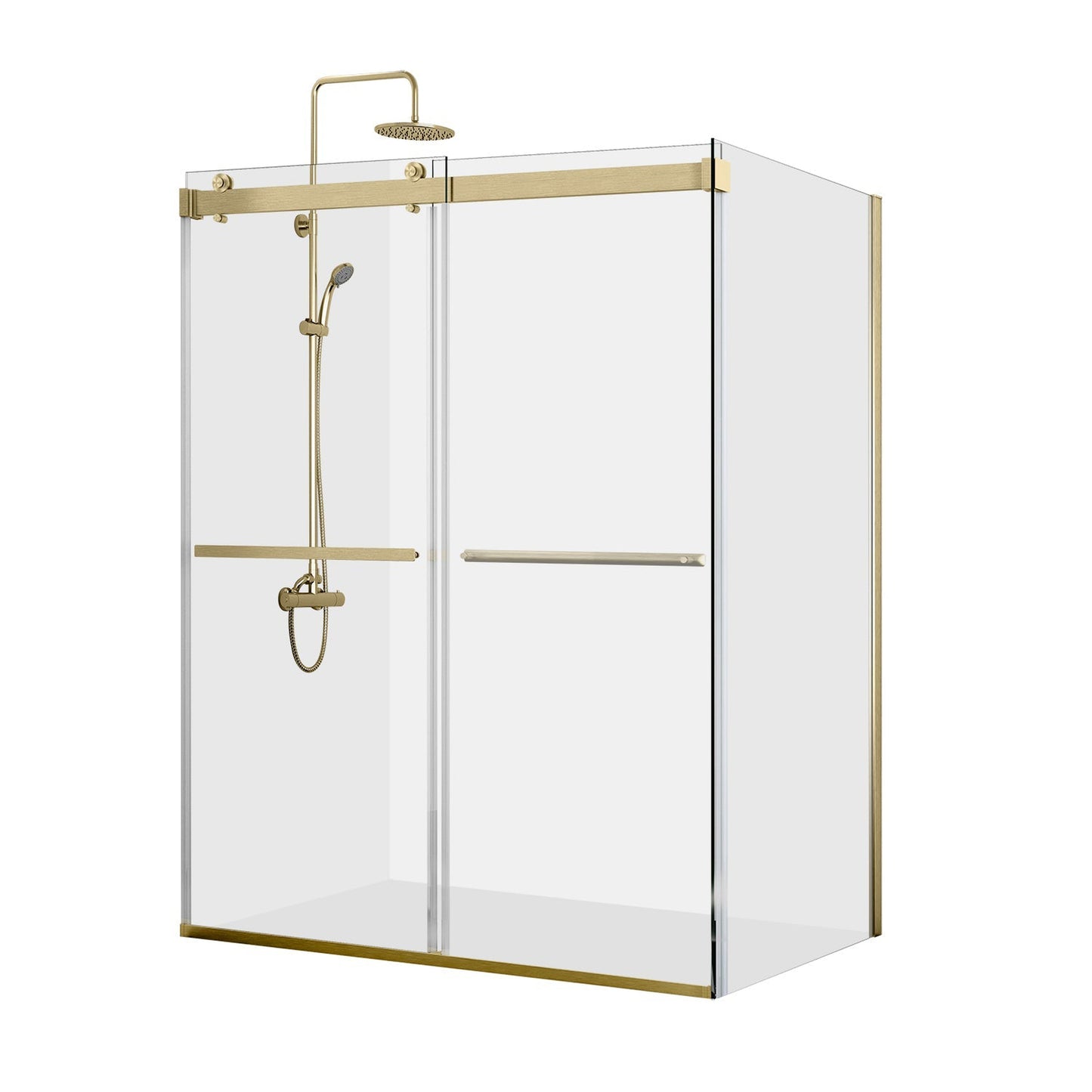 Vinnova Spezia 68" x 76" Rectangle Double Sliding Frameless Shower Enclosure in Brushed Gold Finish
