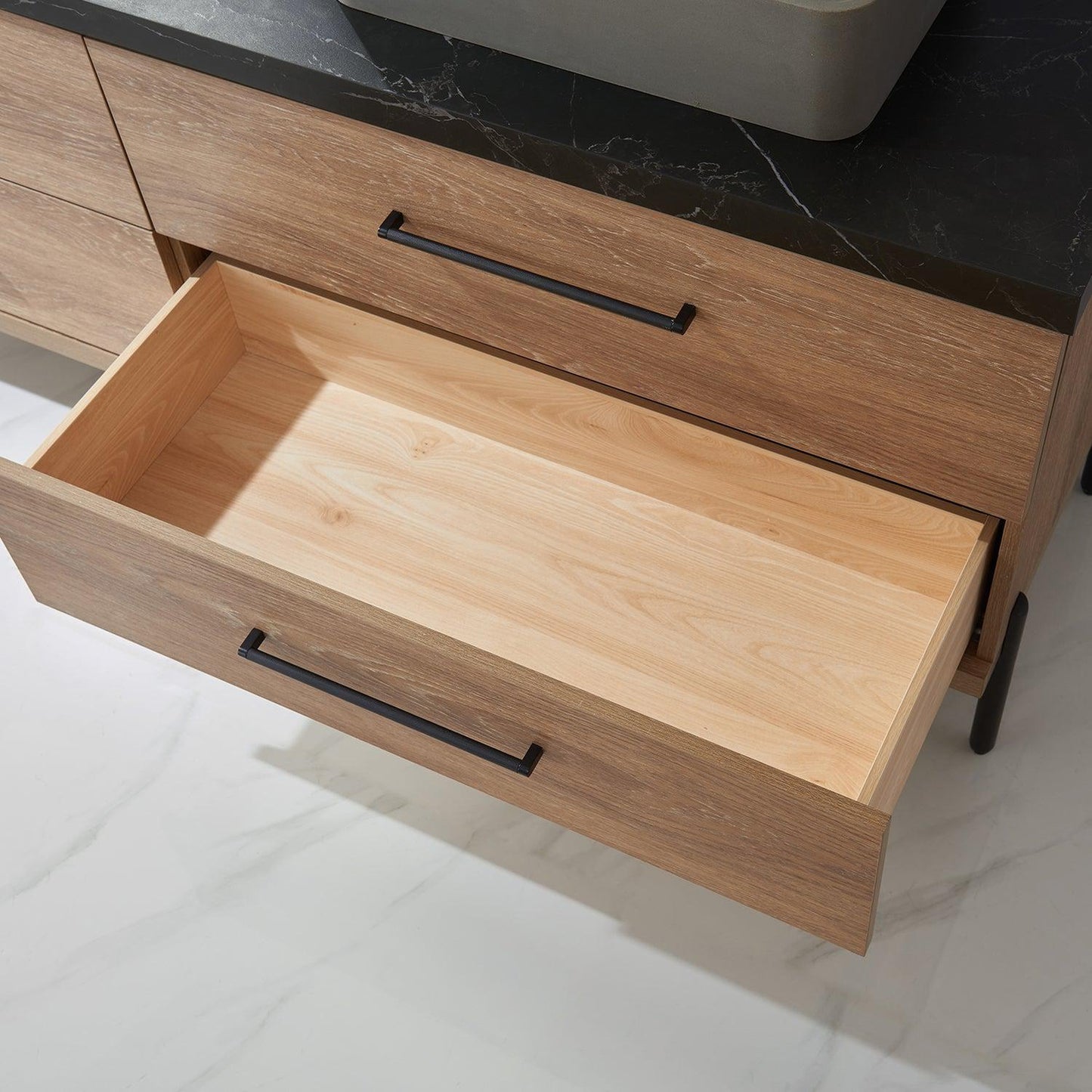 Personalize the look of your vanity with our innovative Trento Series. Featuring an exquisite sintered-stone countertop and concrete vessel sink, this vanity lets you choose the sink style and shape you prefer. You’ll love the blend of concrete, marbled stone, and wood textures, which lend warmth and visual interest to this ensemble. Spacious drawers offer seamless concealed storage for all your guest or master bath toiletries.