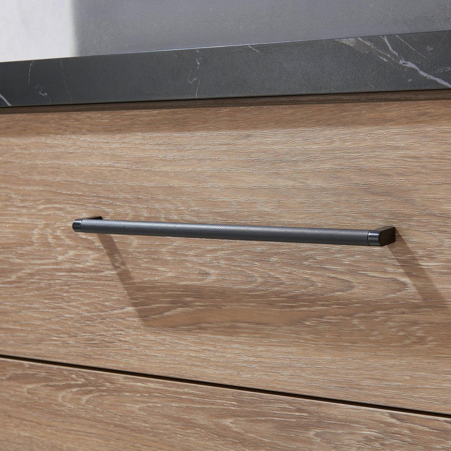 - Matte Black-finish hardware lends a touch of modern style and bold contrast.