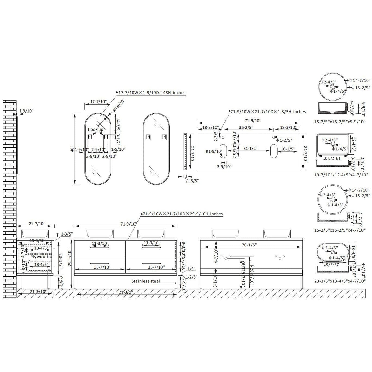 | Cabinet Only Dimensions | H 28.3" x W 71.6" x D 21.3" |