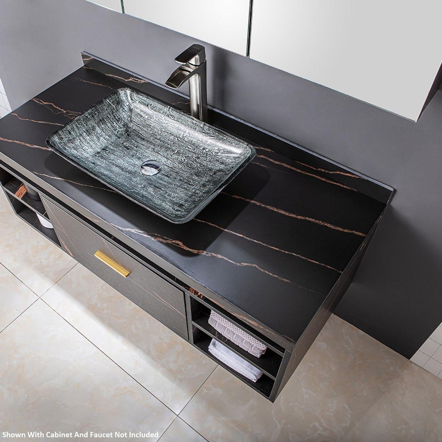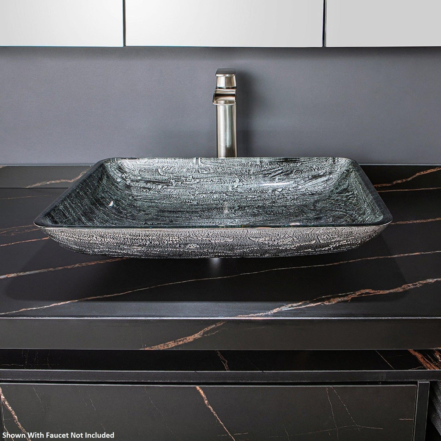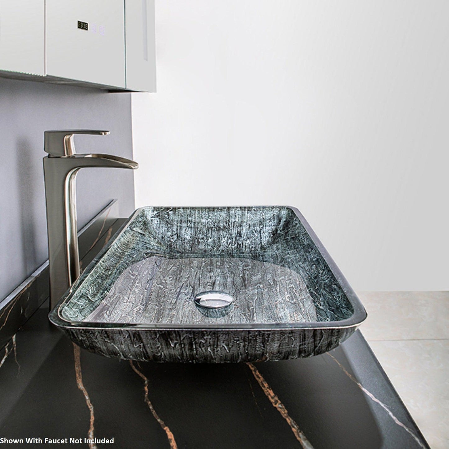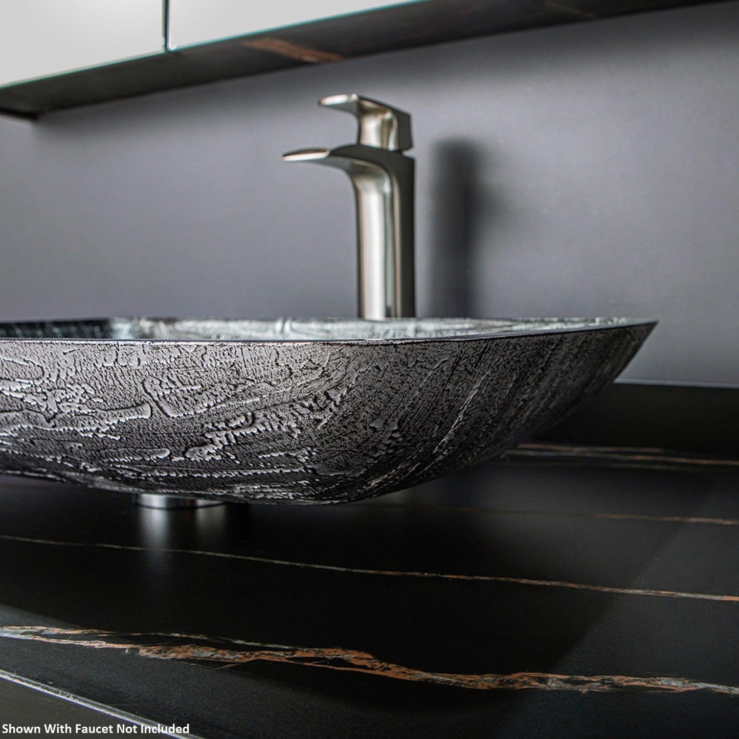 Vinnova Udine 22" Black Tree Bark Rectangular Tempered Glass Painted by Hand Vessel Bathroom Sink Without Faucet