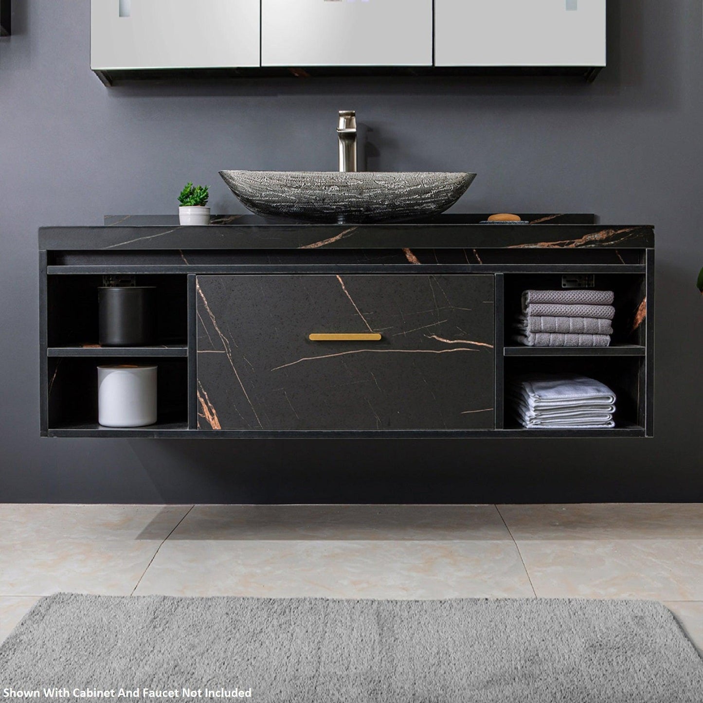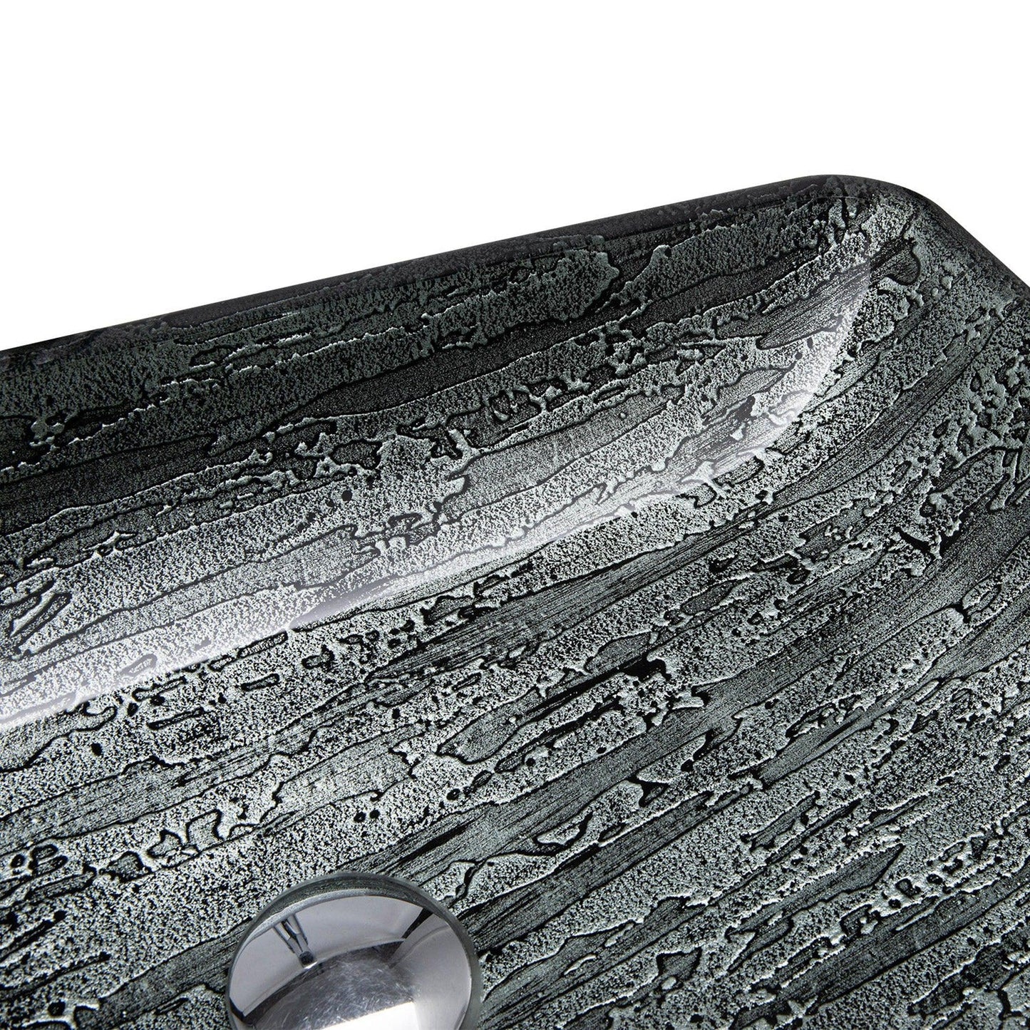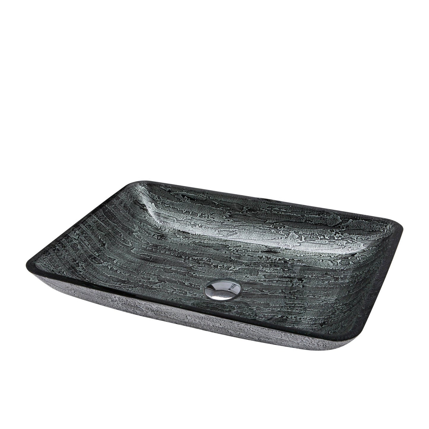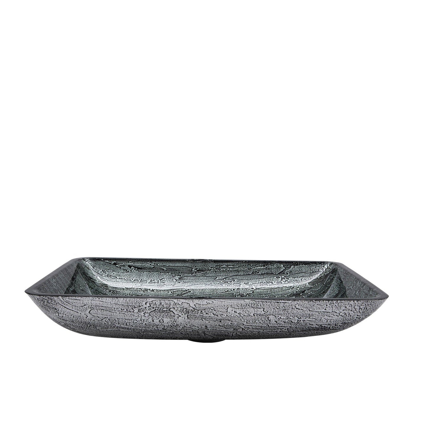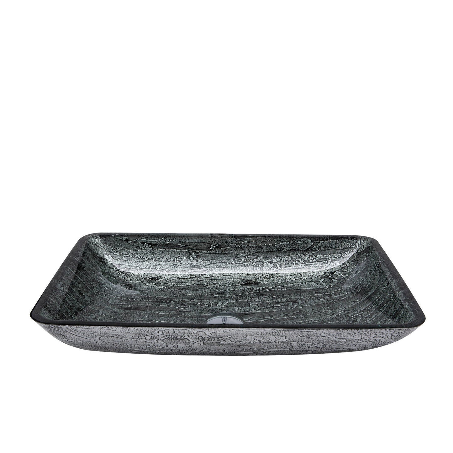 Vinnova Udine 22" Black Tree Bark Rectangular Tempered Glass Painted by Hand Vessel Bathroom Sink Without Faucet