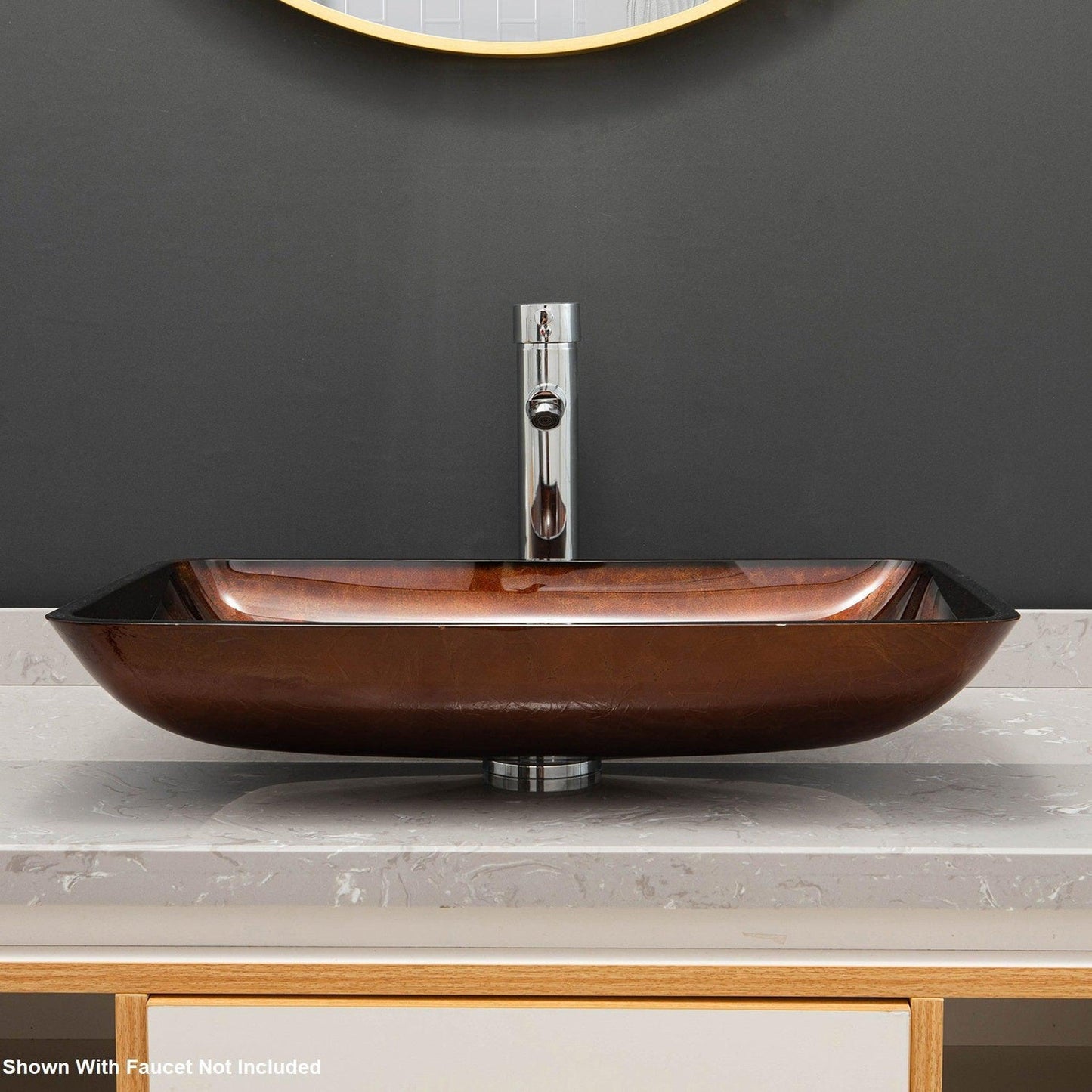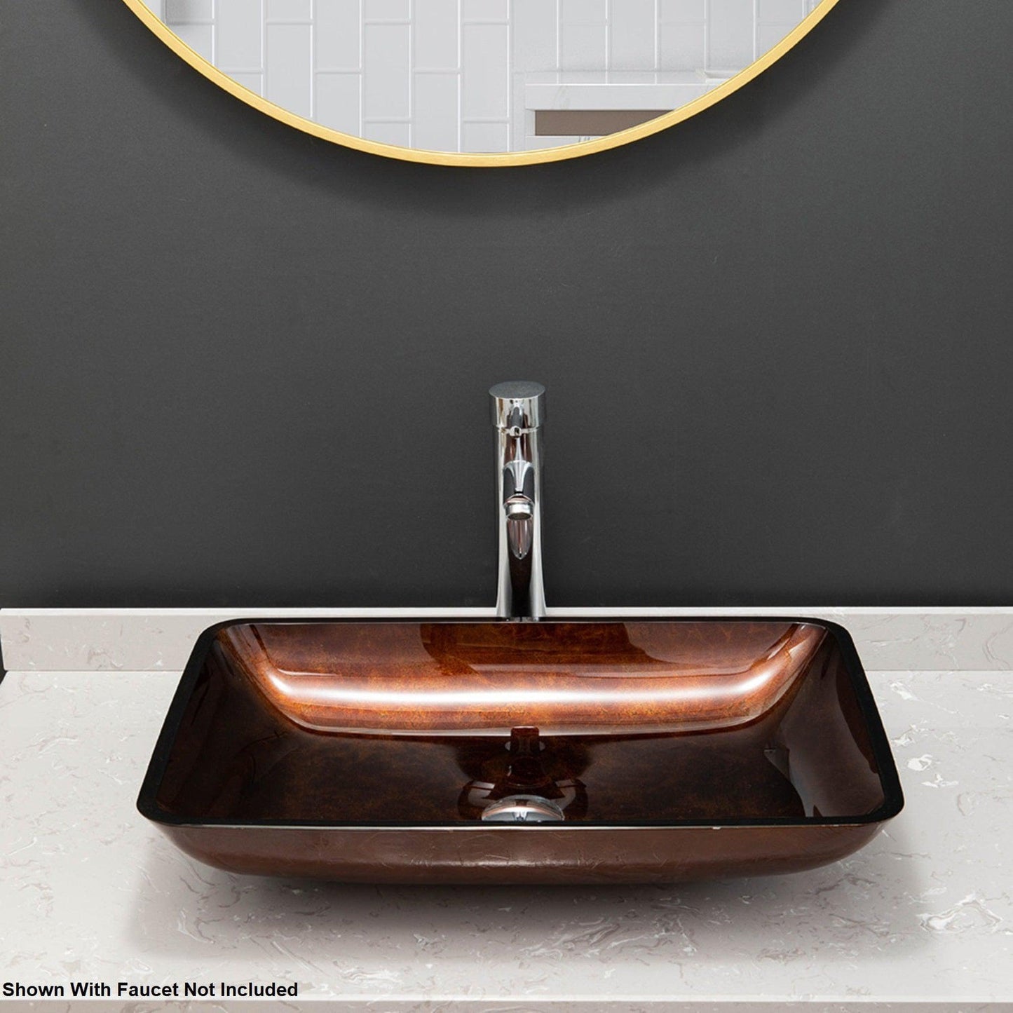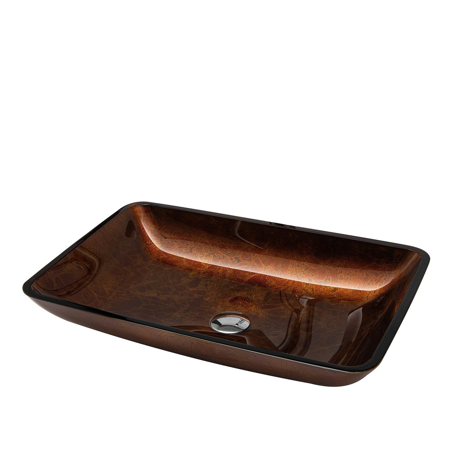Vinnova Udine 22" Reddish Brown Rectangular Tempered Glass Painted by Hand Vessel Bathroom Sink Without Faucet