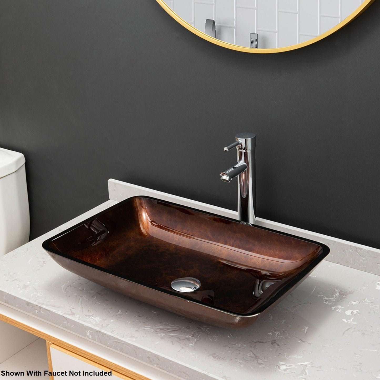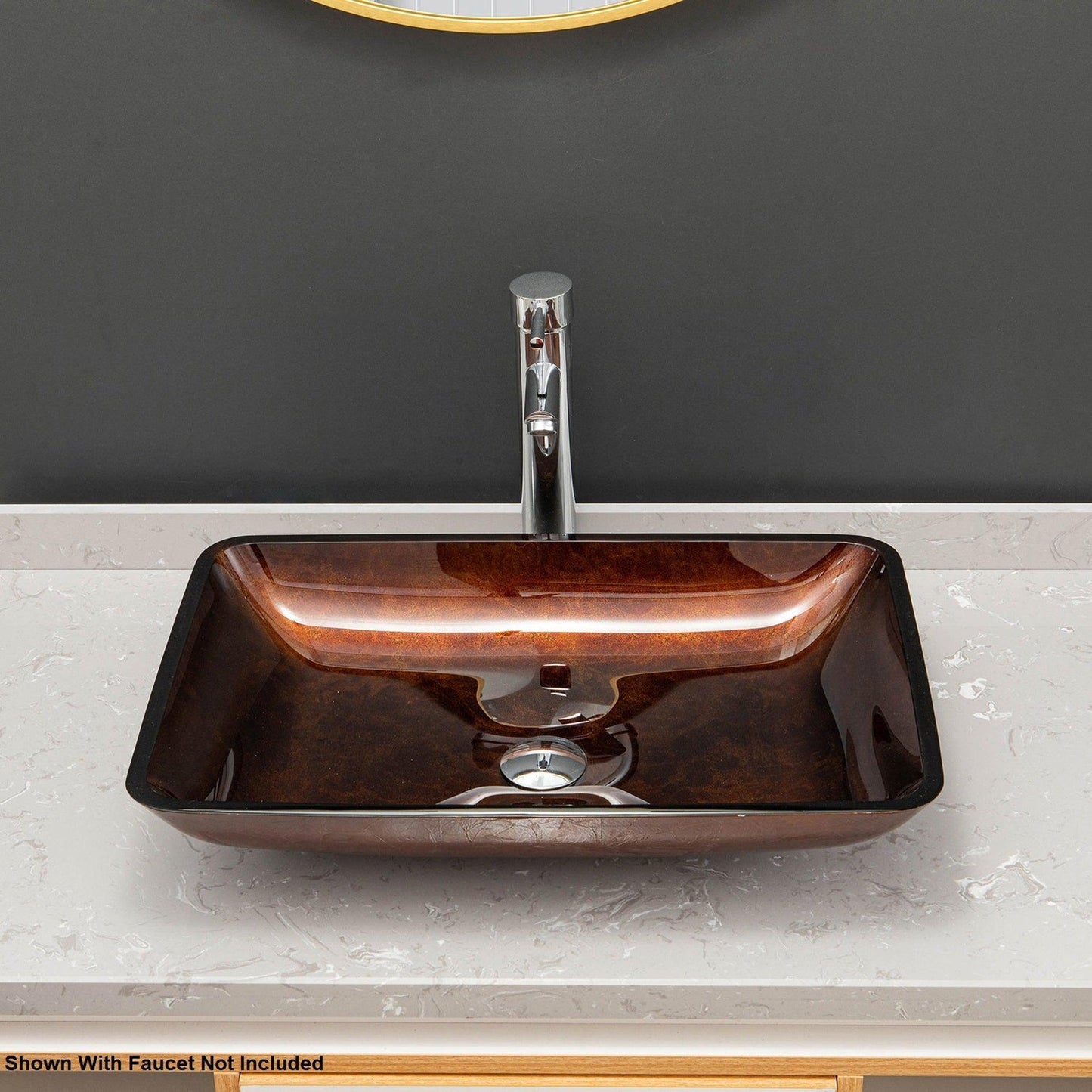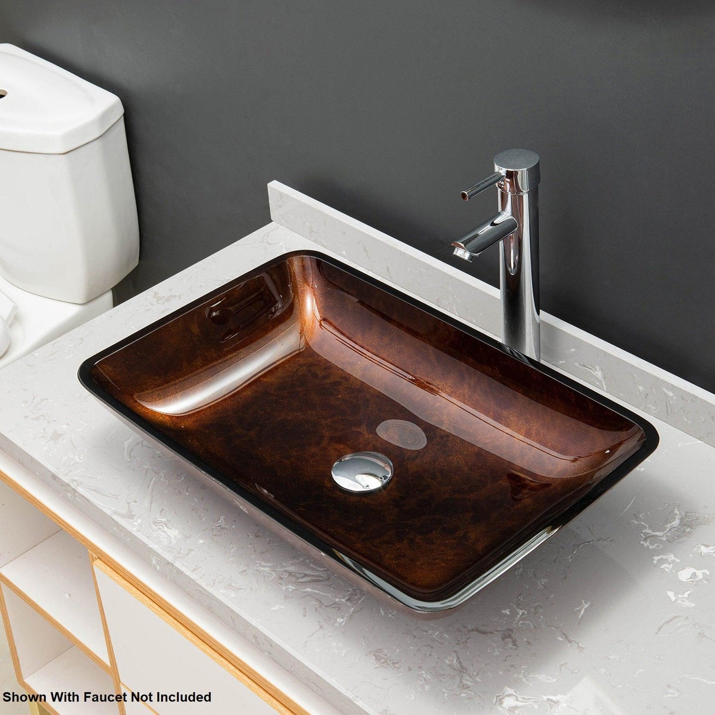 Vinnova Udine 22" Reddish Brown Rectangular Tempered Glass Painted by Hand Vessel Bathroom Sink Without Faucet