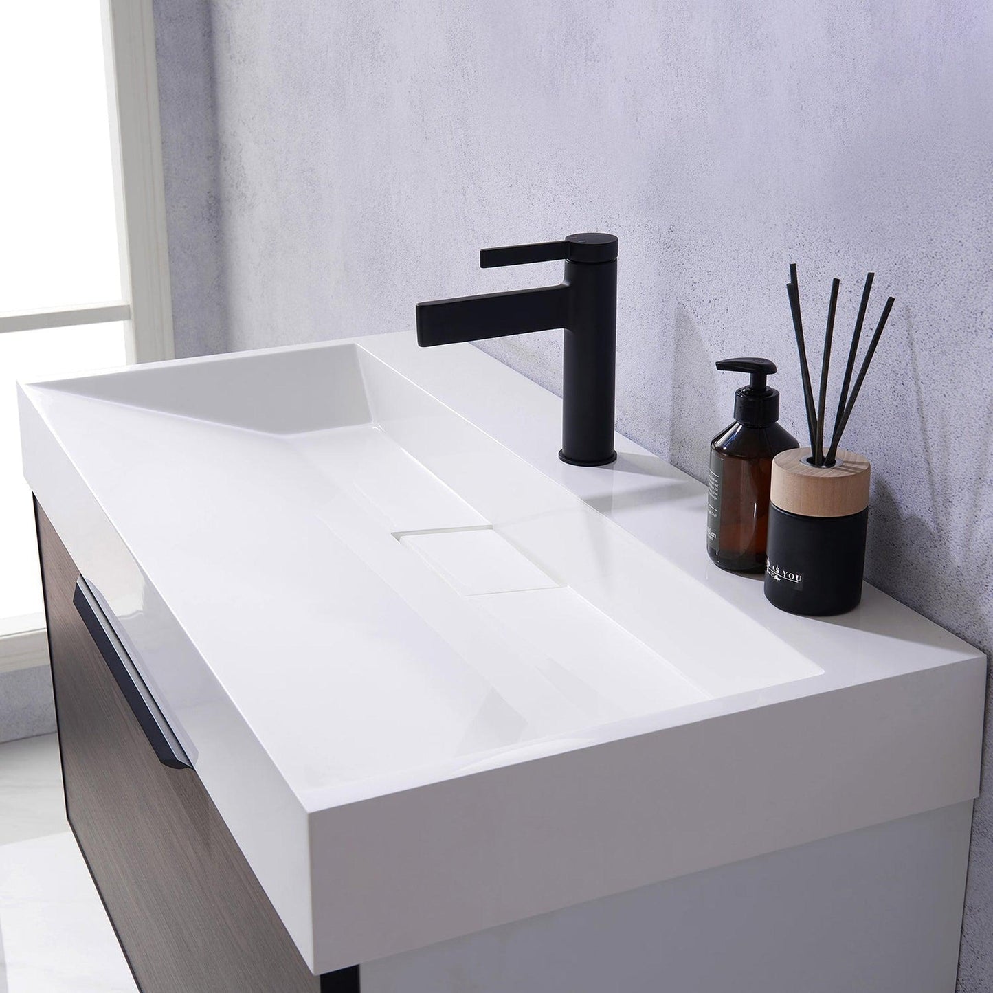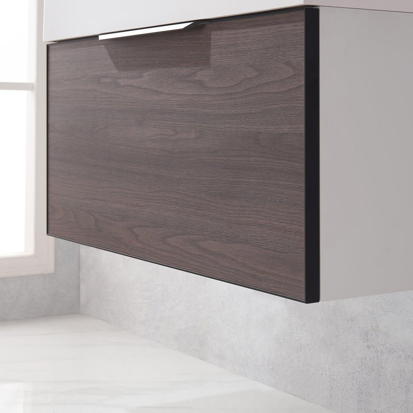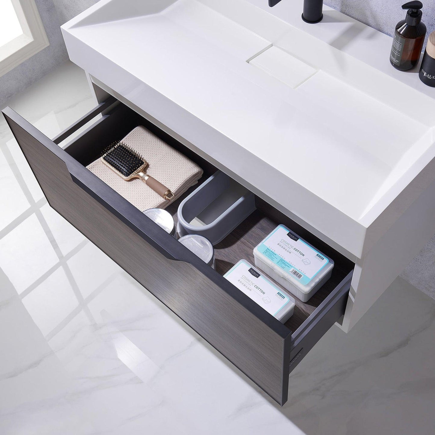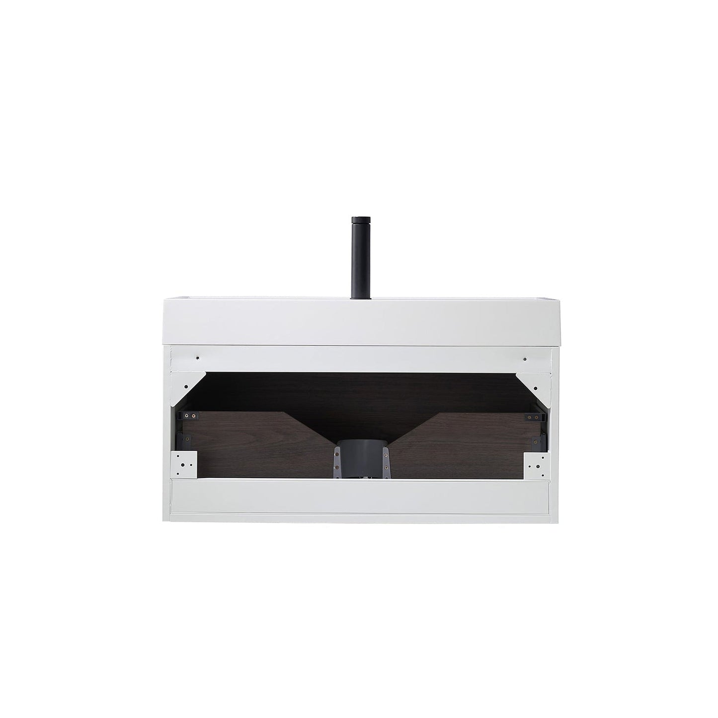 - Floating bathroom vanity (without back panel) comes partially assembled for your convenience.