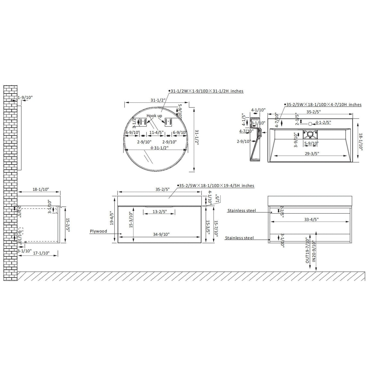 | Cabinet Only Dimensions | H 15.7" x W 35.2" x D 17.9" |