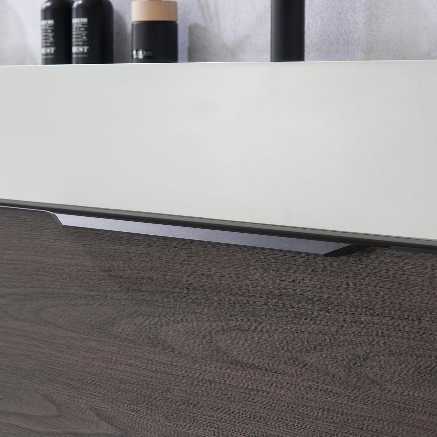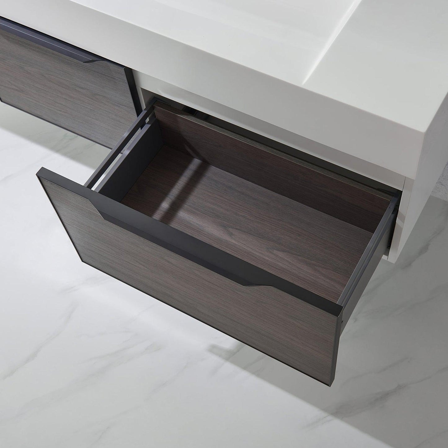 - Floating bathroom vanity (without back panel) comes partially assembled for your convenience.