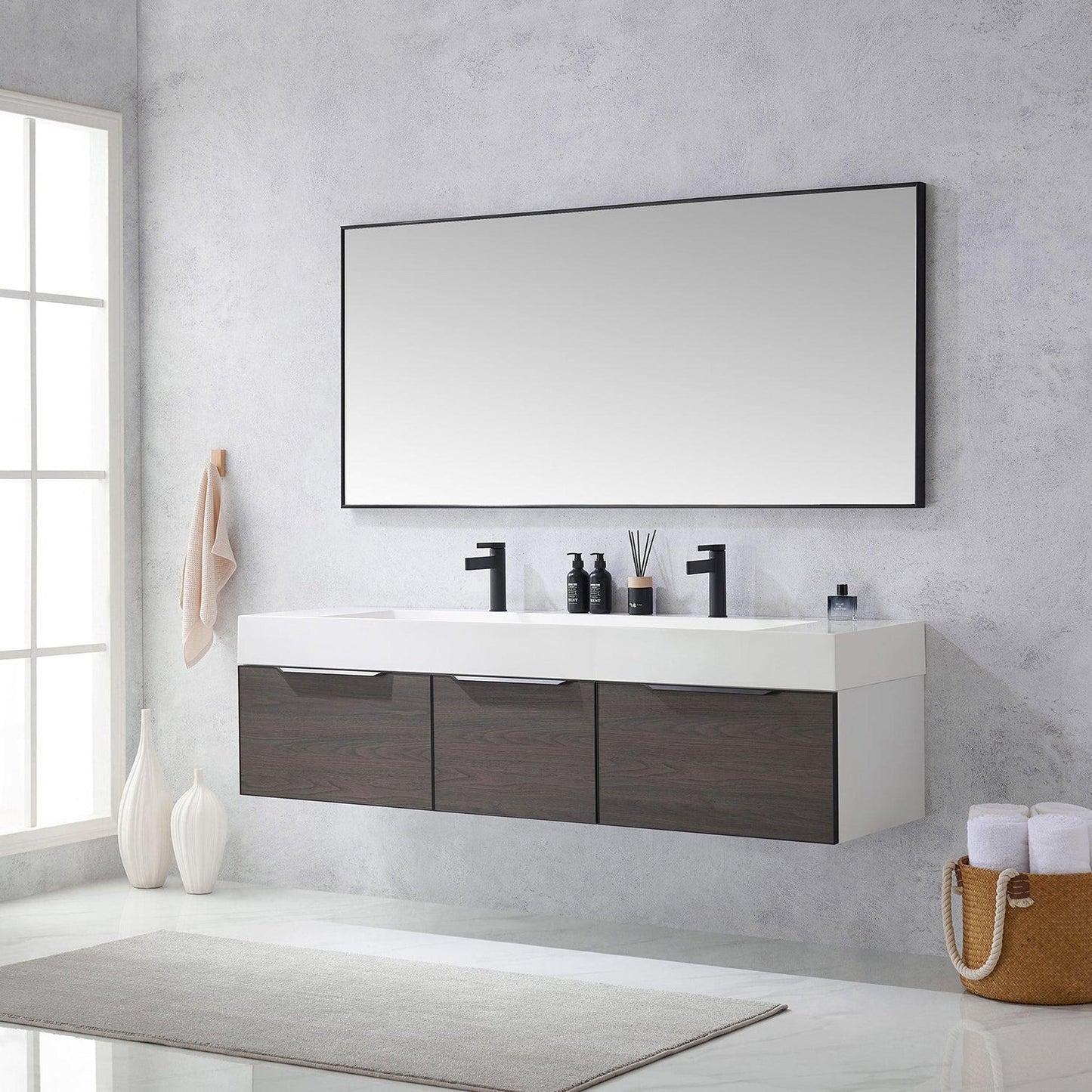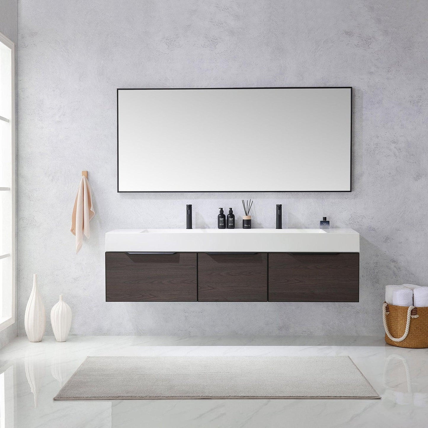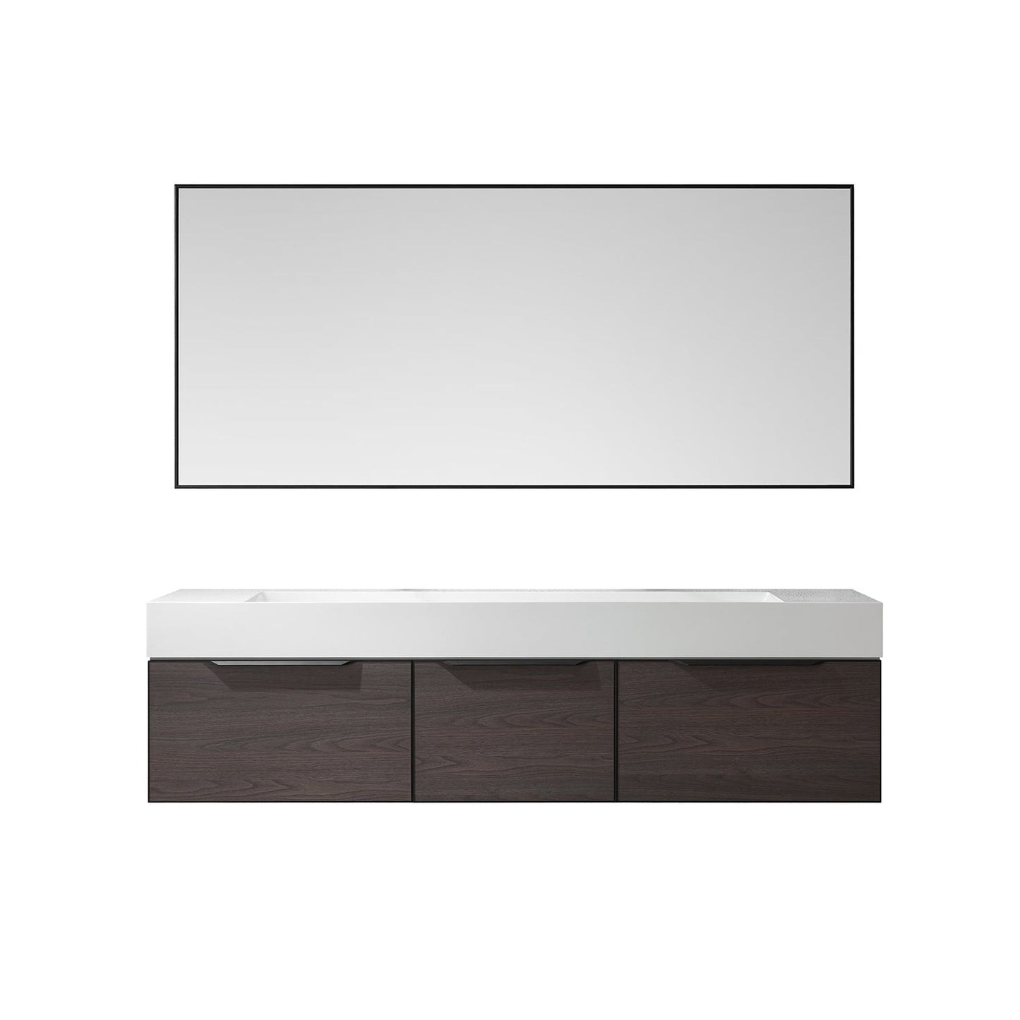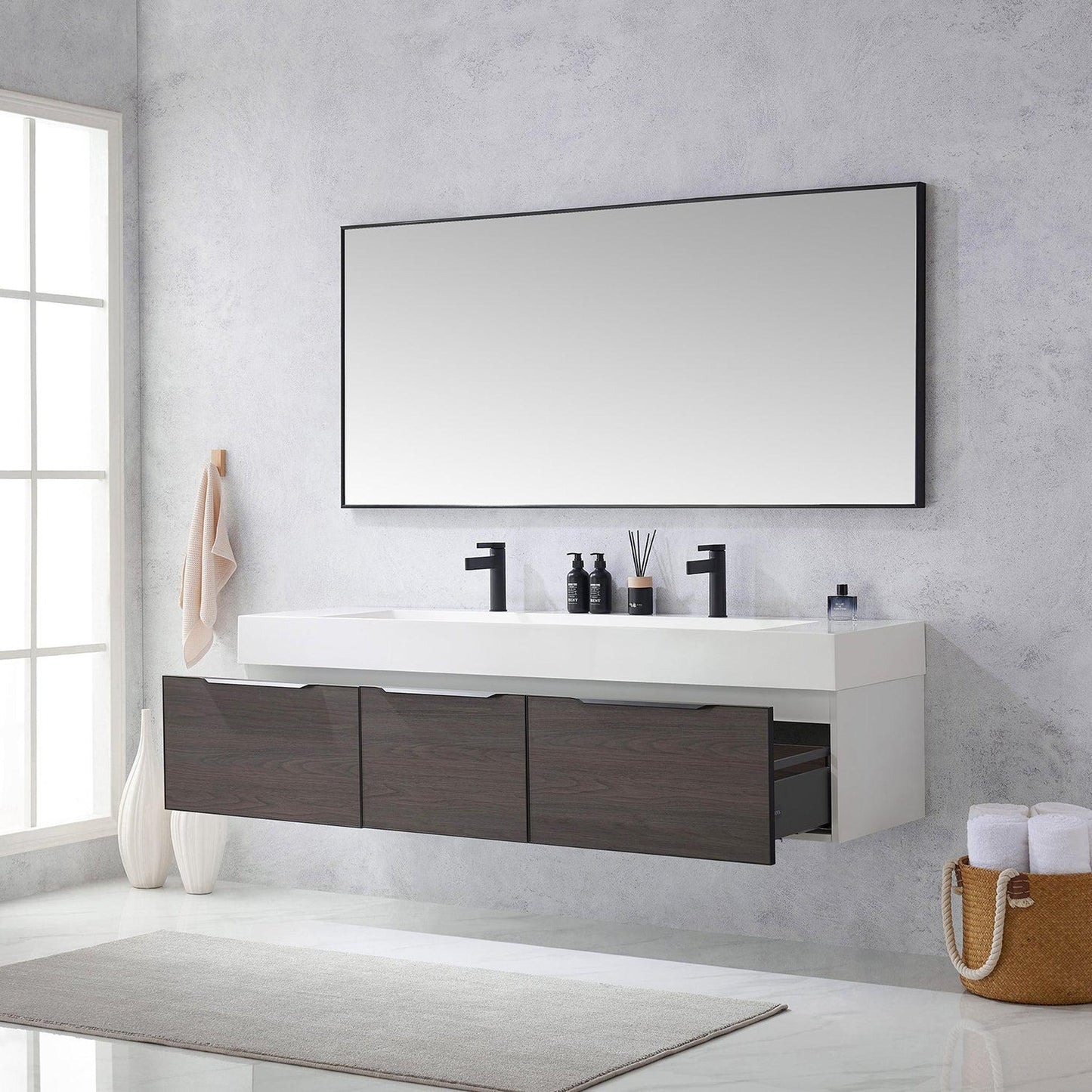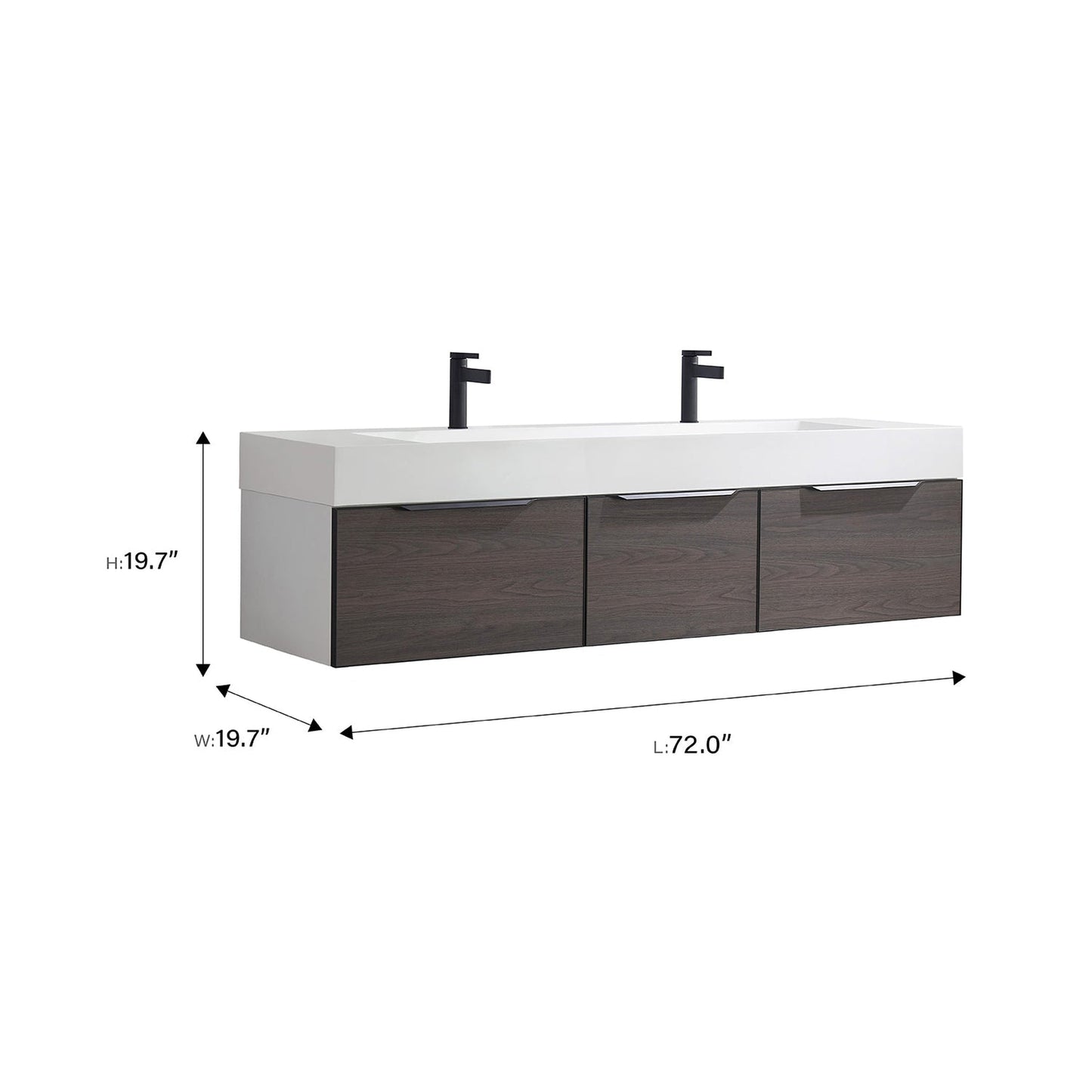 Vinnova Vegadeo 72" Double Sink Bath Vanity In Suleiman Oak Finish With White One-Piece Composite Stone Sink Top And Mirror
