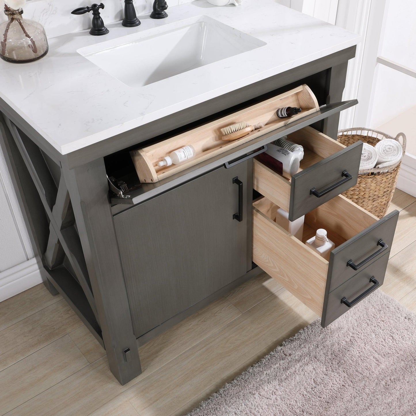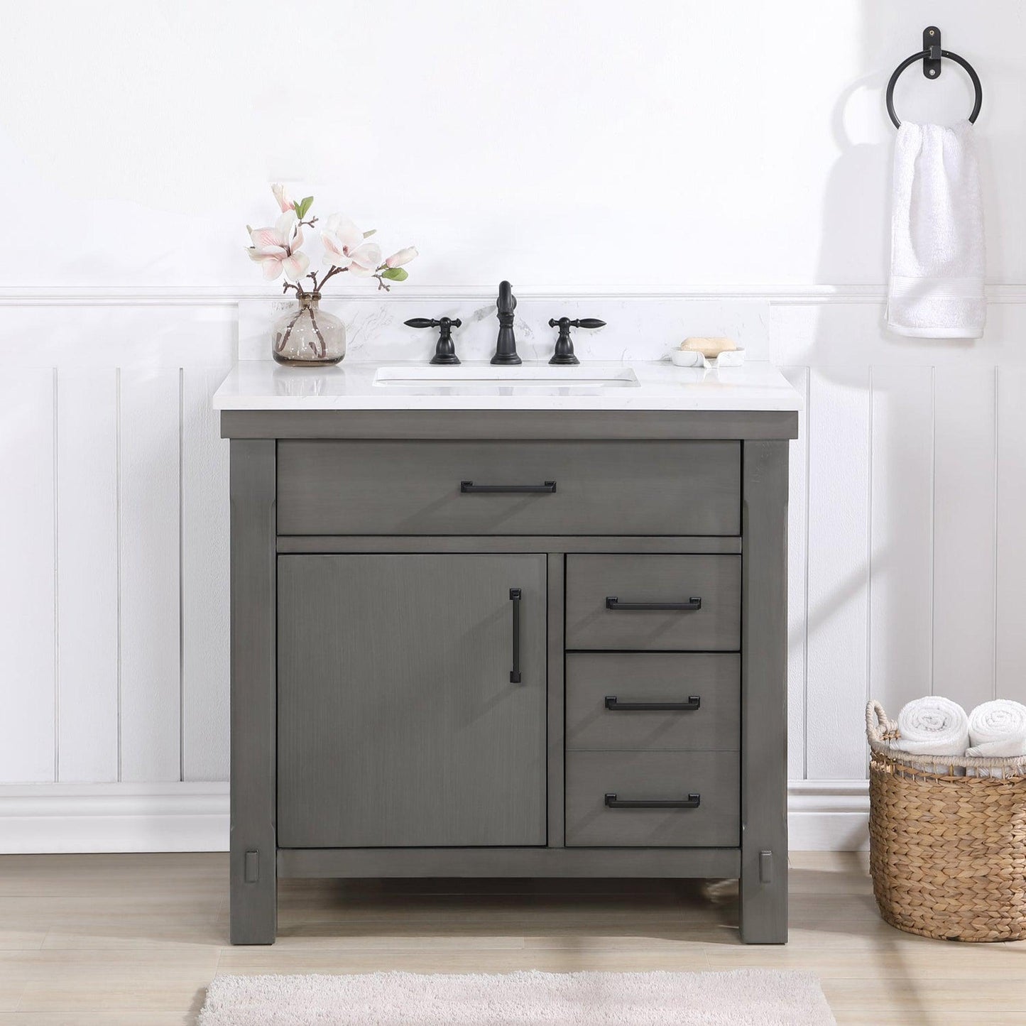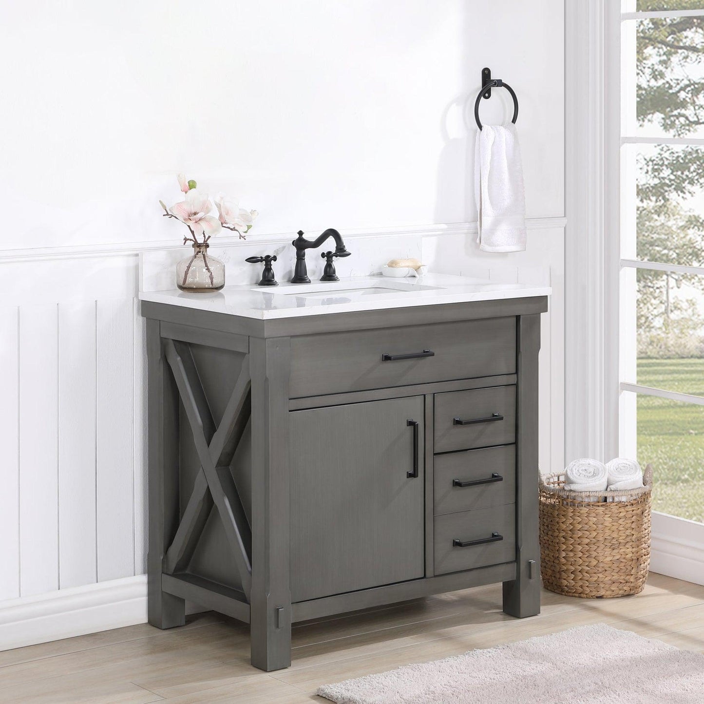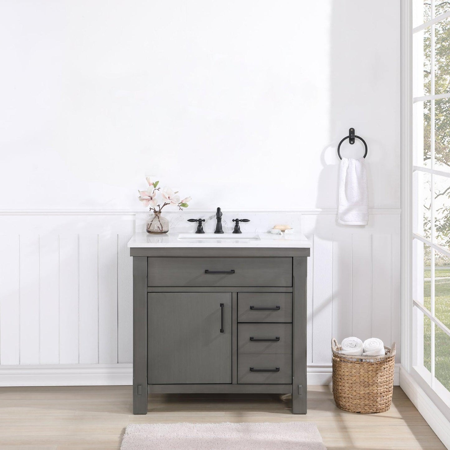 Vinnova Viella 36" Single Sink Bath Vanity In Rust Grey Finish With White Composite Countertop