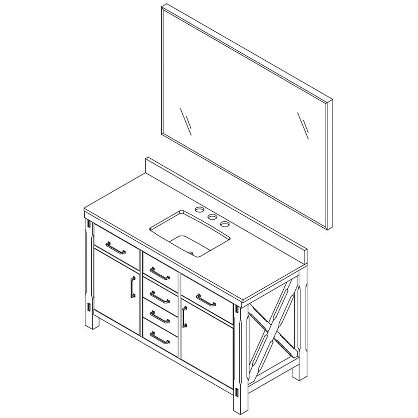 - Single, rectangular mirror coordinates perfectly with vanity.
