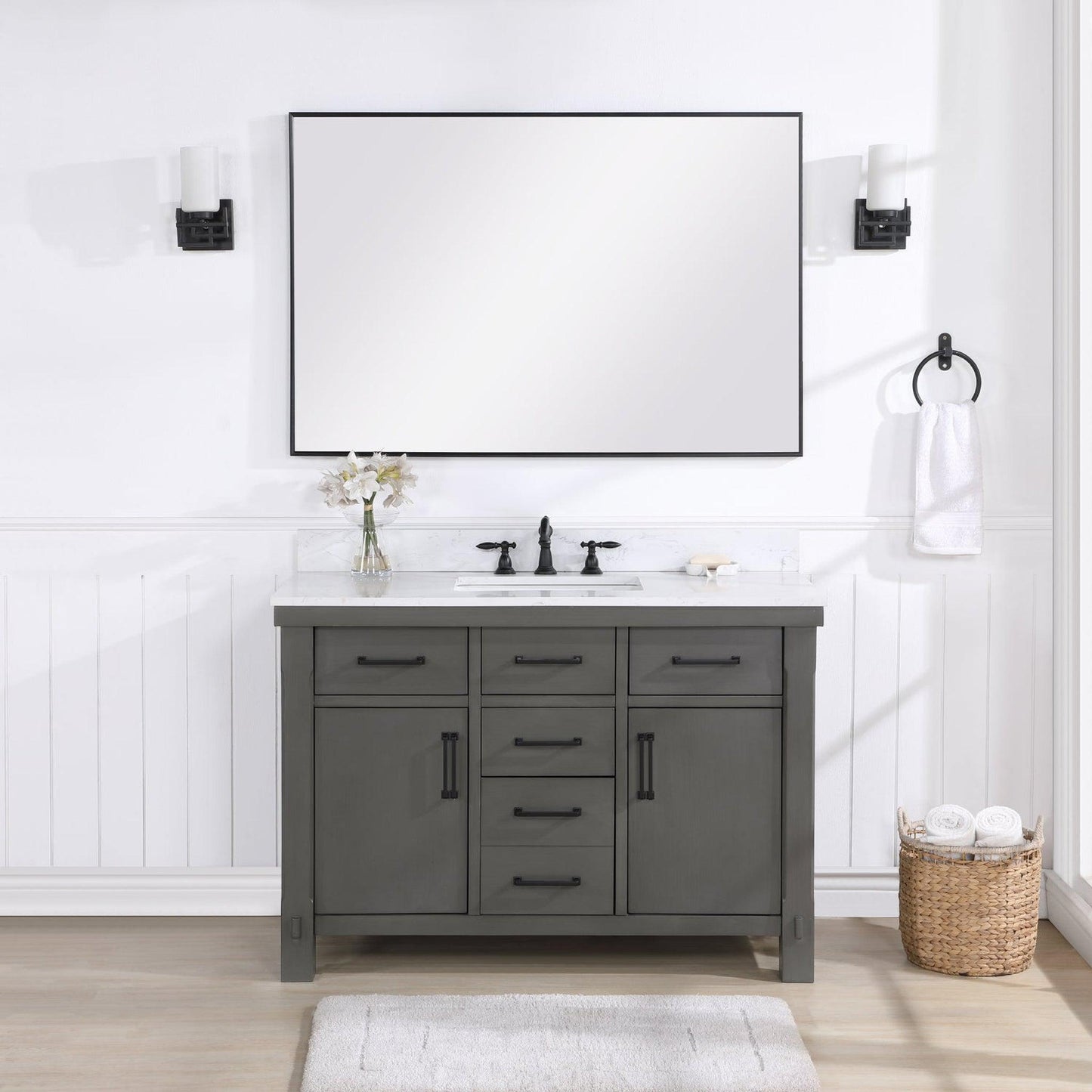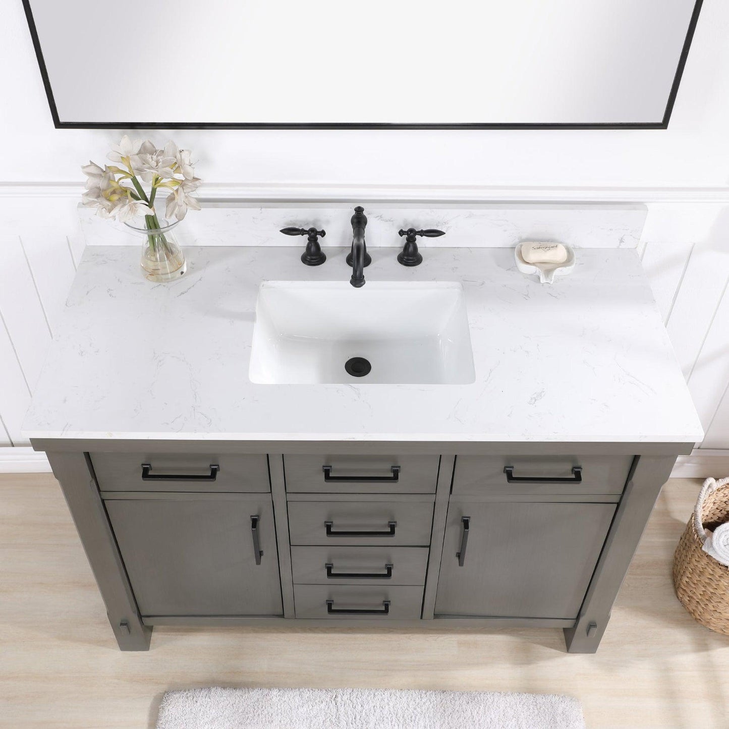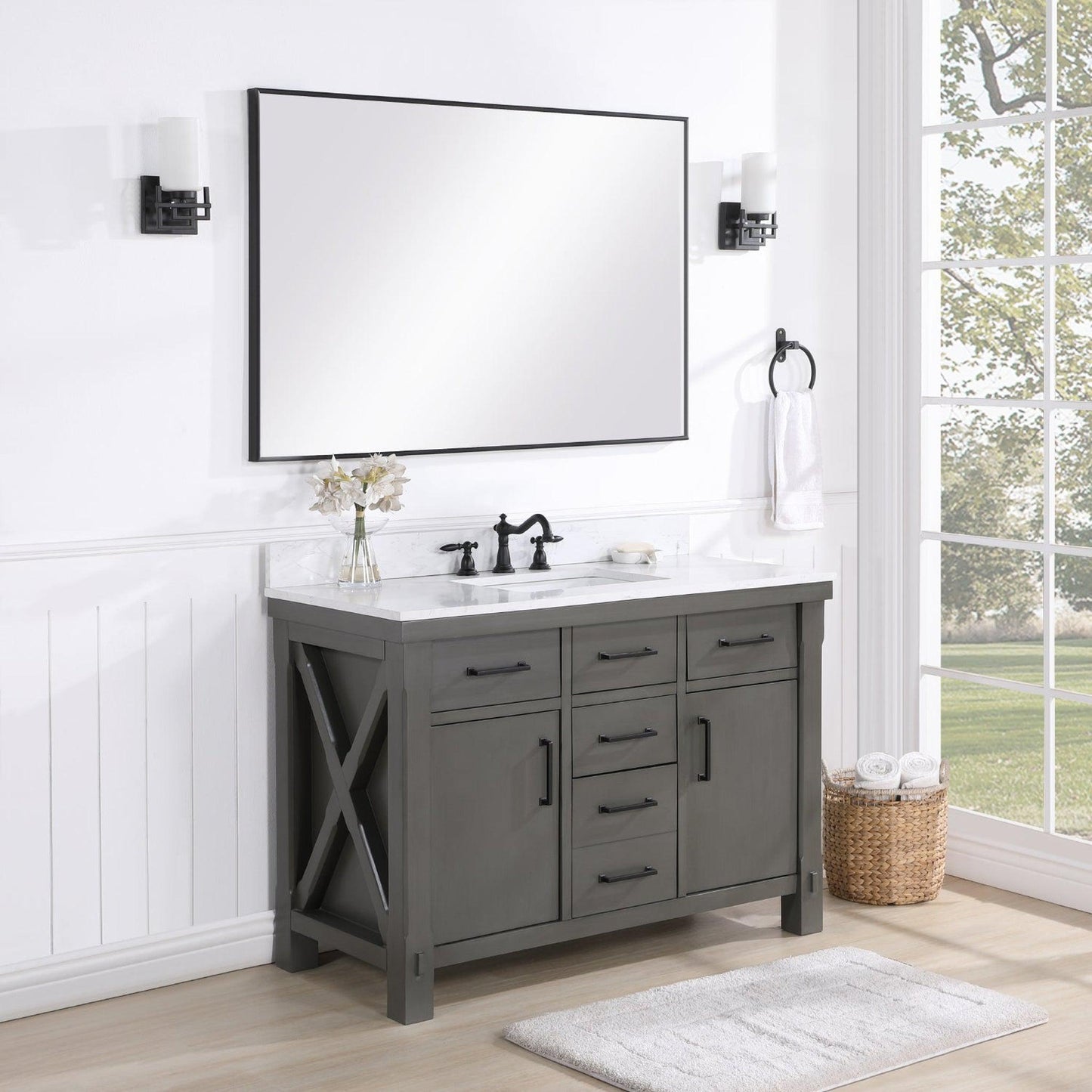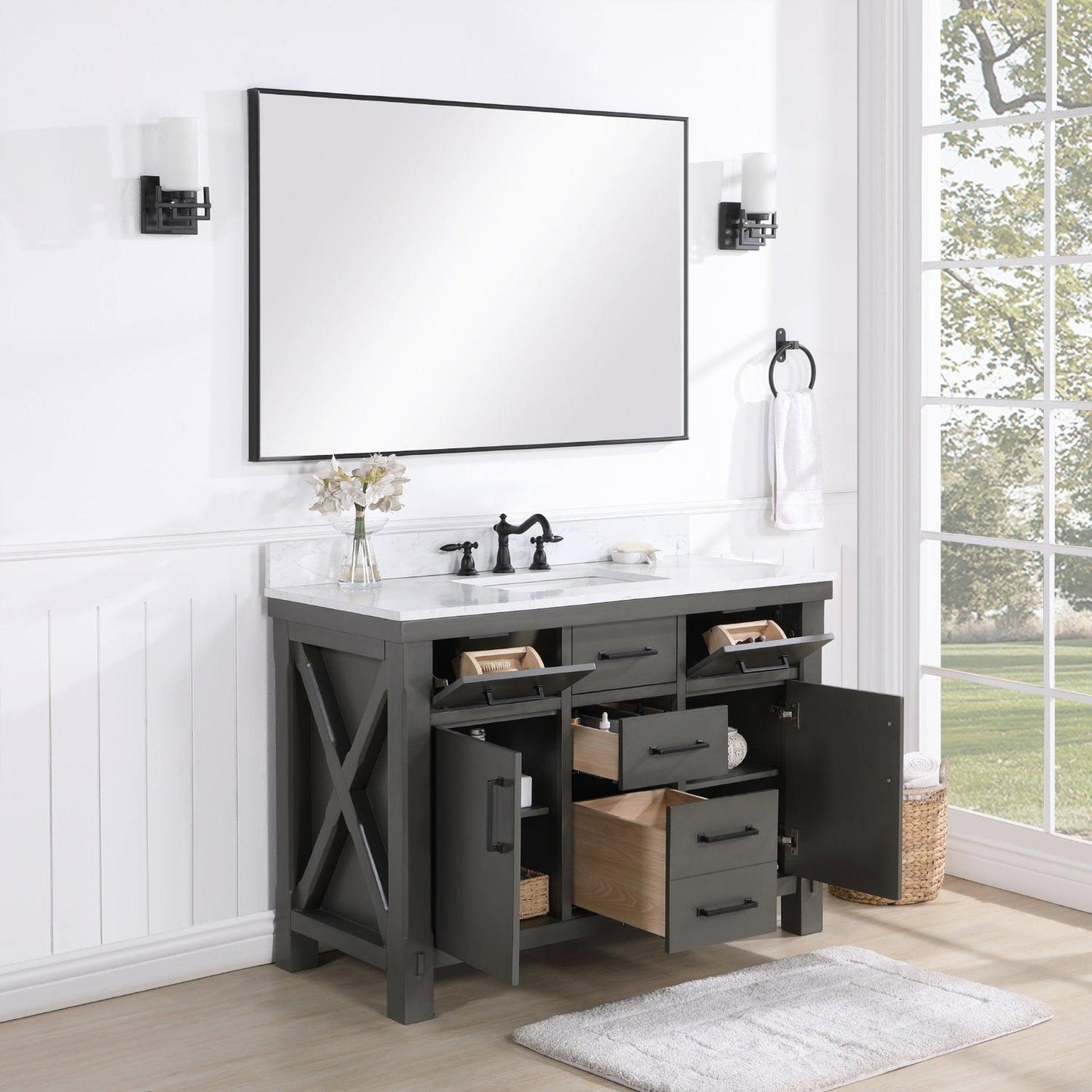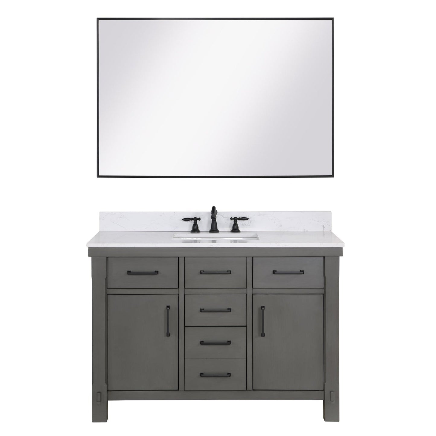 Vinnova Viella 48" Single Sink Bath Vanity In Rust Grey Finish With White Composite Countertop And Mirror