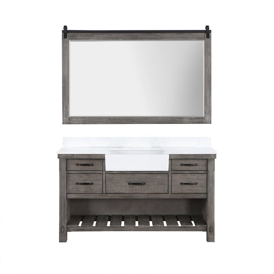 Vinnova Villareal 60" Single Bath Vanity In Classical Grey With Composite Stone Top In White Finish And White Farmhouse Basin And Mirror