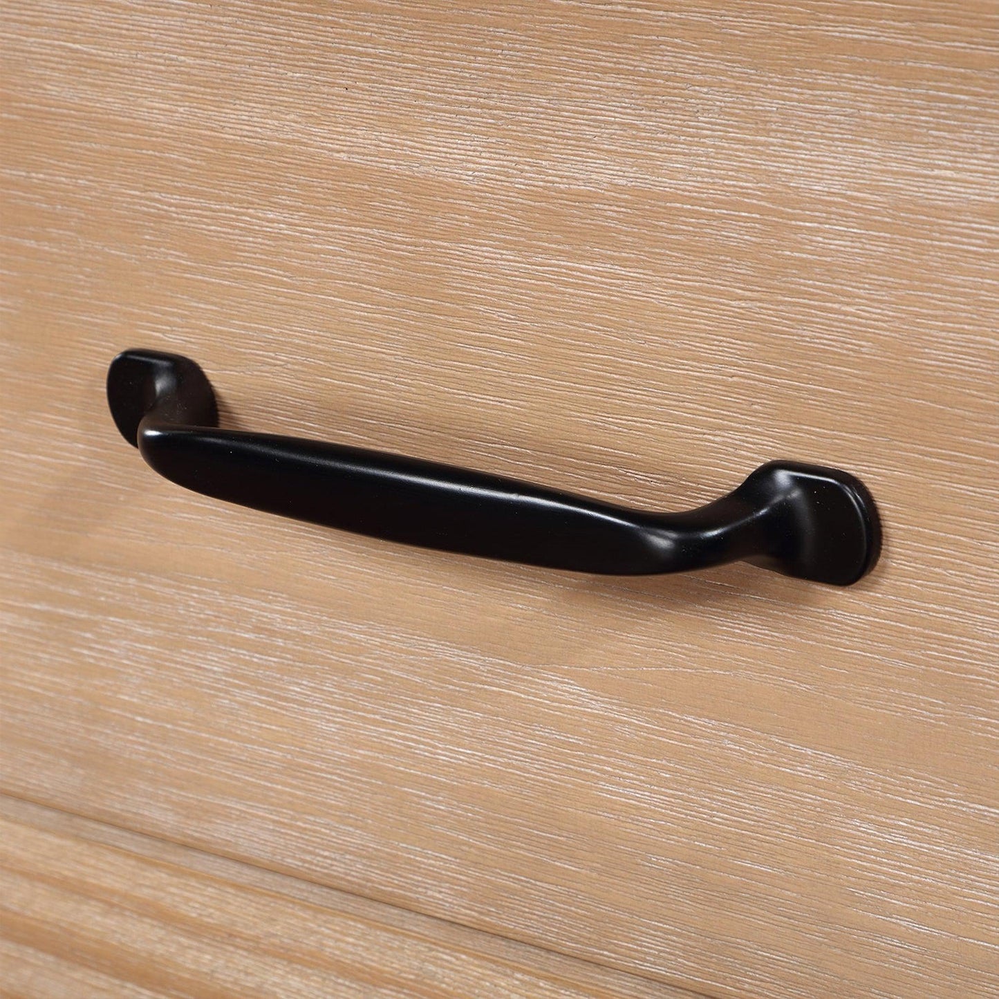 - Matte Black-finish hardware adds a touch of classic style and stunning contrast against the textured wood.