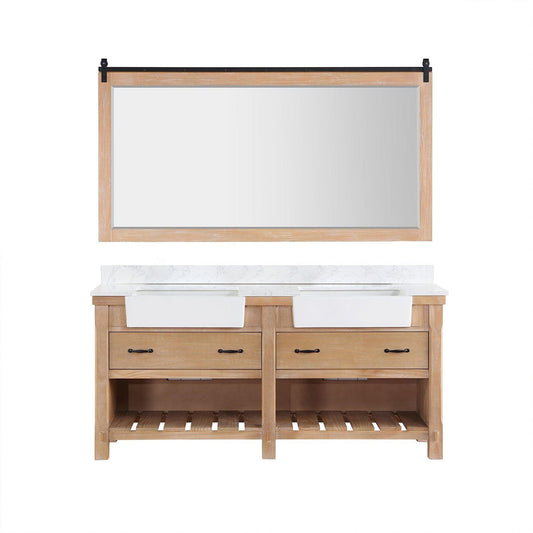 Vinnova Villareal 72" Double Bath Vanity In Weathered Pine With Composite Stone Top In White Finish And White Farmhouse Basin And Mirror