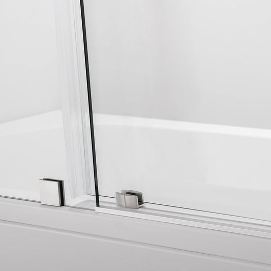 Vinnova Villena 60" x 58" Single Sliding Frameless Tub Door in Brushed Nickel Finish