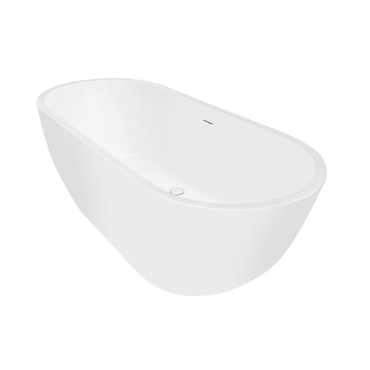 Vinnova Zamora 65" x 30" White Oval Freestanding Soaking Acrylic Bathtub