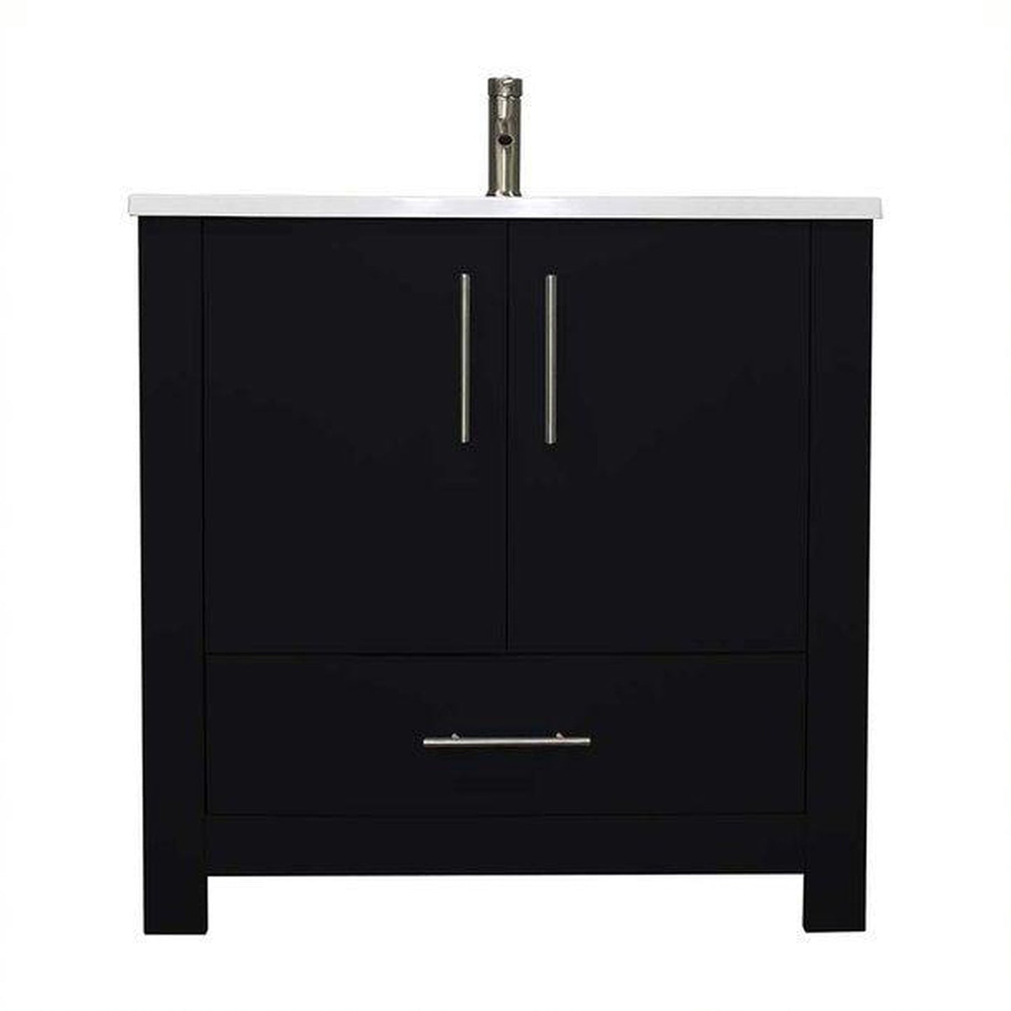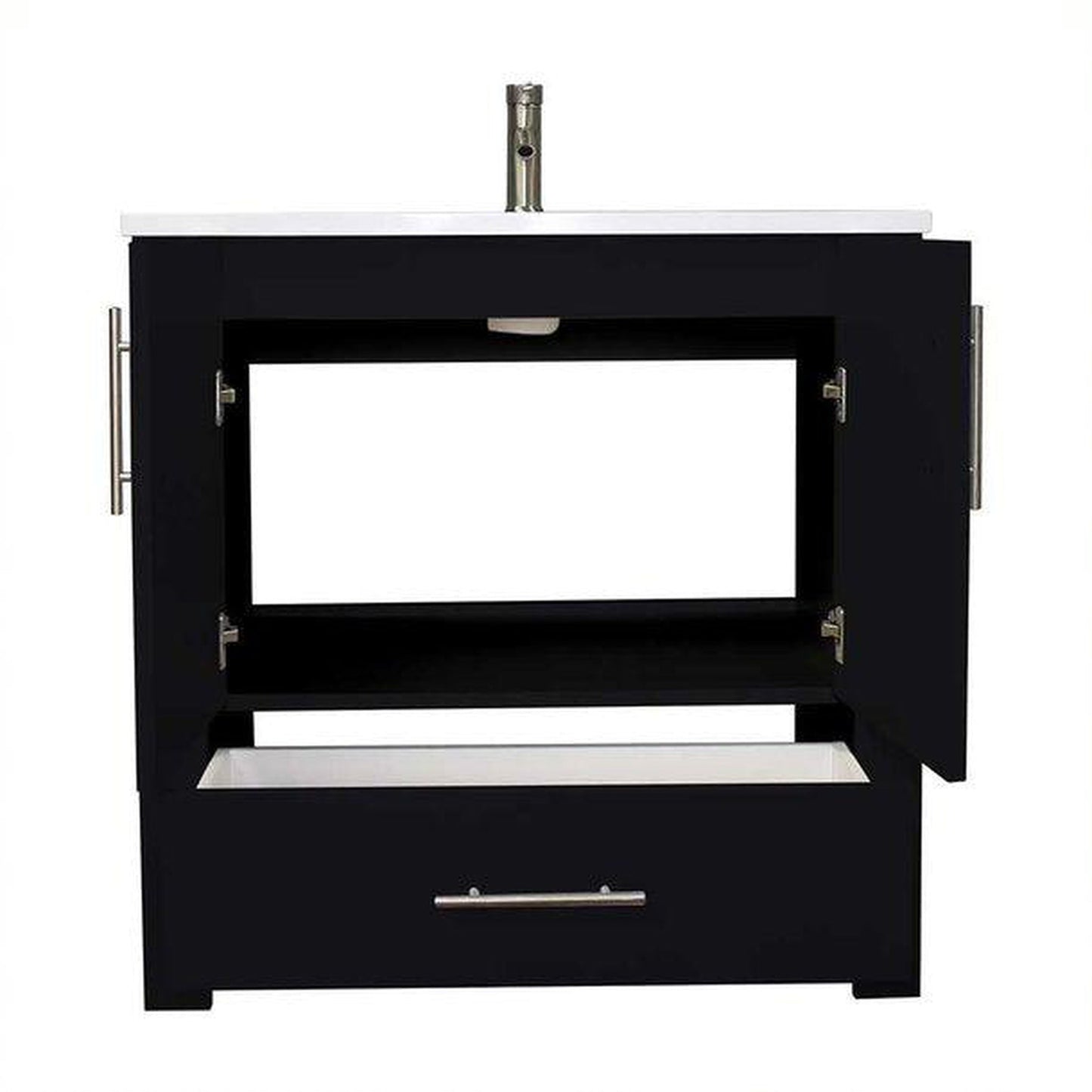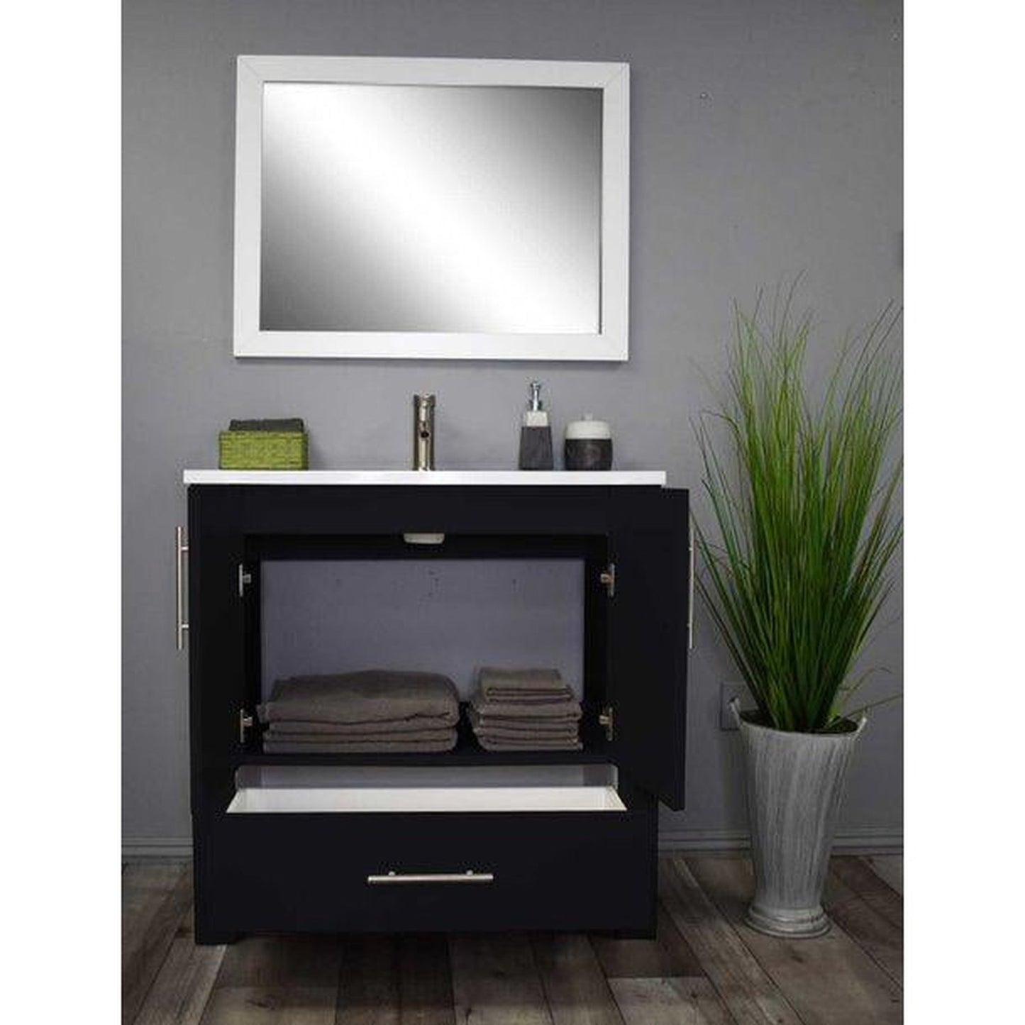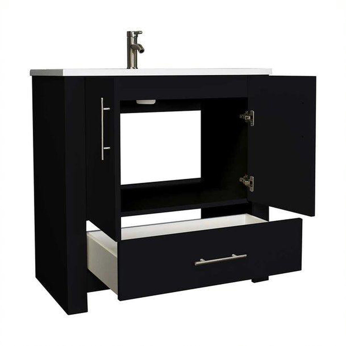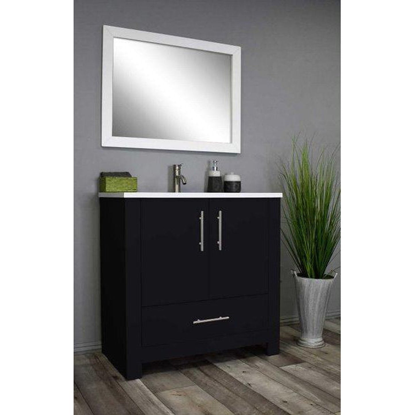 Volpa USA Boston 36" x 20" Black Modern Freestanding Bathroom Vanity With Acrylic Top, Integrated Acrylic Sink And Brushed Nickel Handles